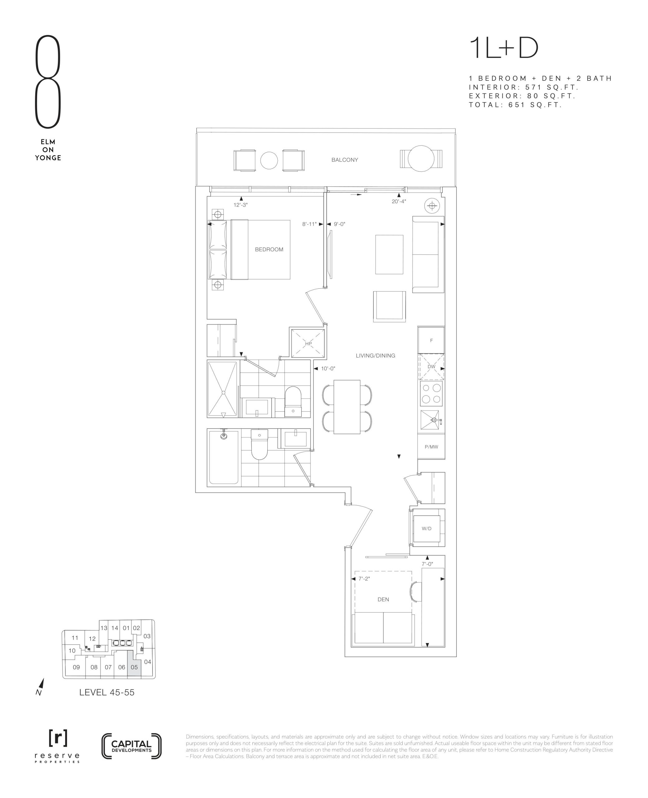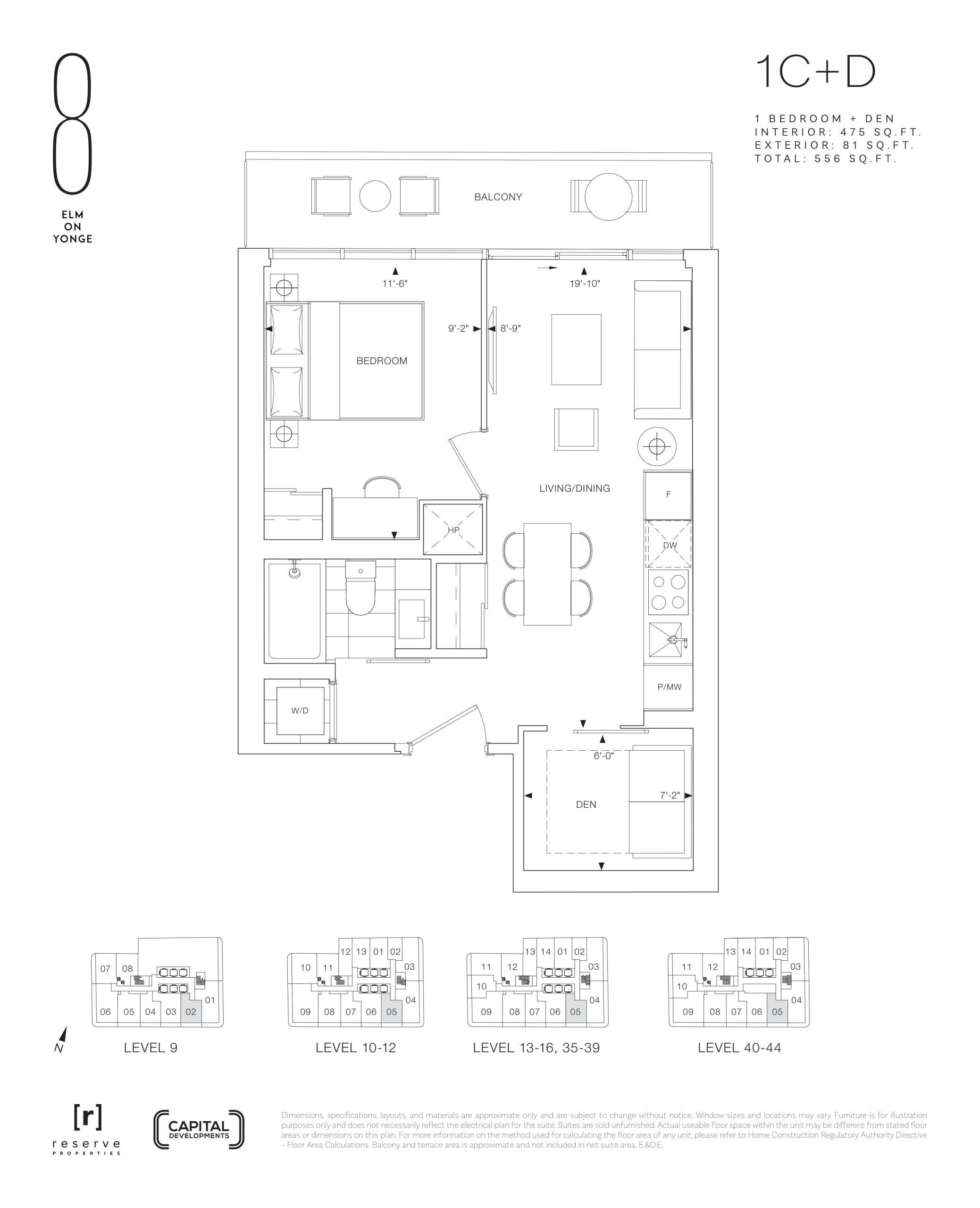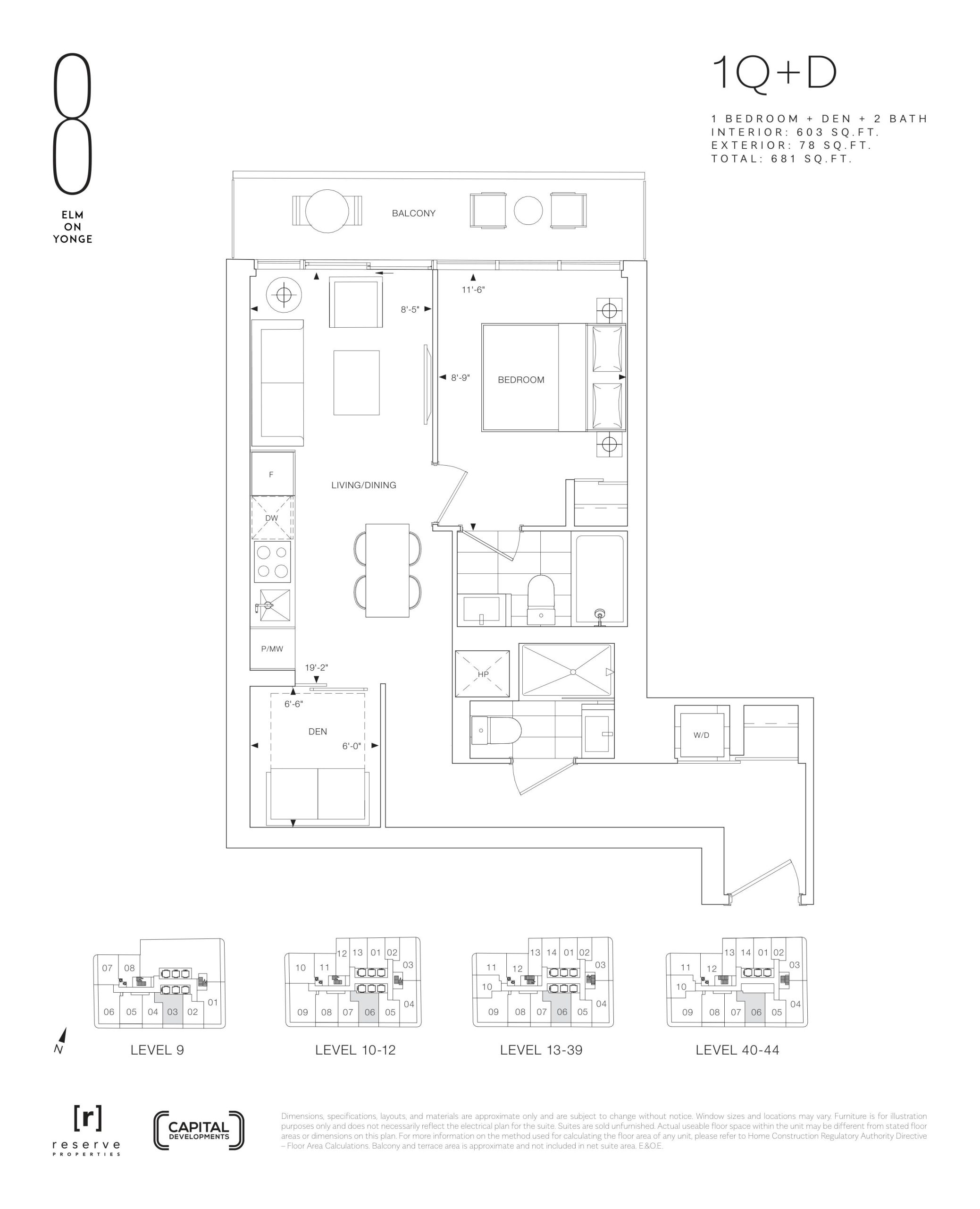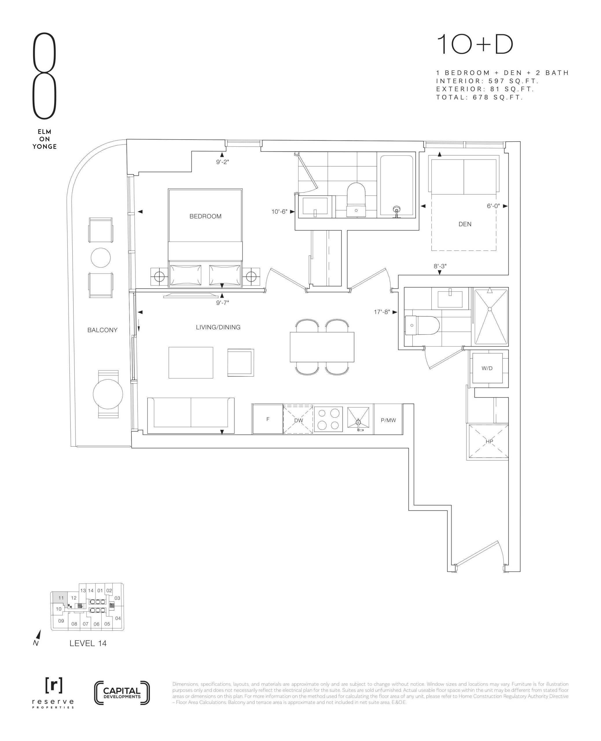 - 1 Bed + Den Change from Launch