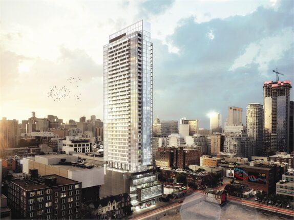 The Bond Condos is a new condominium development by Lifetime Developments that is now complete located at 290 Adelaide Street West, Toronto in the Entertainment District neighbourhood with a 100/100 walk score and a 100/100 transit score. The Bond Condos is designed by CORE Architects and will feature interior design by Tomas Pearce Interior Design Consulting Inc.. Development is scheduled to be completed in 2017. The project is 42 storeys tall (138.7m, 455.0ft) and has a total of 369 suites ranging from 327 sq.ft to 3568 sq.ft. The Bond Condos is the #1579 tallest condominium in Toronto and the #29 tallest condominium in Entertainment District.