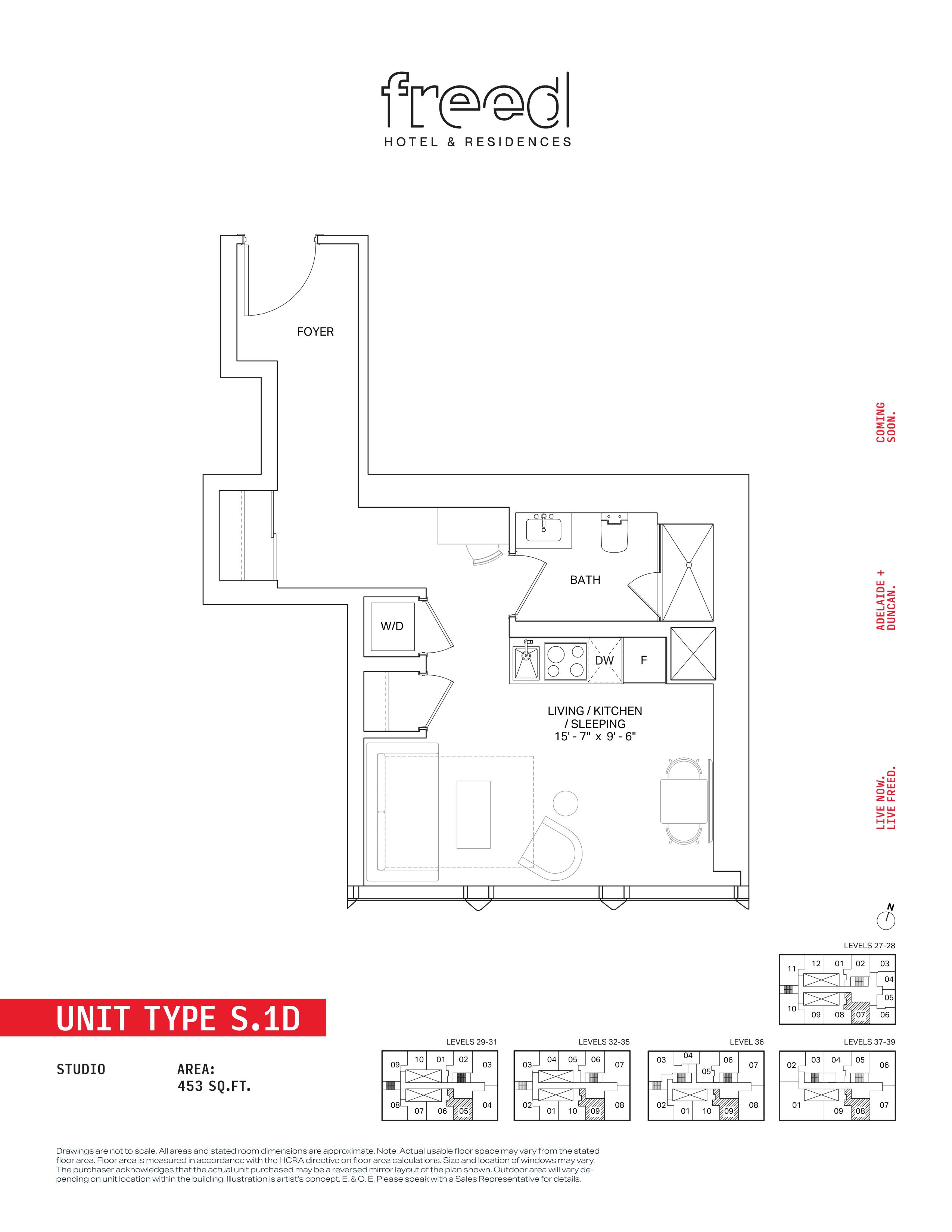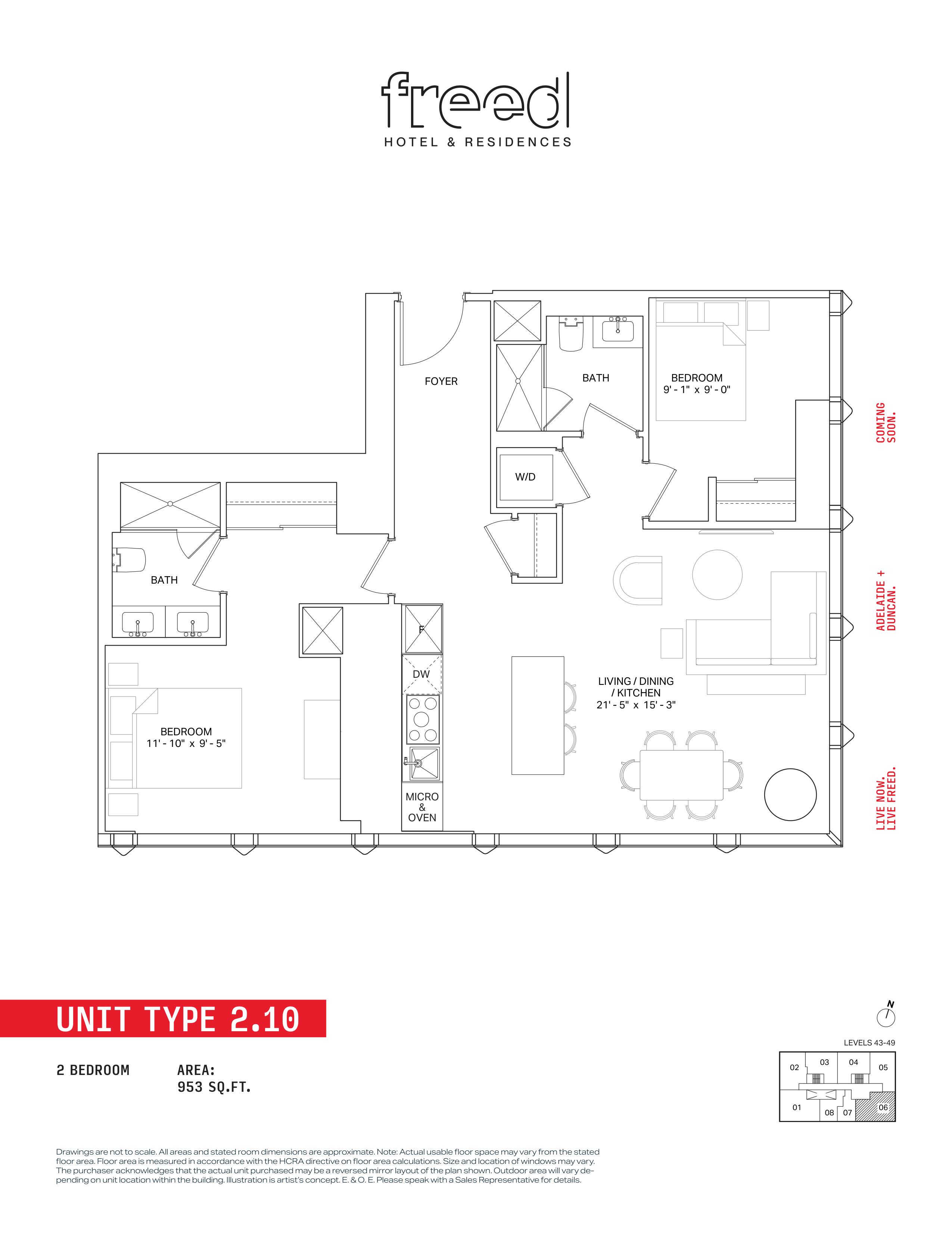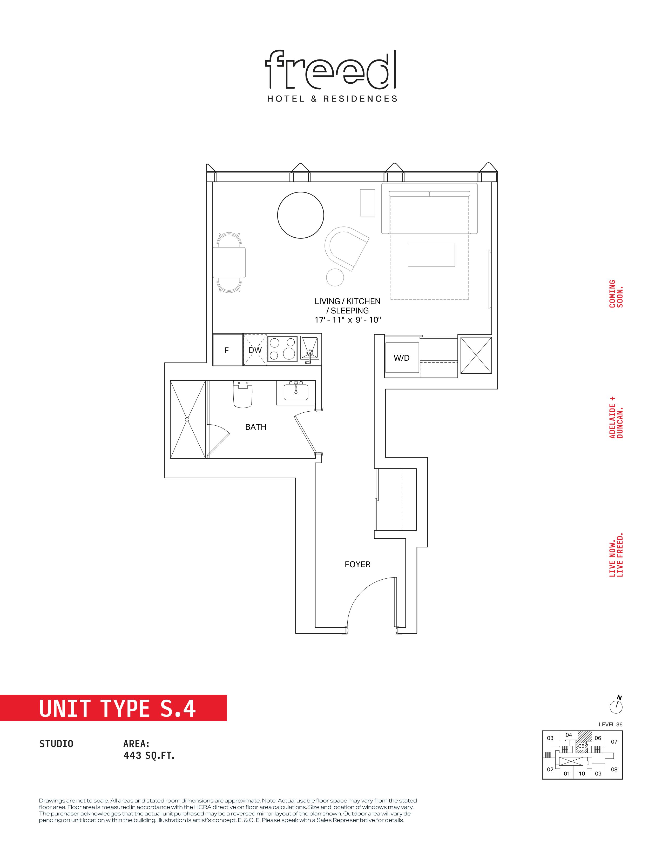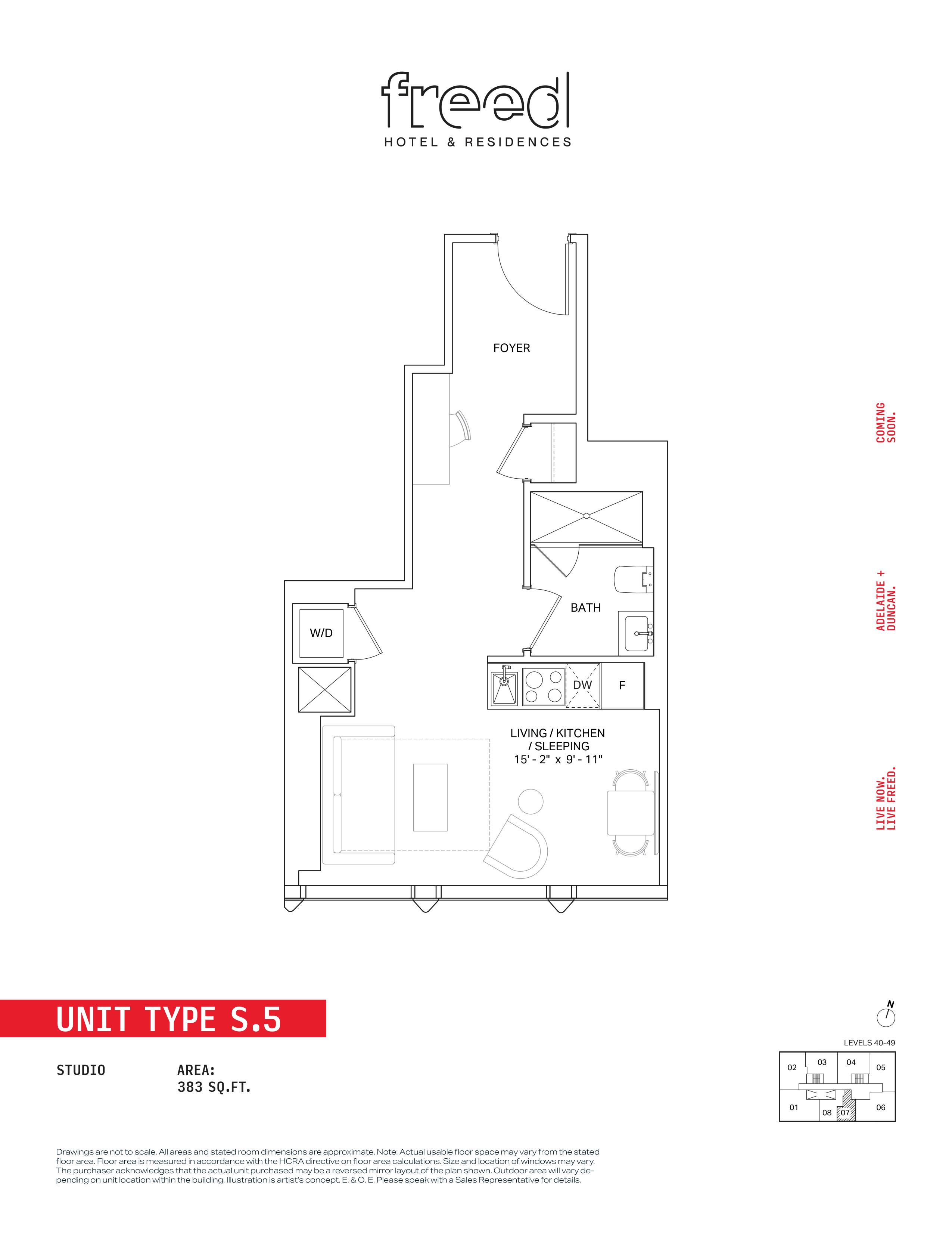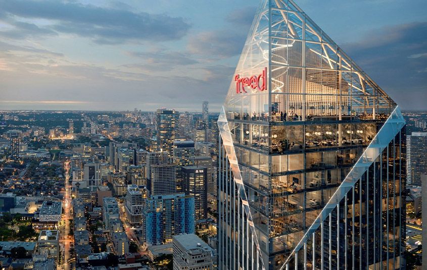 Freed Hotel & Residences is a new condominium development by Freed Developments currently in pre-construction located at 240 Adelaide Street West, Toronto in the Entertainment District neighbourhood with a 99/100 walk score and a 100/100 transit score. Freed Hotel & Residences is designed by Adrian Smith + Gordon Gill Architecture and will feature interior design by DesignAgency. Development is scheduled to be completed in 2030. The project is 63 storeys tall and has a total of 376 suites ranging from 275 sq.ft to 3969 sq.ft. Freed Hotel & Residences is the #1791 tallest condominium in Toronto and the #56 tallest condominium in Entertainment District. Suites are priced from $599,900 to $13,249,900.