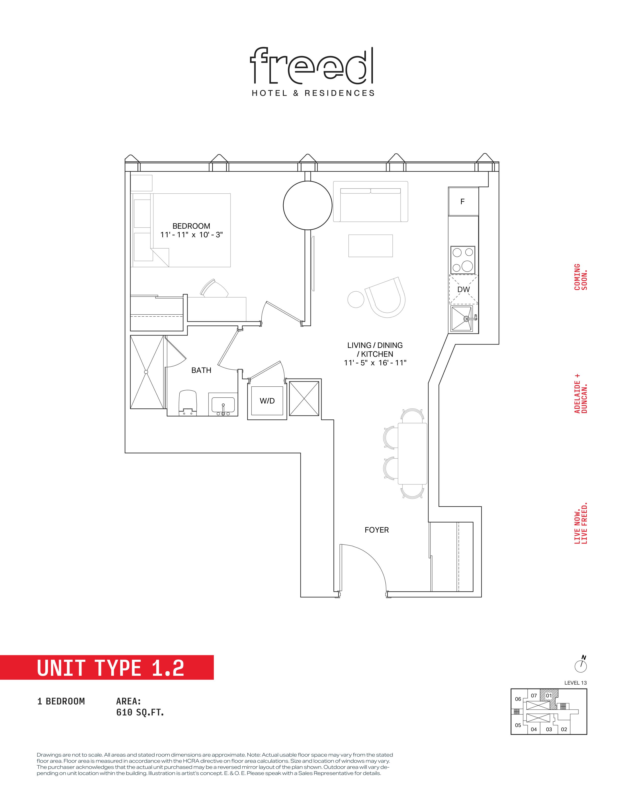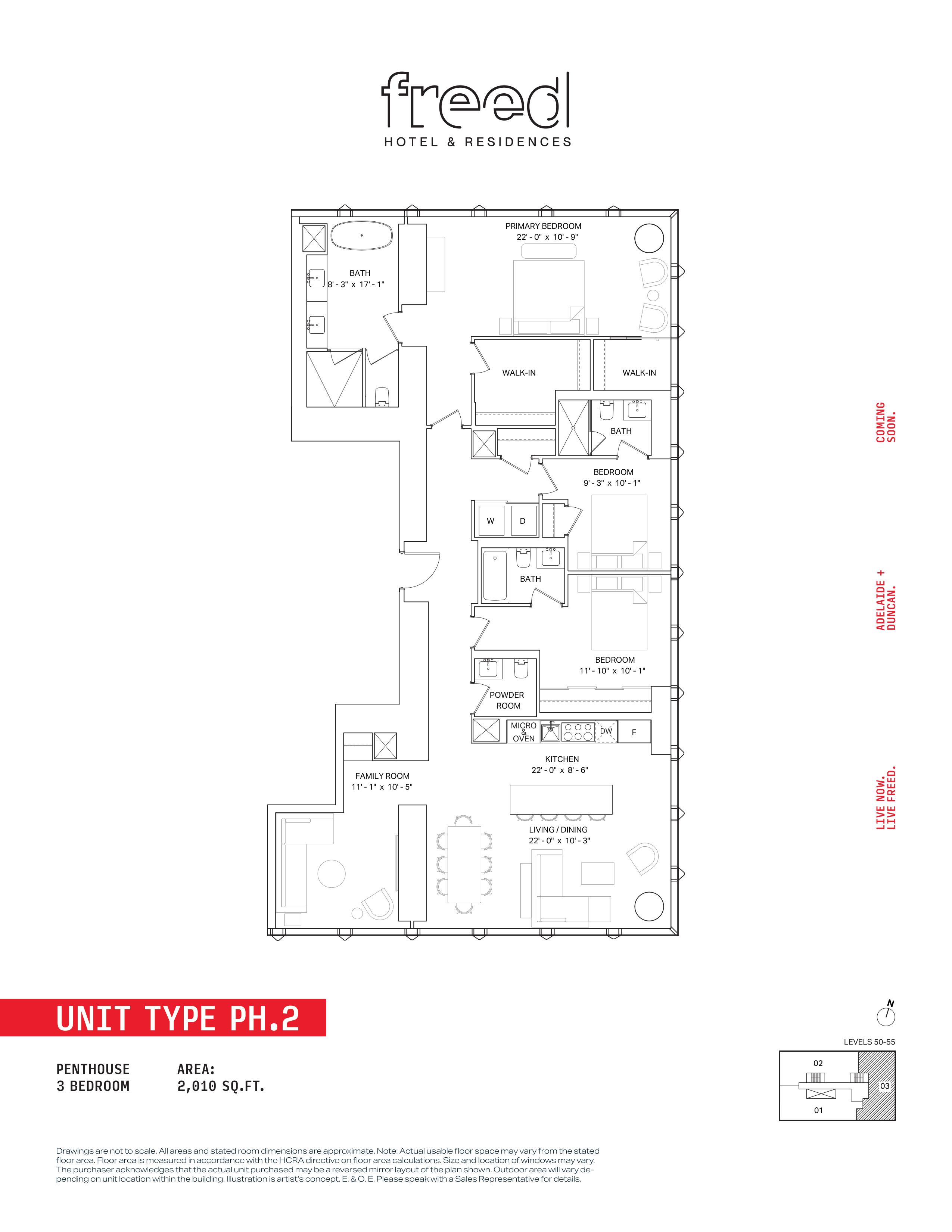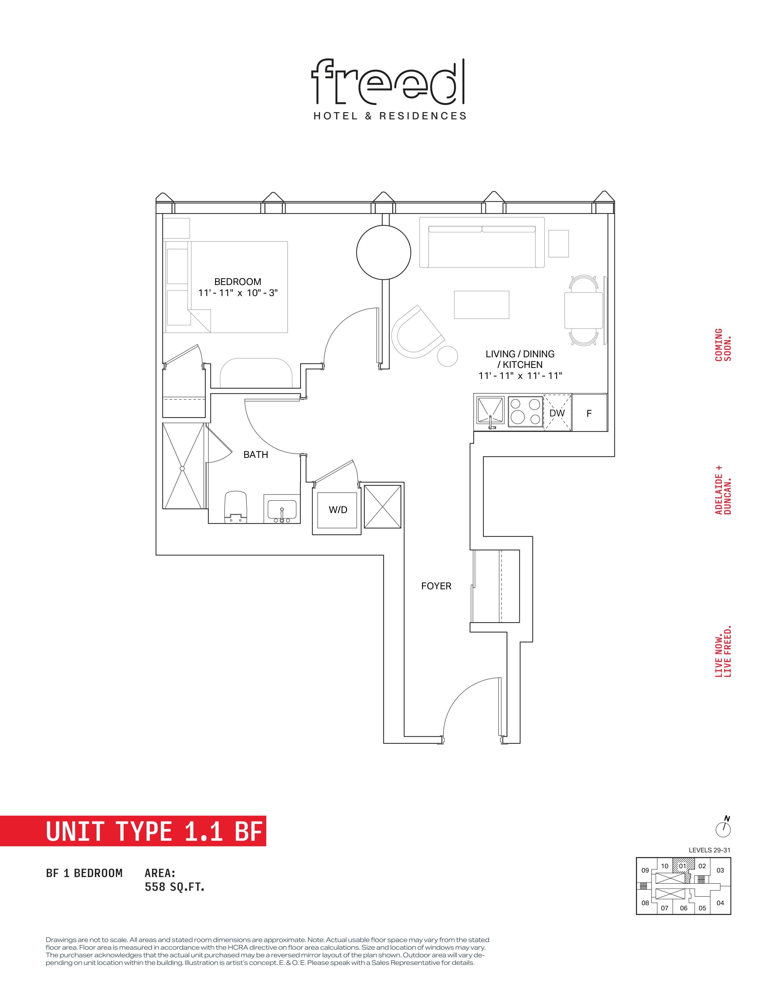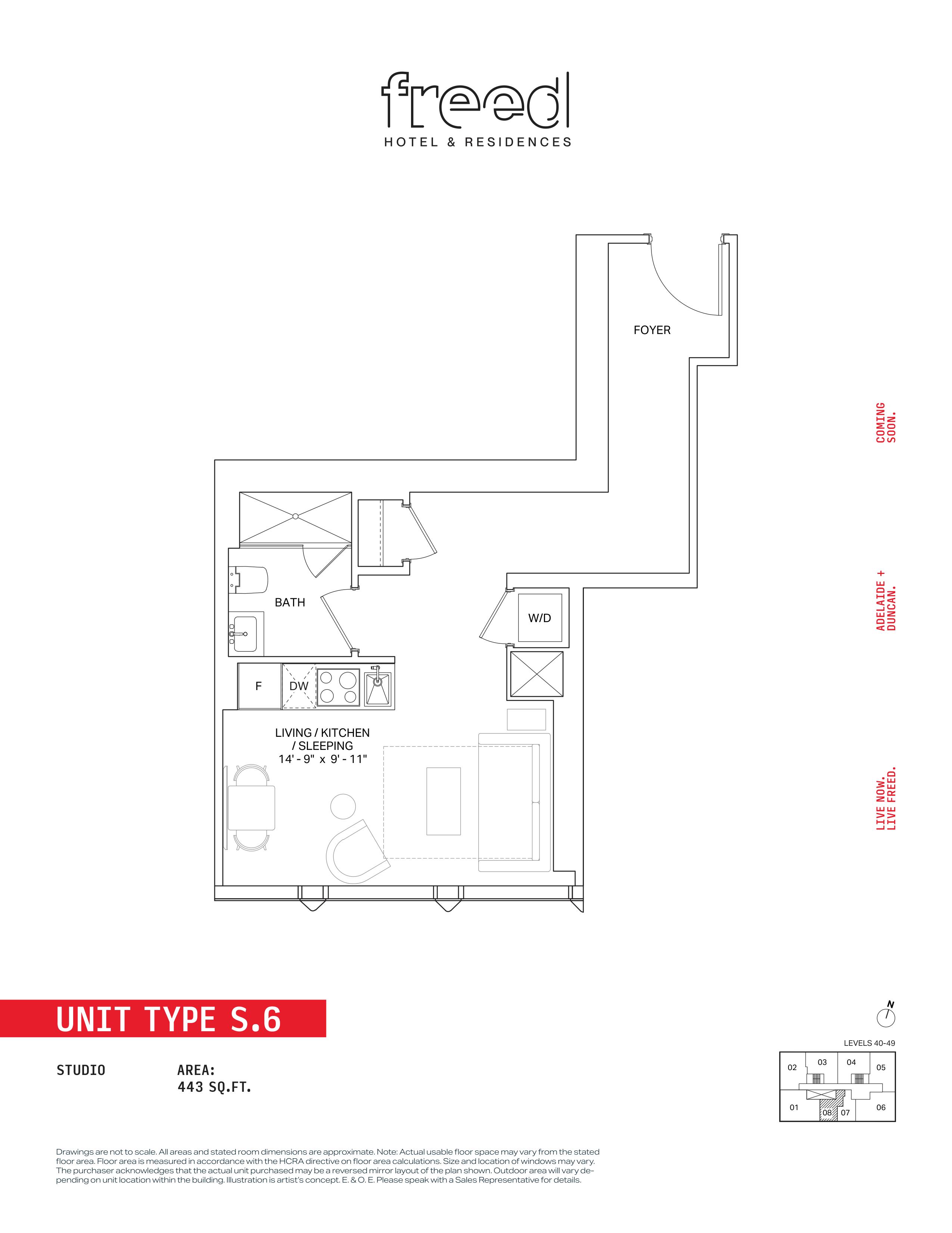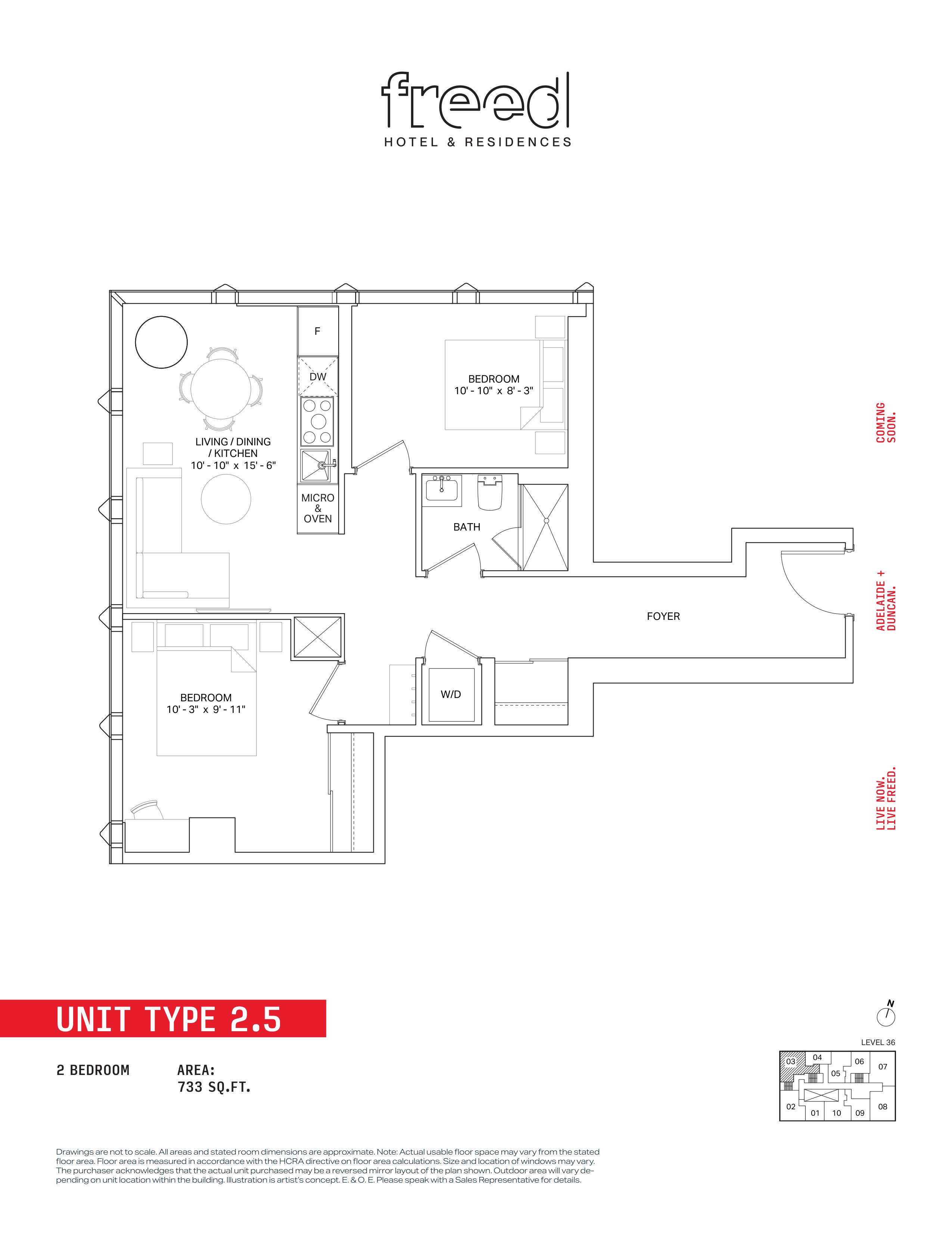 Freed Hotel & Residences is a new condominium development by Freed Developments currently in pre-construction located at 240 Adelaide Street West, Toronto in the Entertainment District neighbourhood with a 99/100 walk score and a 100/100 transit score. Freed Hotel & Residences is designed by Adrian Smith + Gordon Gill Architecture and will feature interior design by DesignAgency. Development is scheduled to be completed in 2030. The project is 63 storeys tall and has a total of 376 suites ranging from 275 sq.ft to 3969 sq.ft. Freed Hotel & Residences is the #1791 tallest condominium in Toronto and the #56 tallest condominium in Entertainment District. Suites are priced from $599,900 to $13,249,900.