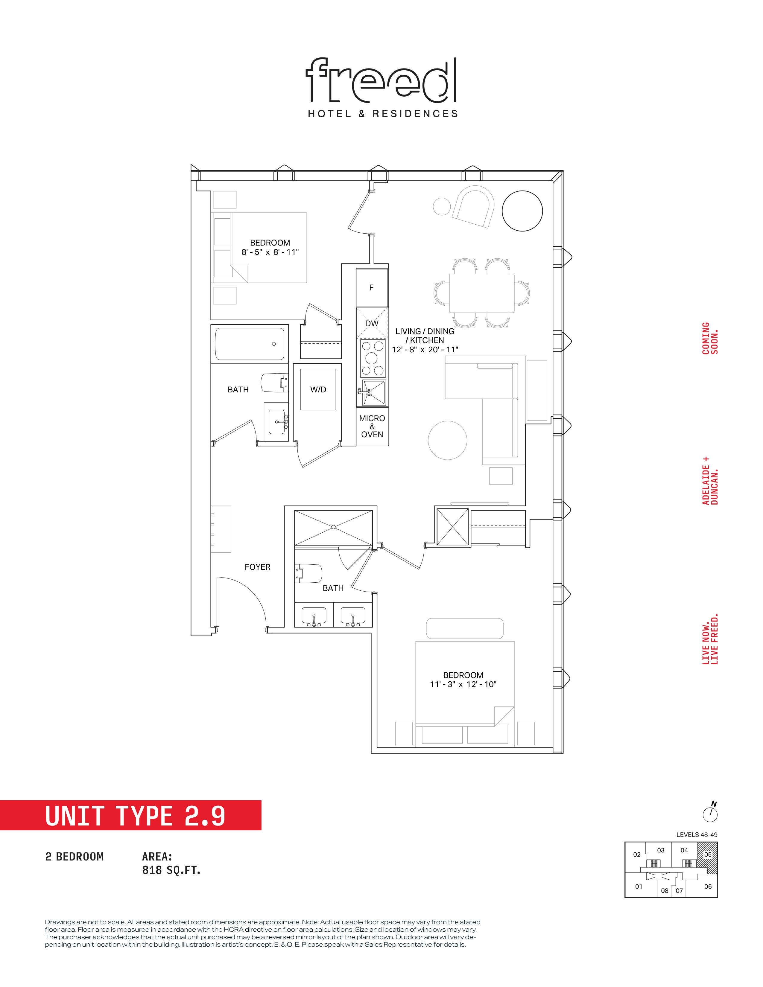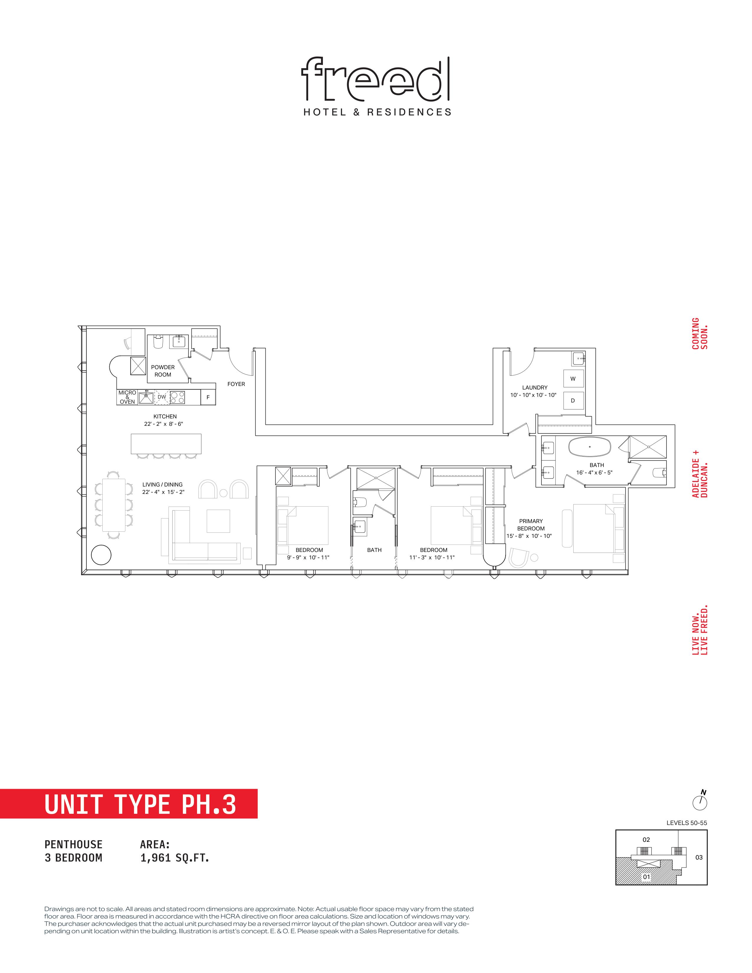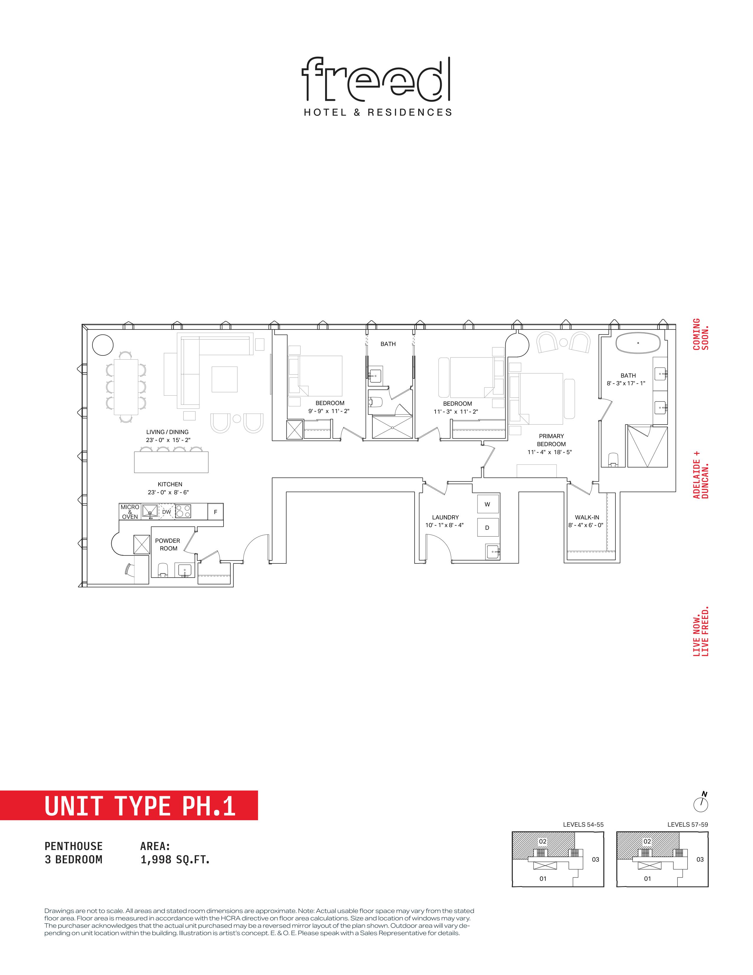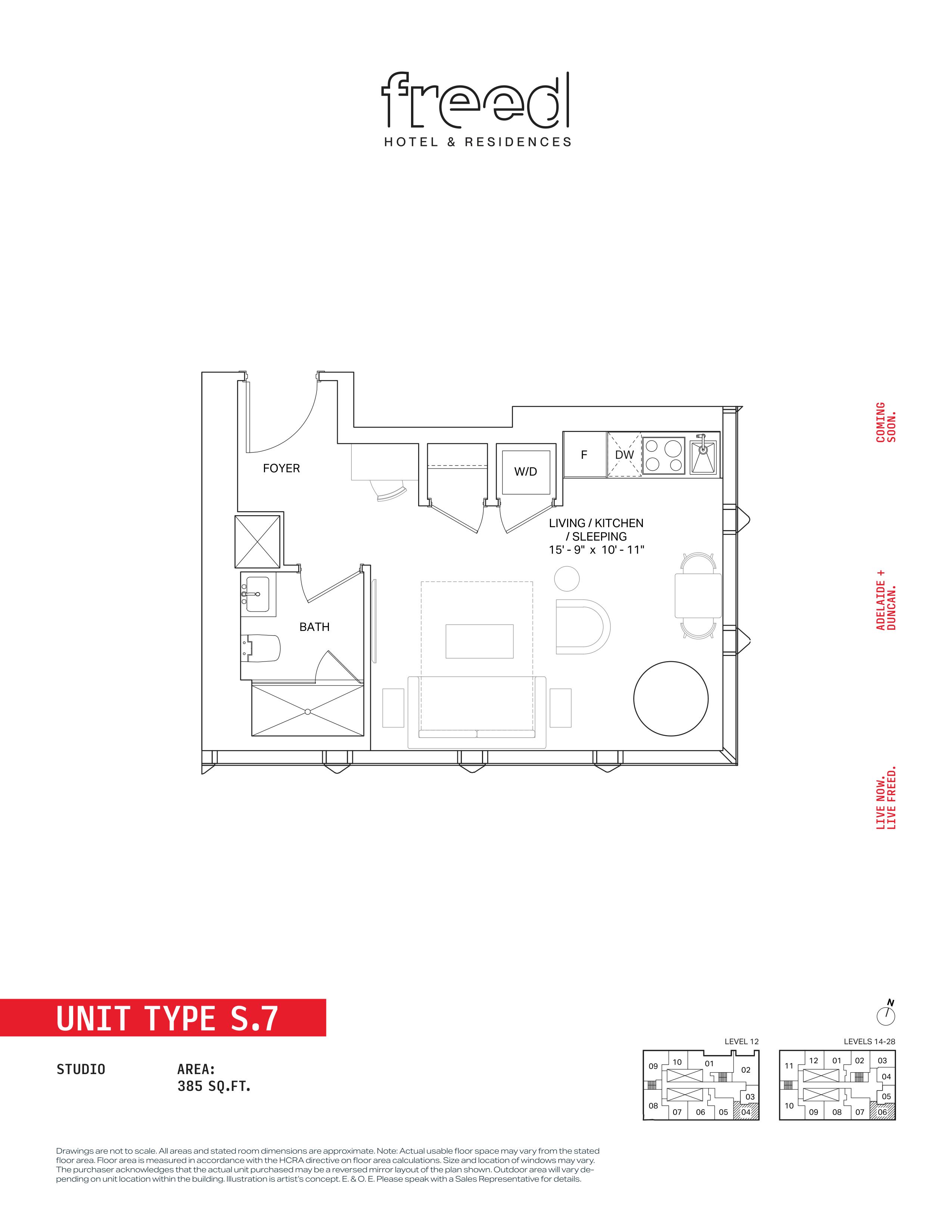 Freed Hotel & Residences is a new condominium development by Freed Developments currently in pre-construction located at 240 Adelaide Street West, Toronto in the Entertainment District neighbourhood with a 99/100 walk score and a 100/100 transit score. Freed Hotel & Residences is designed by Adrian Smith + Gordon Gill Architecture and will feature interior design by DesignAgency. Development is scheduled to be completed in 2030. The project is 63 storeys tall and has a total of 376 suites ranging from 275 sq.ft to 3969 sq.ft. Freed Hotel & Residences is the #1791 tallest condominium in Toronto and the #56 tallest condominium in Entertainment District. Suites are priced from $599,900 to $13,249,900.