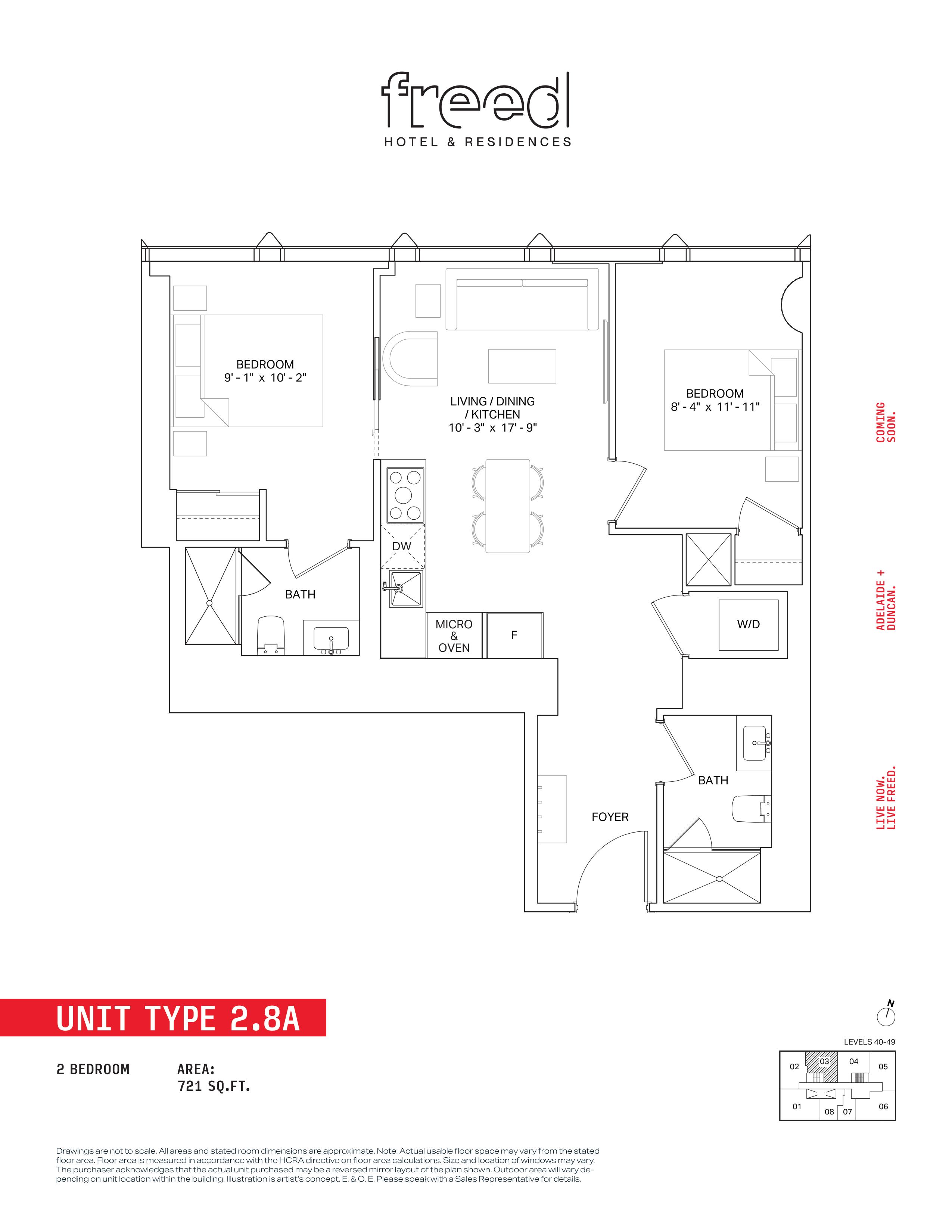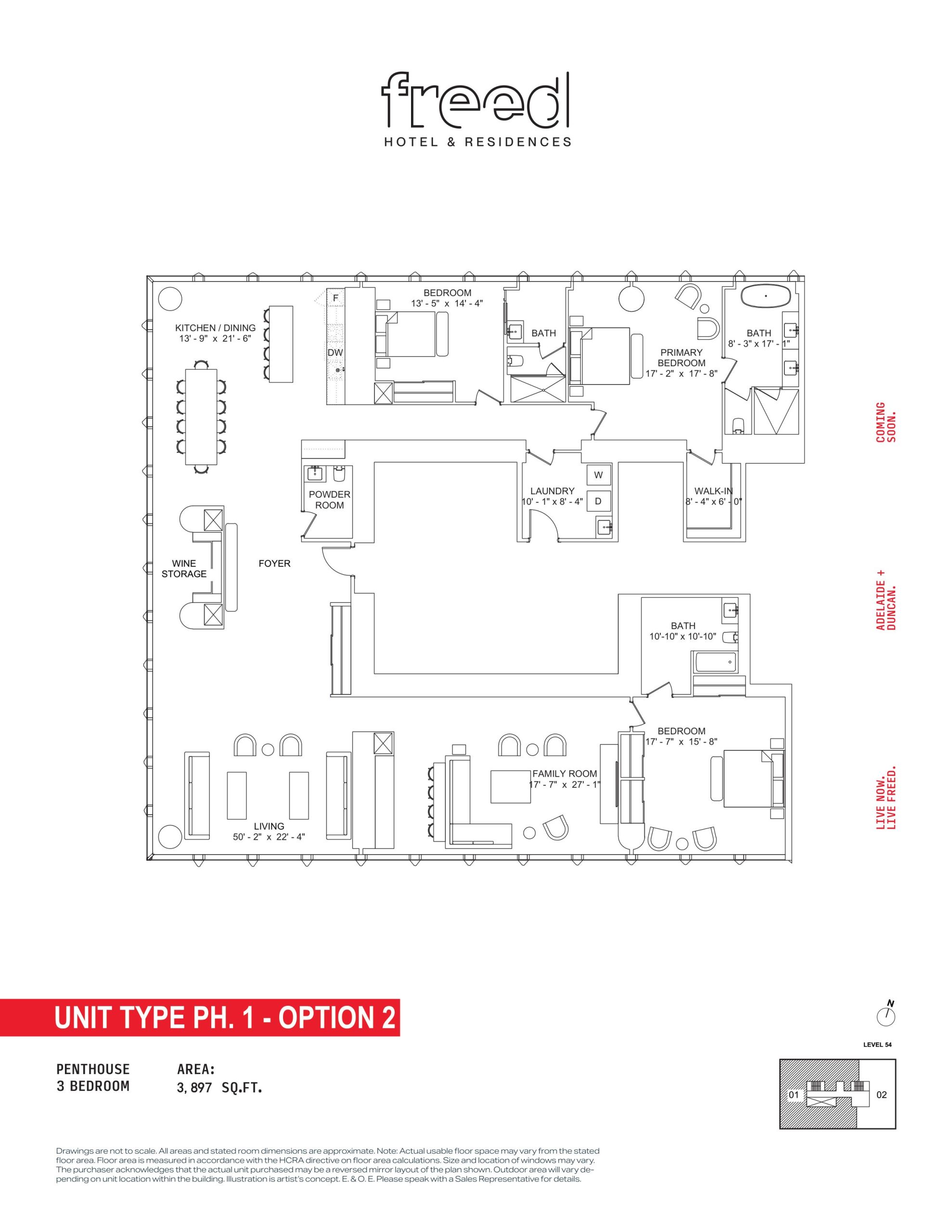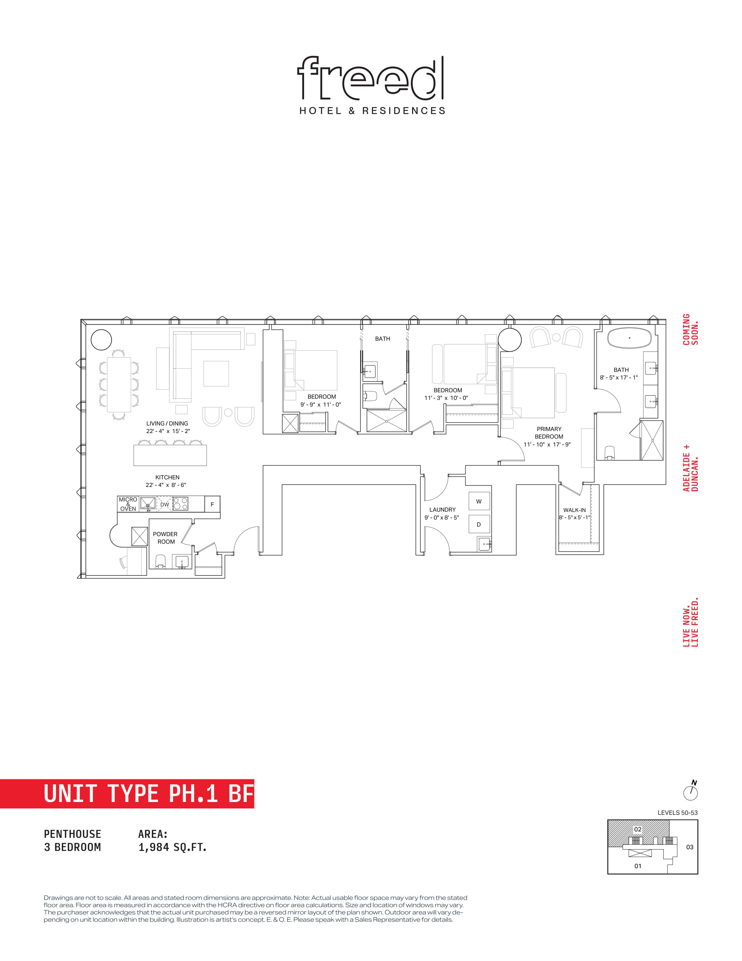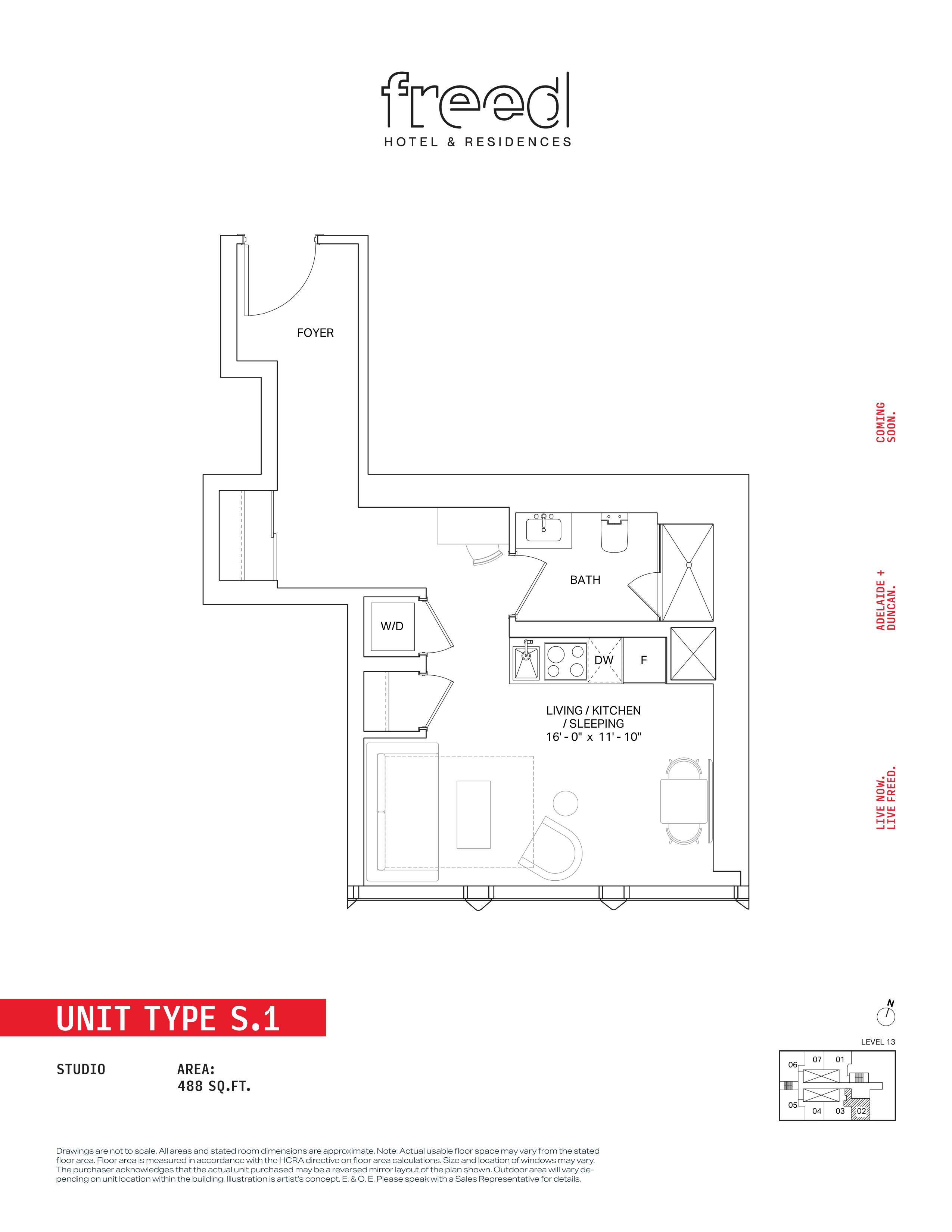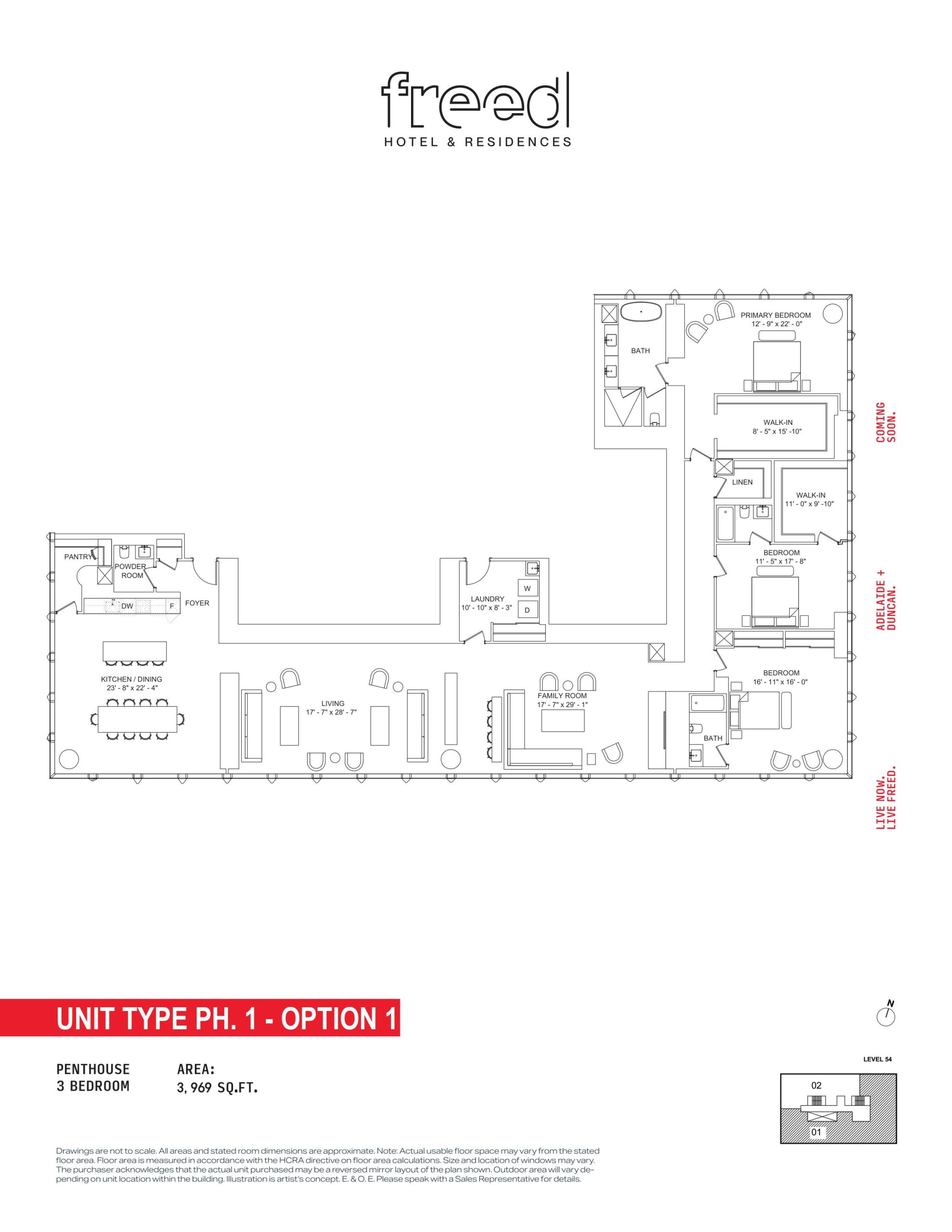 Freed Hotel & Residences is a new condominium development by Freed Developments currently in pre-construction located at 240 Adelaide Street West, Toronto in the Entertainment District neighbourhood with a 99/100 walk score and a 100/100 transit score. Freed Hotel & Residences is designed by Adrian Smith + Gordon Gill Architecture and will feature interior design by DesignAgency. Development is scheduled to be completed in 2030. The project is 63 storeys tall and has a total of 376 suites ranging from 275 sq.ft to 3969 sq.ft. Freed Hotel & Residences is the #1791 tallest condominium in Toronto and the #56 tallest condominium in Entertainment District. Suites are priced from $599,900 to $13,249,900.