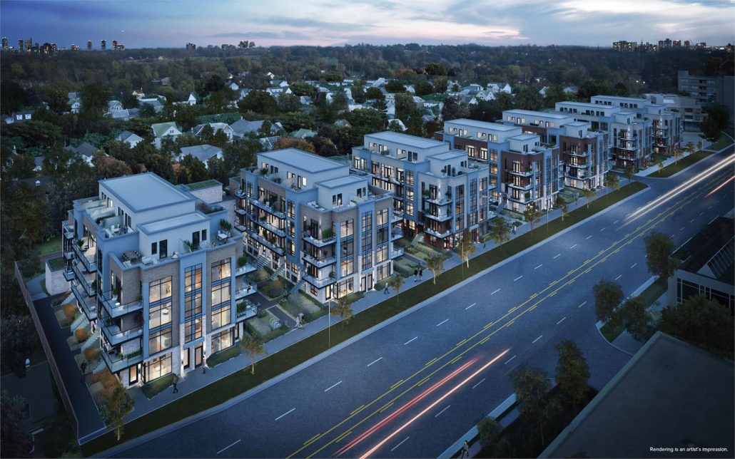 Greenwich Village Towns is a new condominium development by Crown Communities currently under construction located at 847 Sheppard Avenue West, Toronto in the Clanton Park neighbourhood with a 57/100 walk score and a 86/100 transit score. Greenwich Village Towns is designed by SRN Architects and will feature interior design by Pulsinelli. The project has a total of 153 suites ranging from 450 sq.ft to 2150 sq.ft.