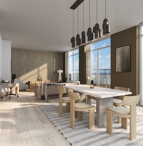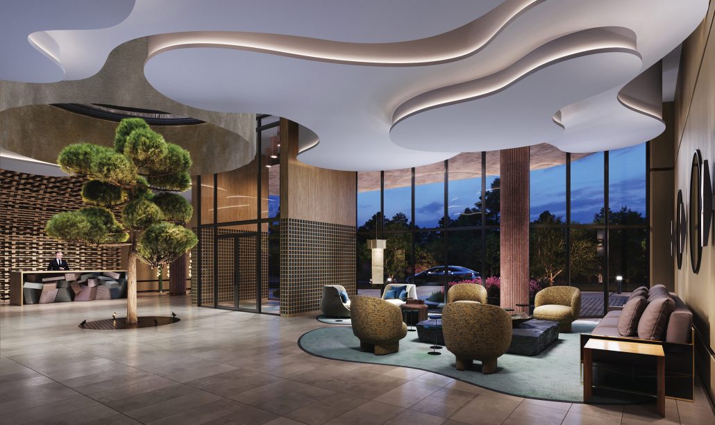 Amenities and Design: The building includes a range of amenities designed to enhance the living experience. Interior spaces are inspired by Japanese architecture and Scandinavian design, focusing on natural materials and finishes.