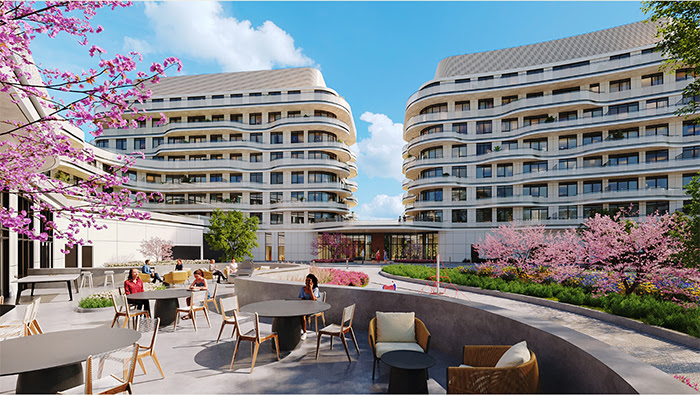 Unique Architecture: The project is notable for its distinct architecture, with undulating and curving balconies inspired by natural forms. The design, by CORE Architects, integrates seamlessly with the surrounding parkland.