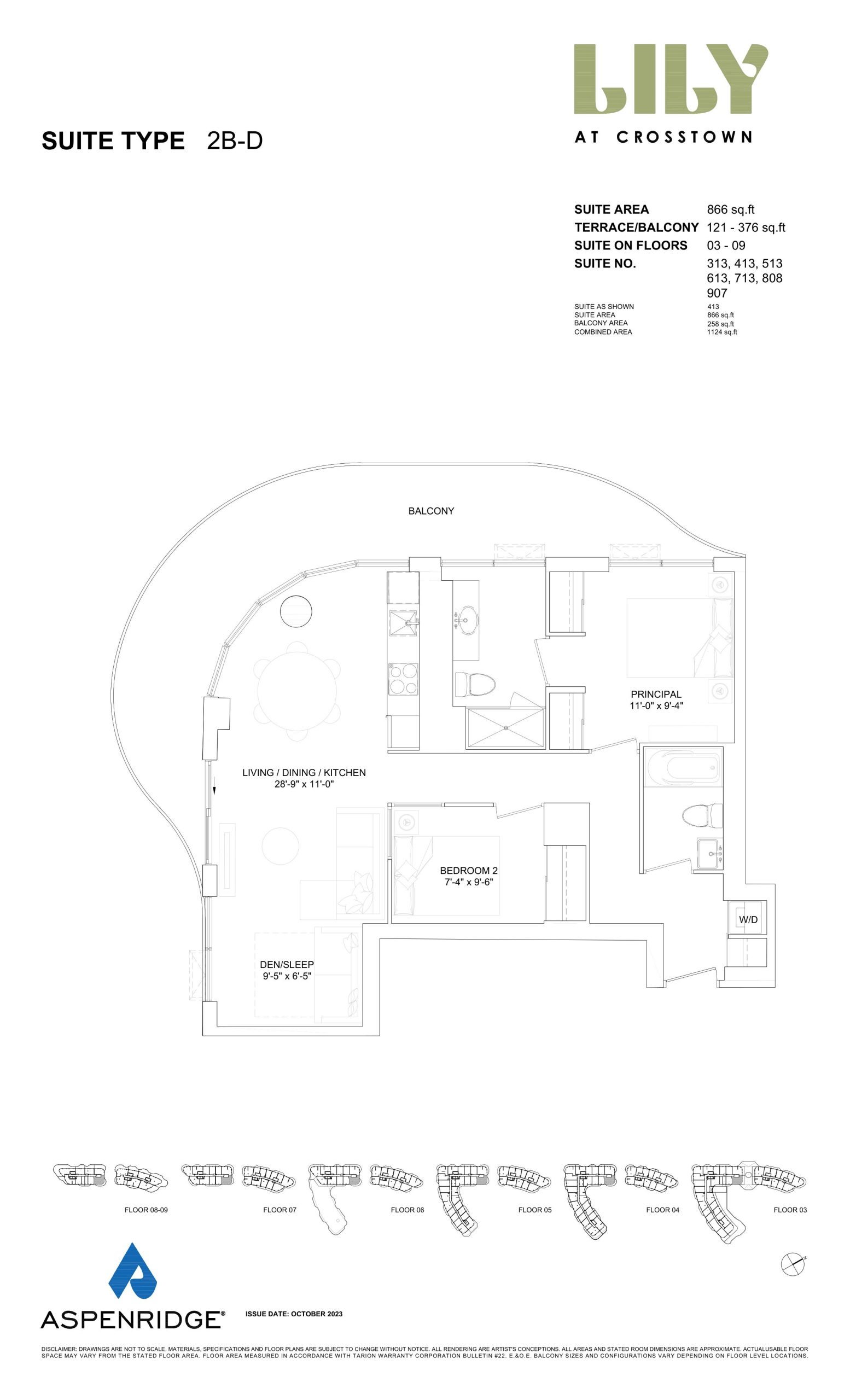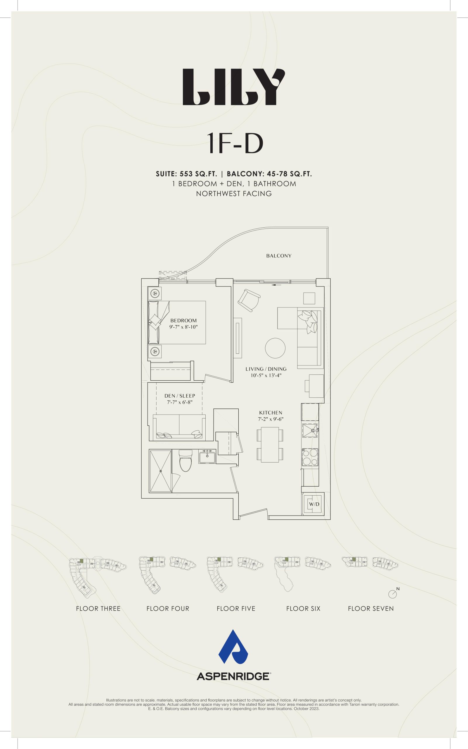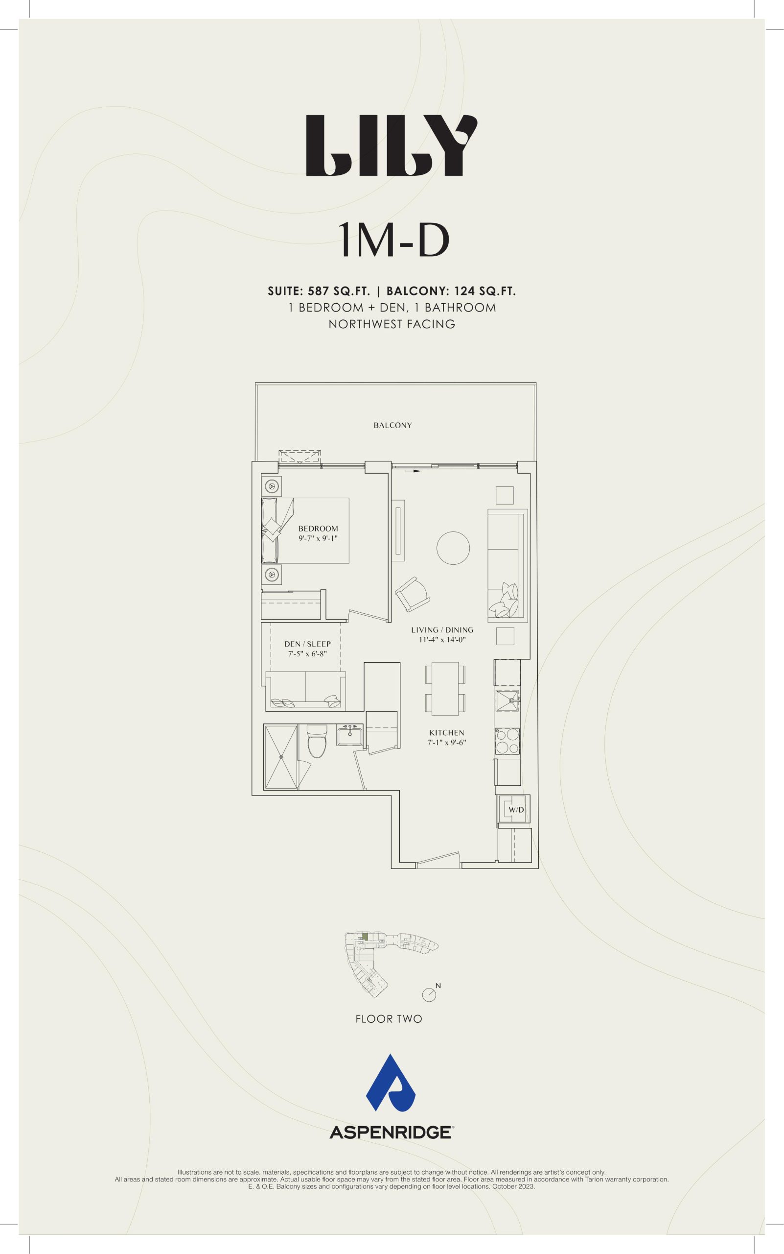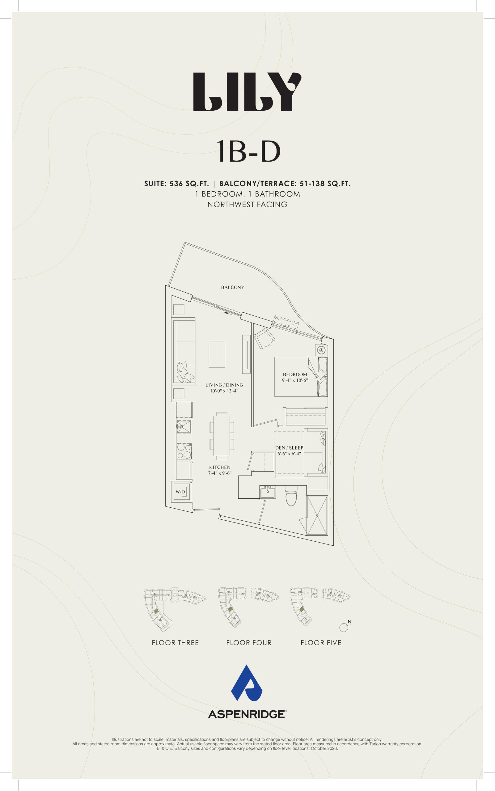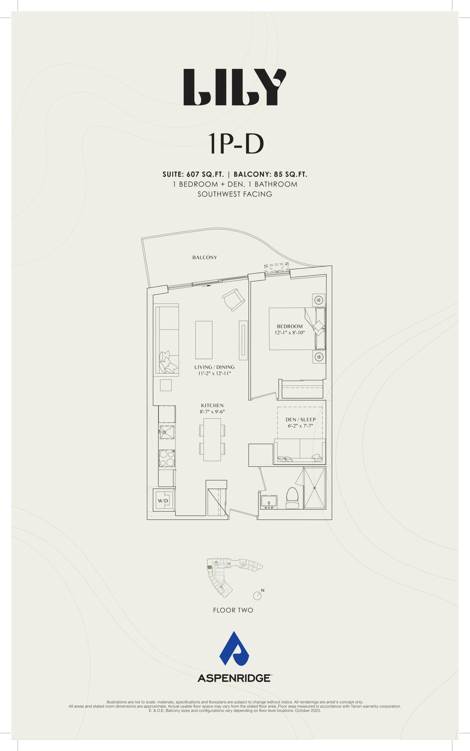 - 1 Bed + Den Change from Launch