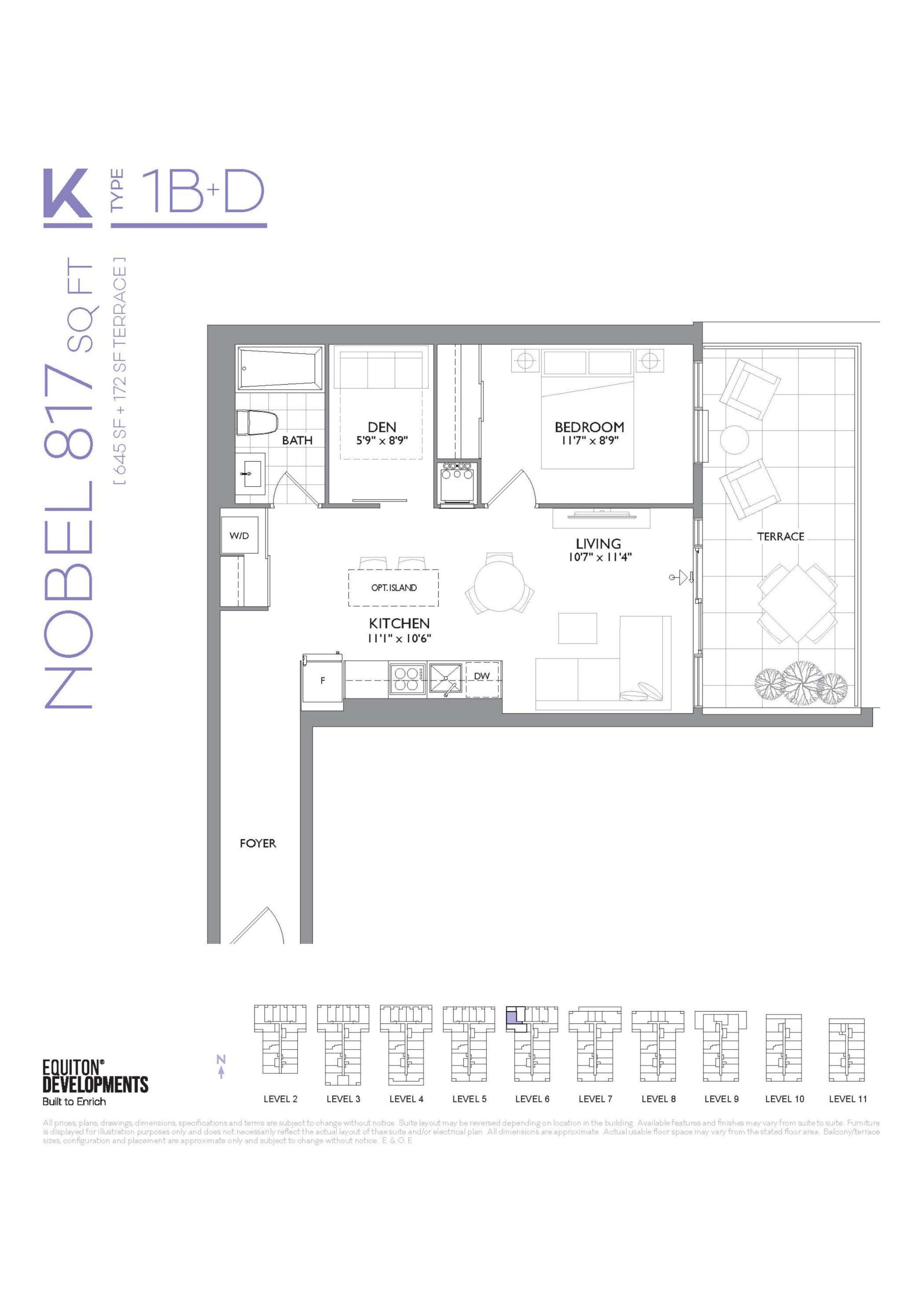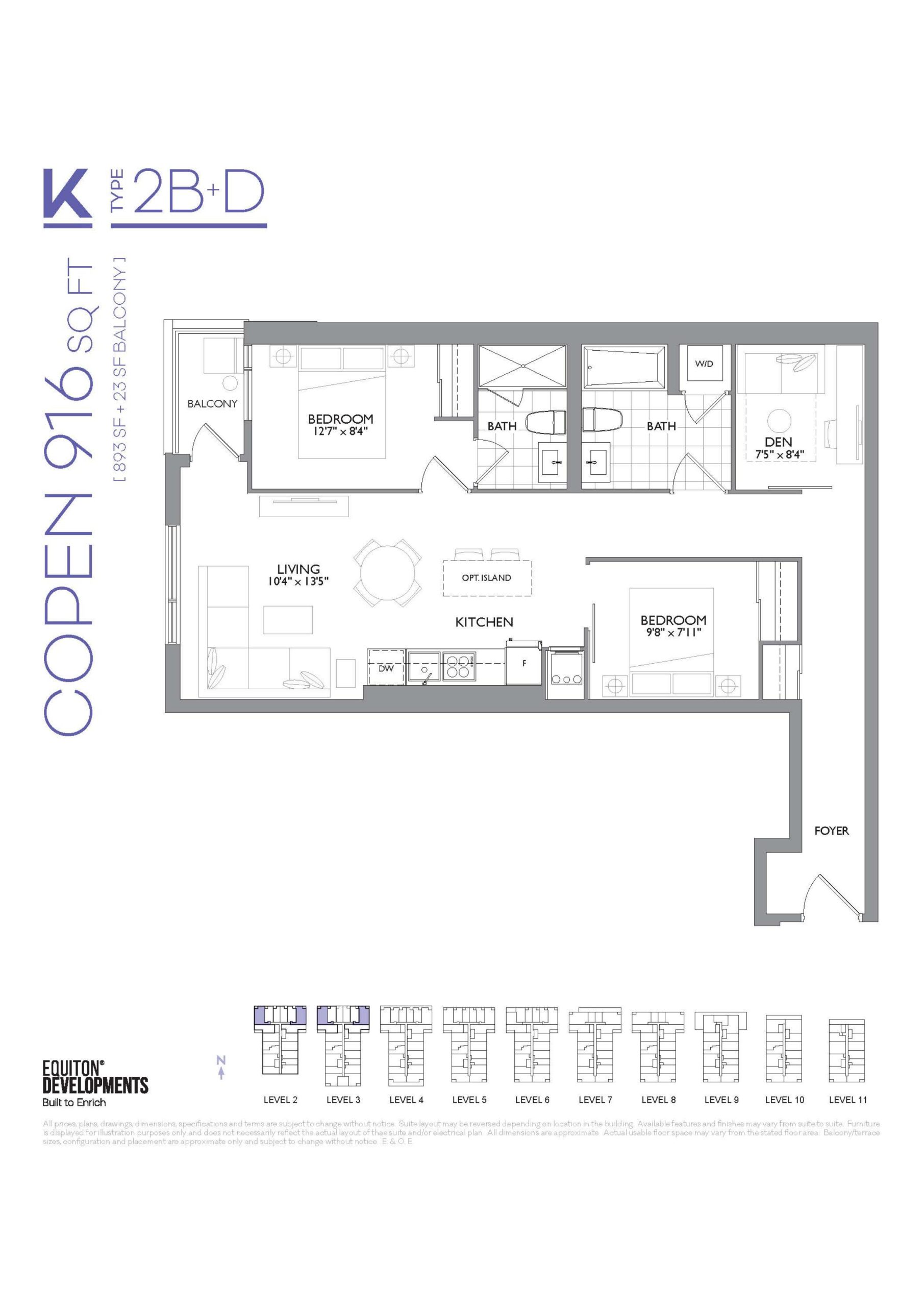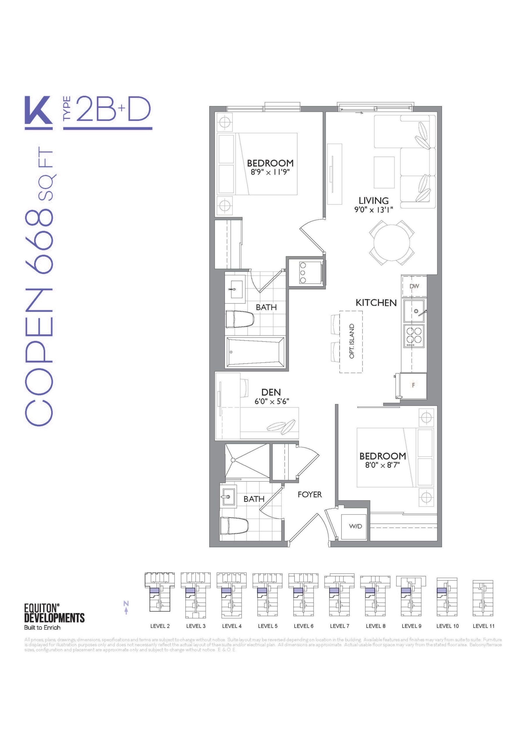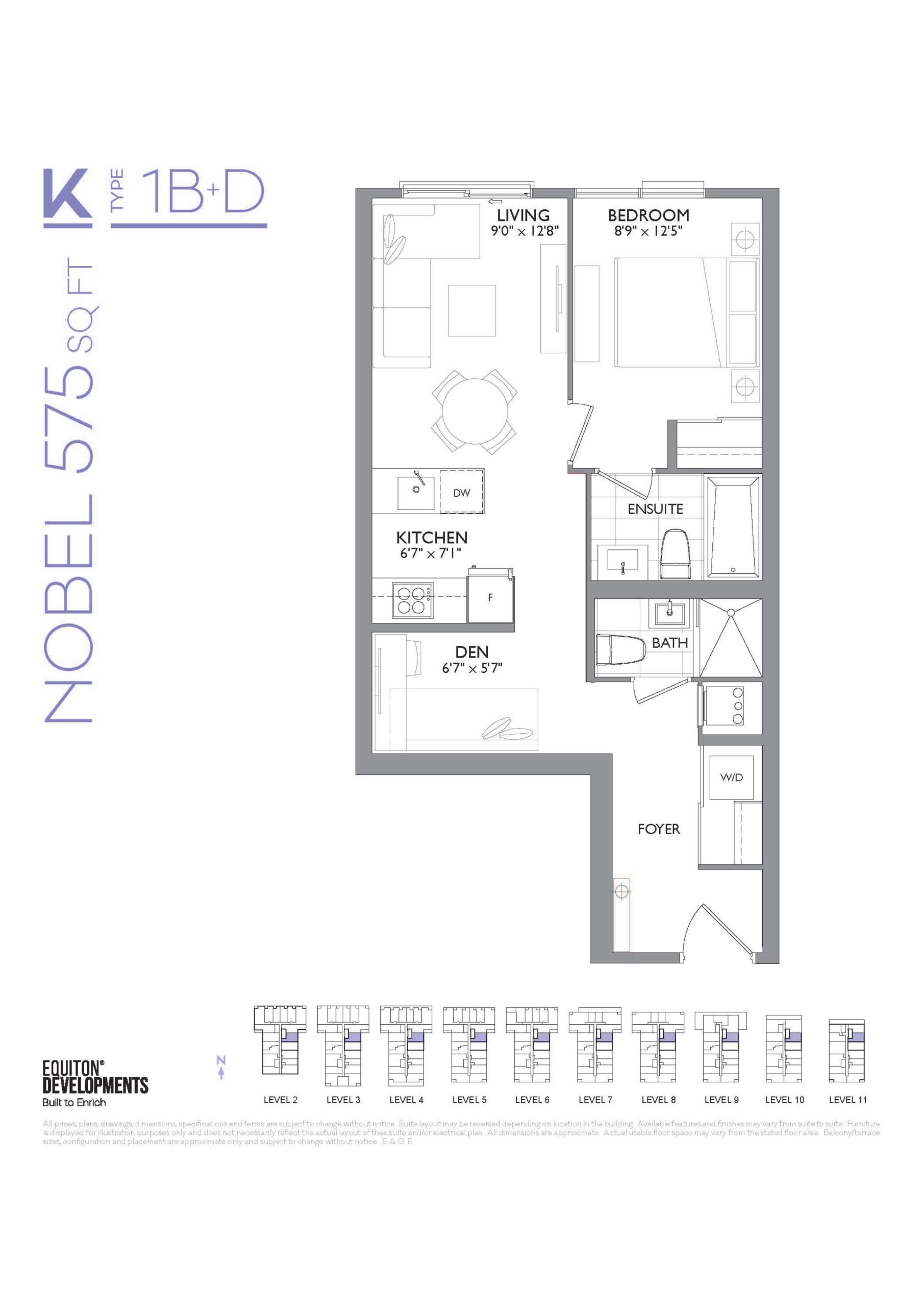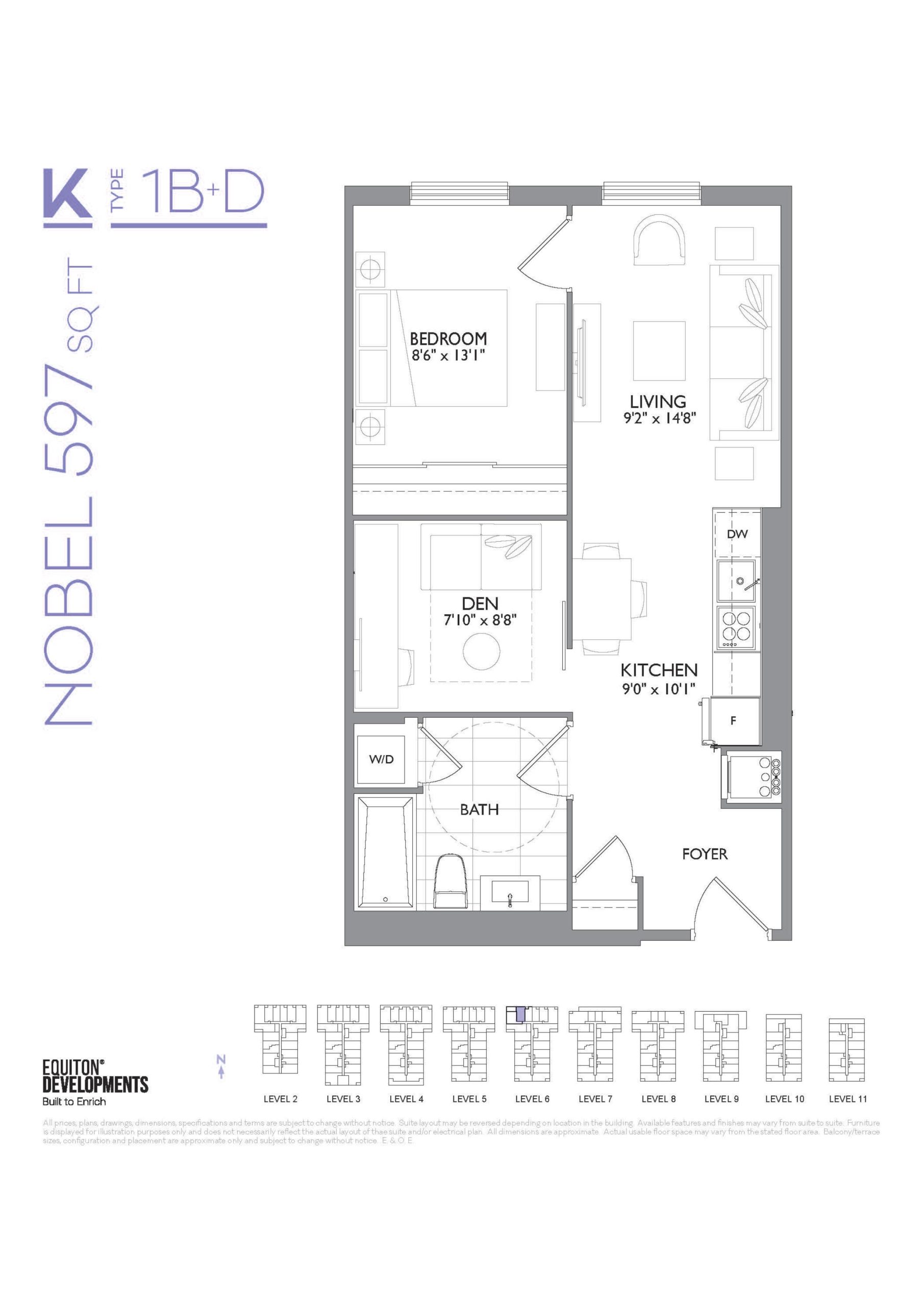 - 1 Bed + Den Change from Launch
