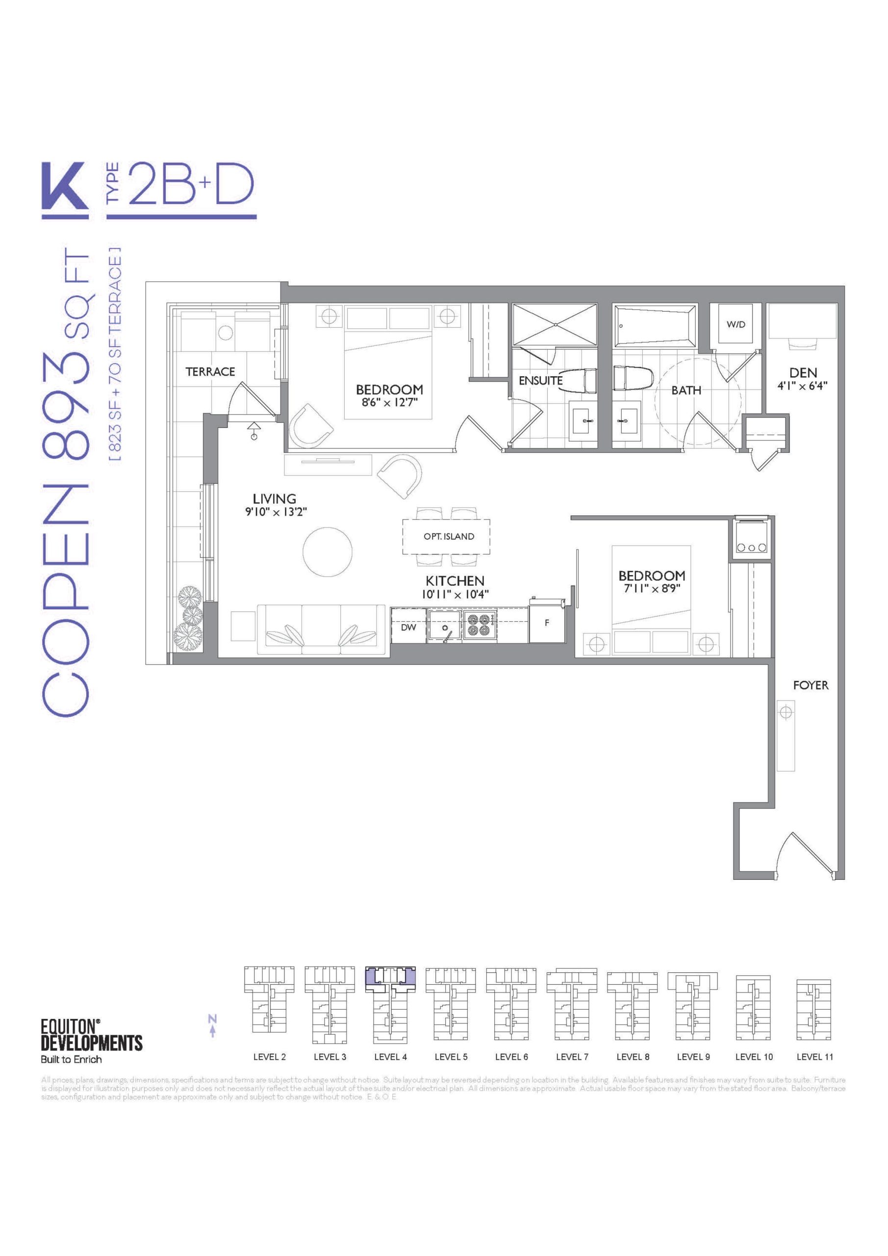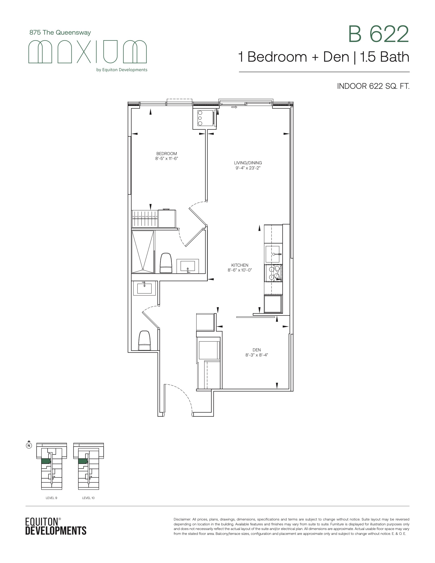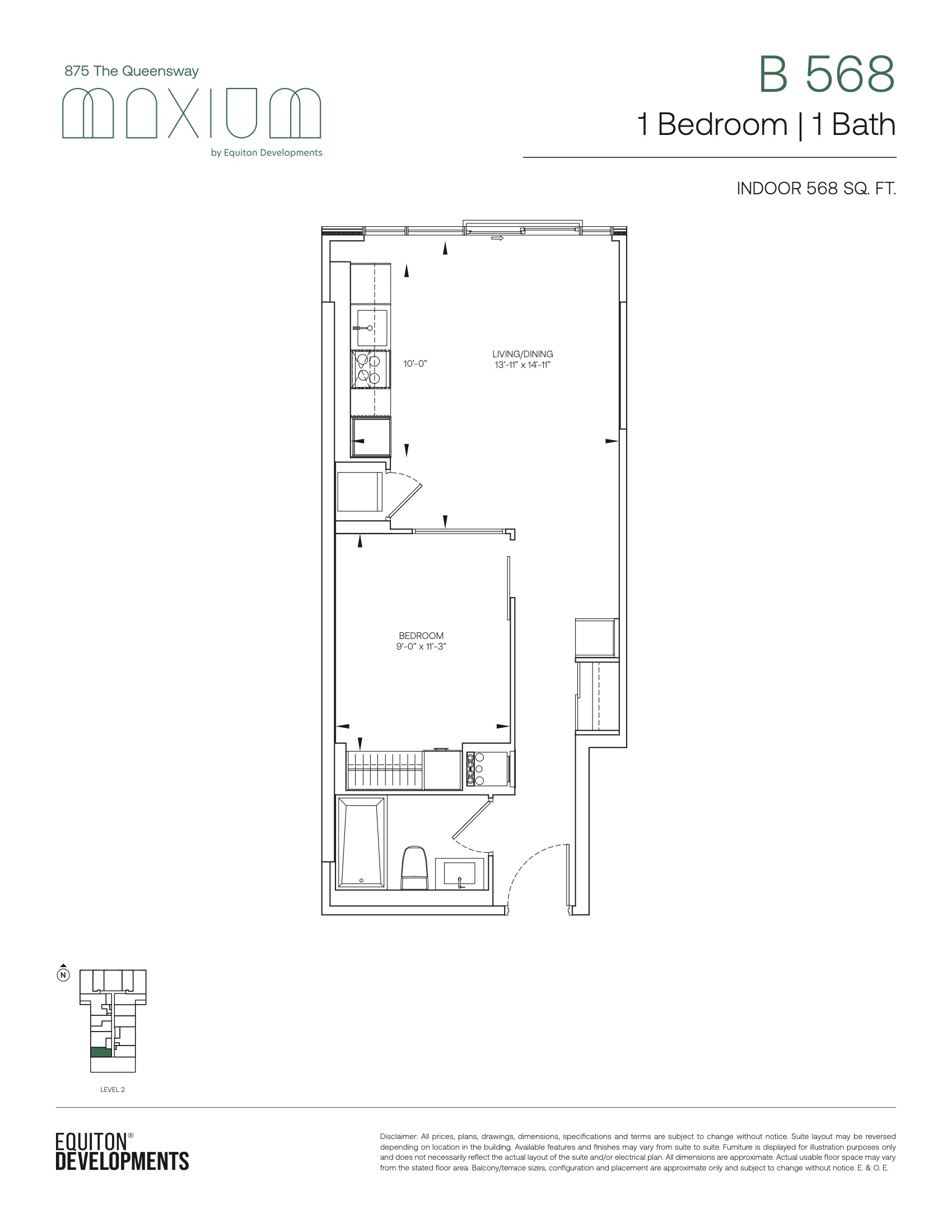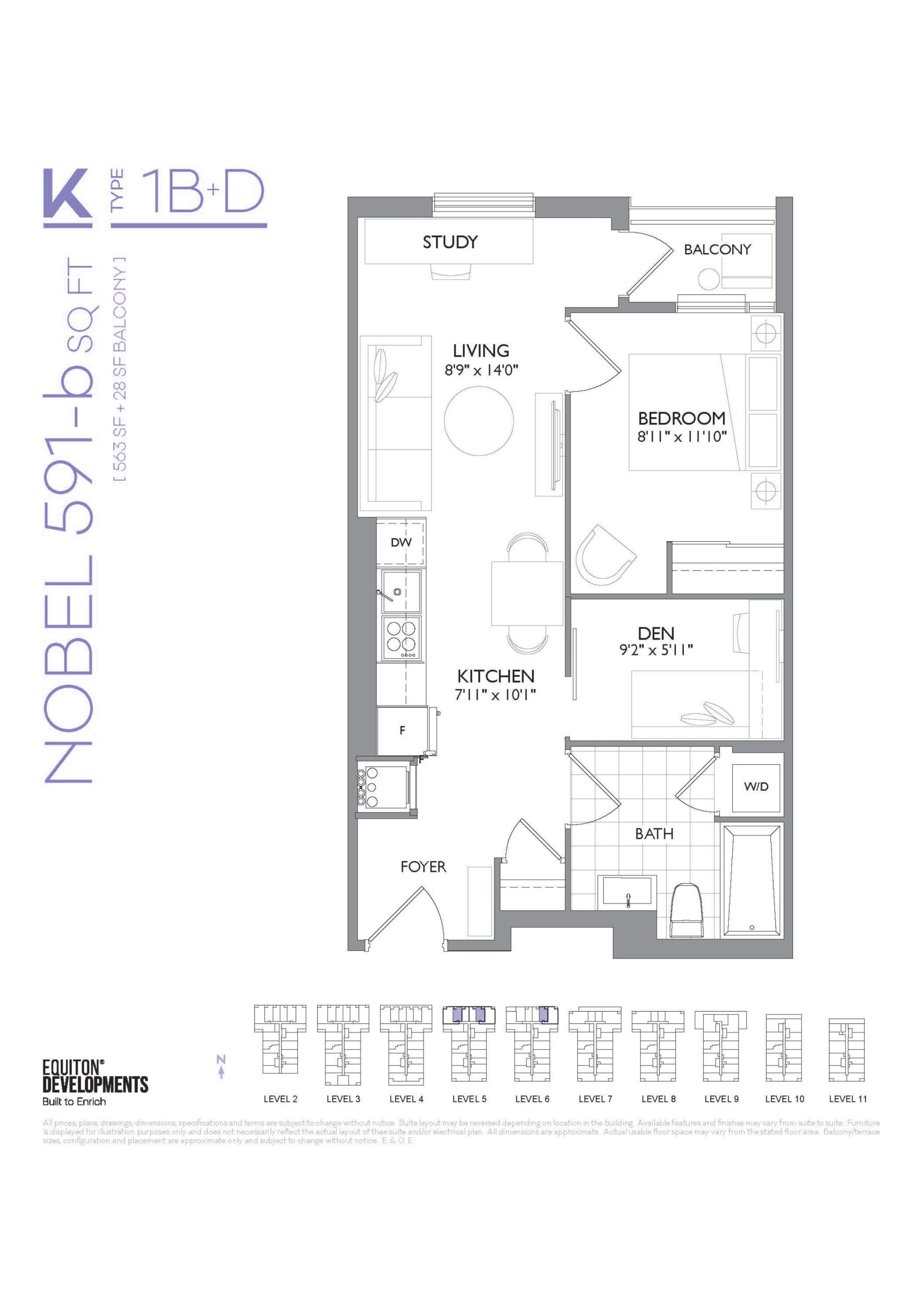 - 1 Bed + Den Change from Launch