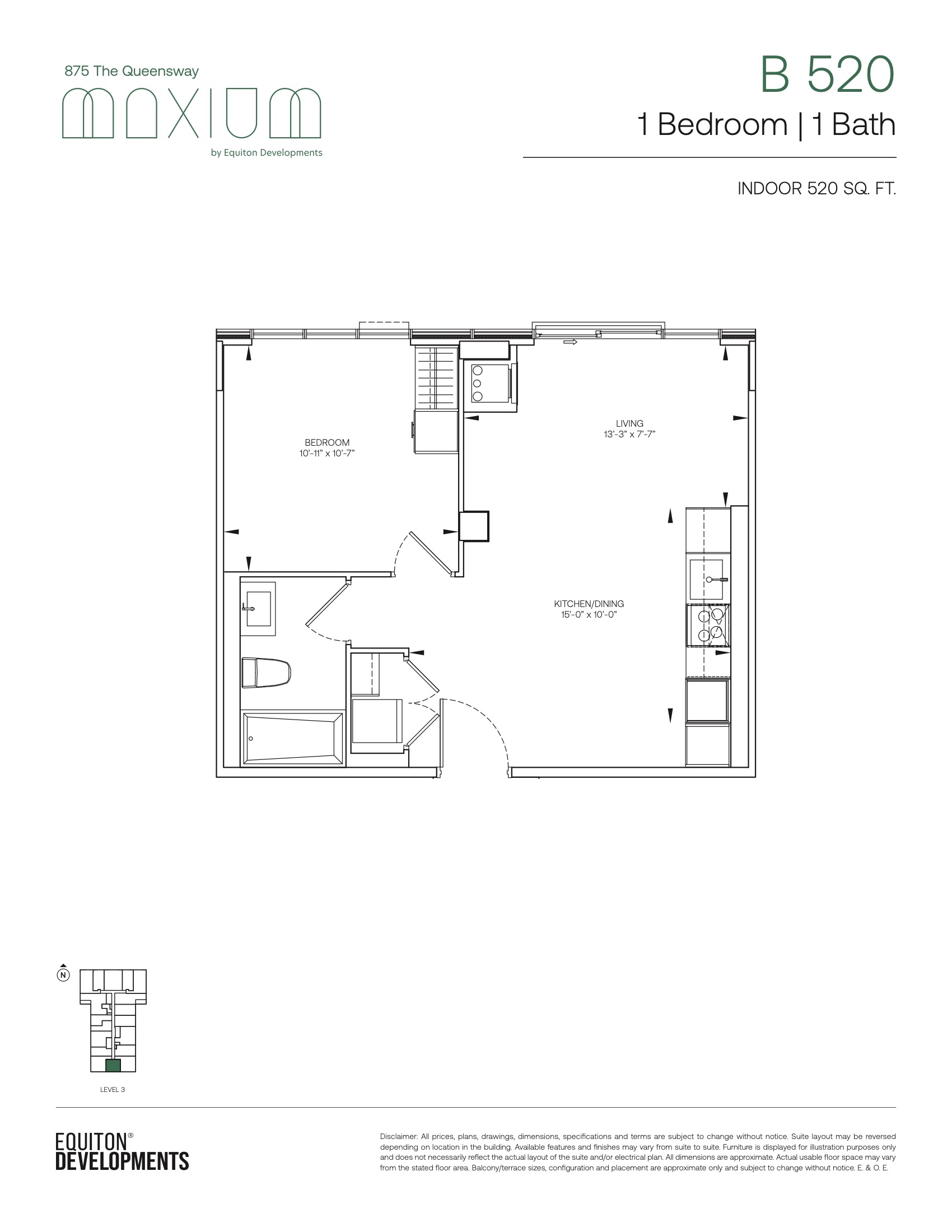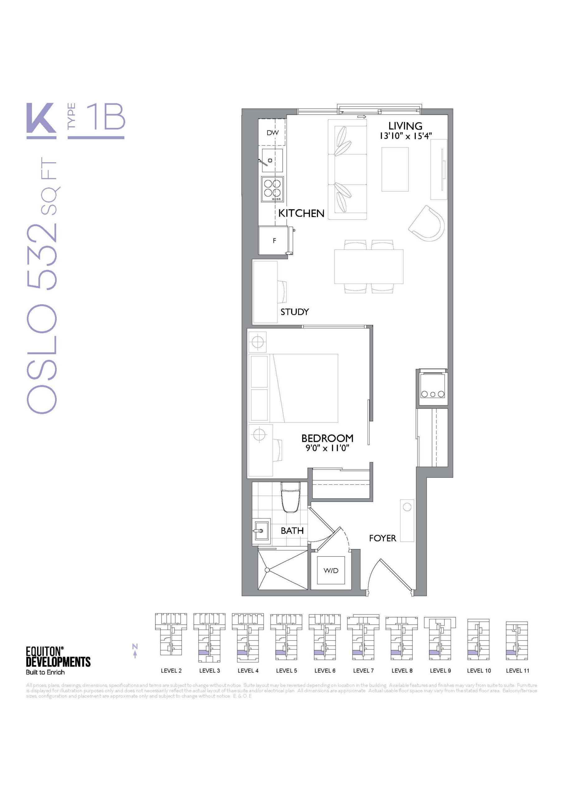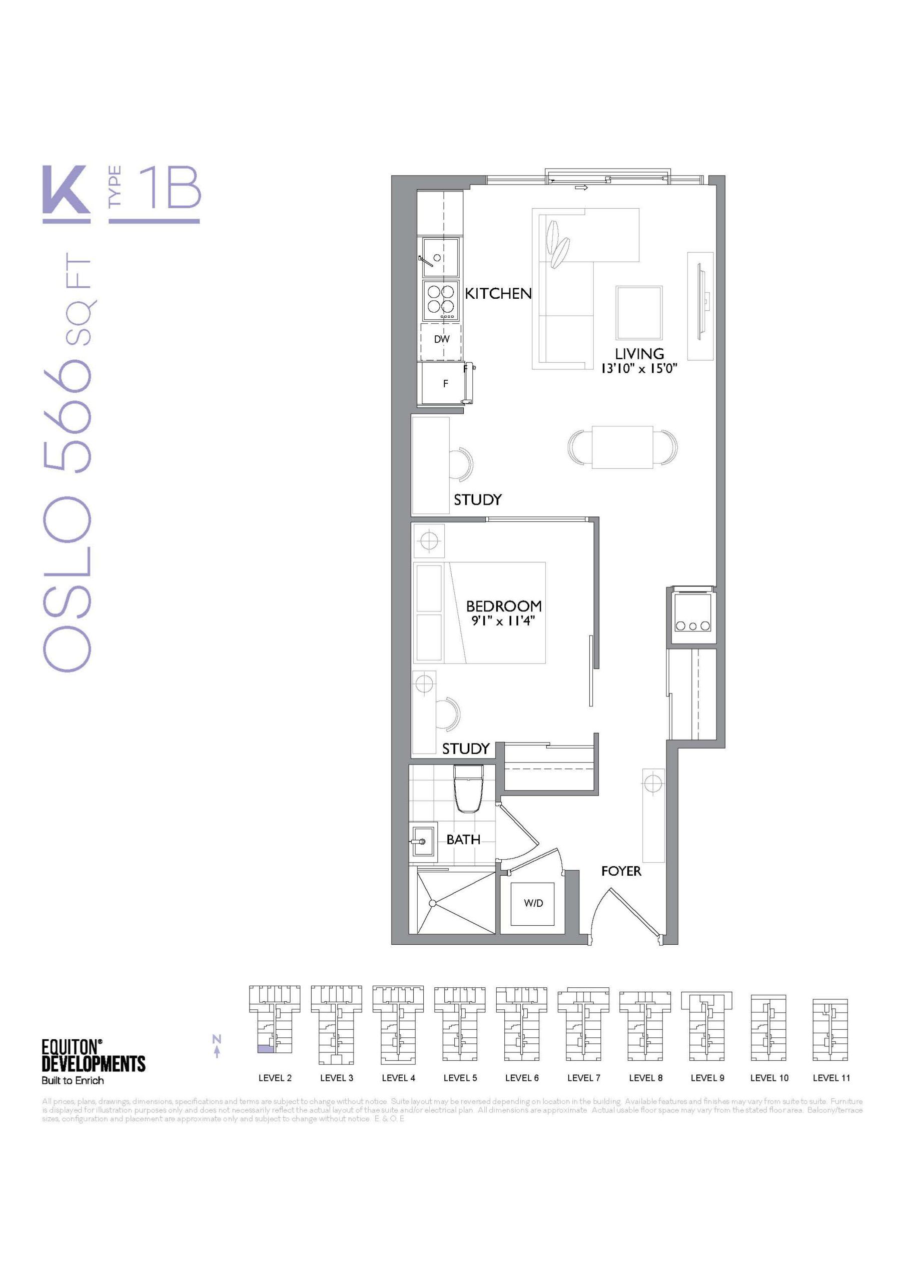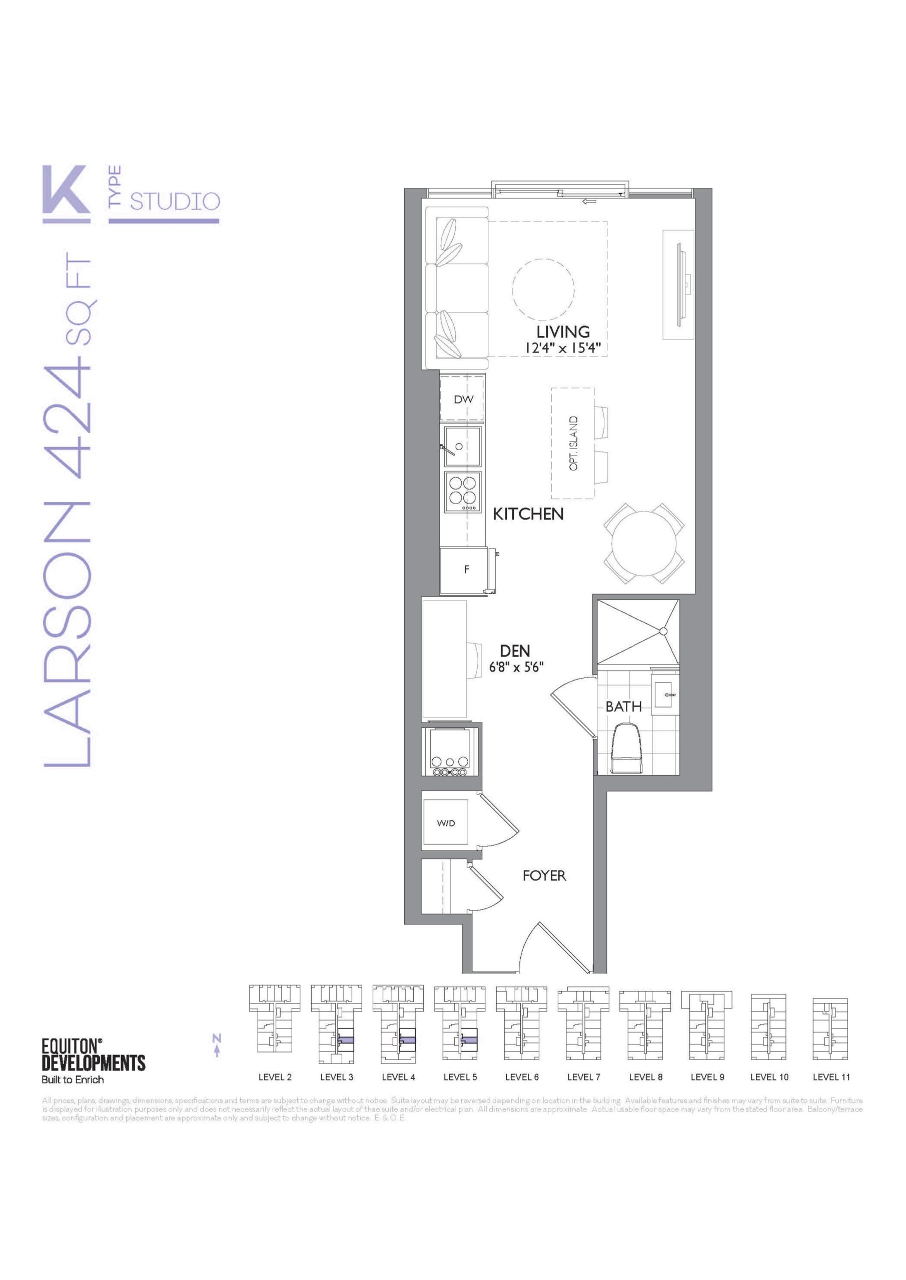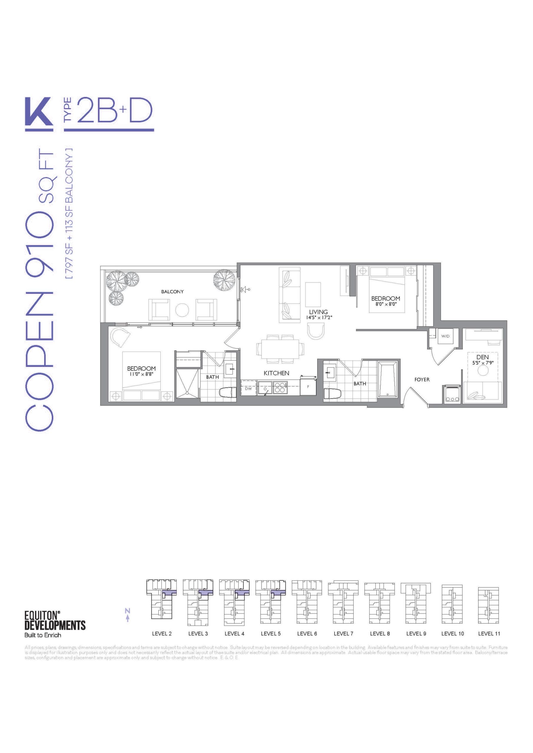 - 1 Bed + Den Change from Launch
