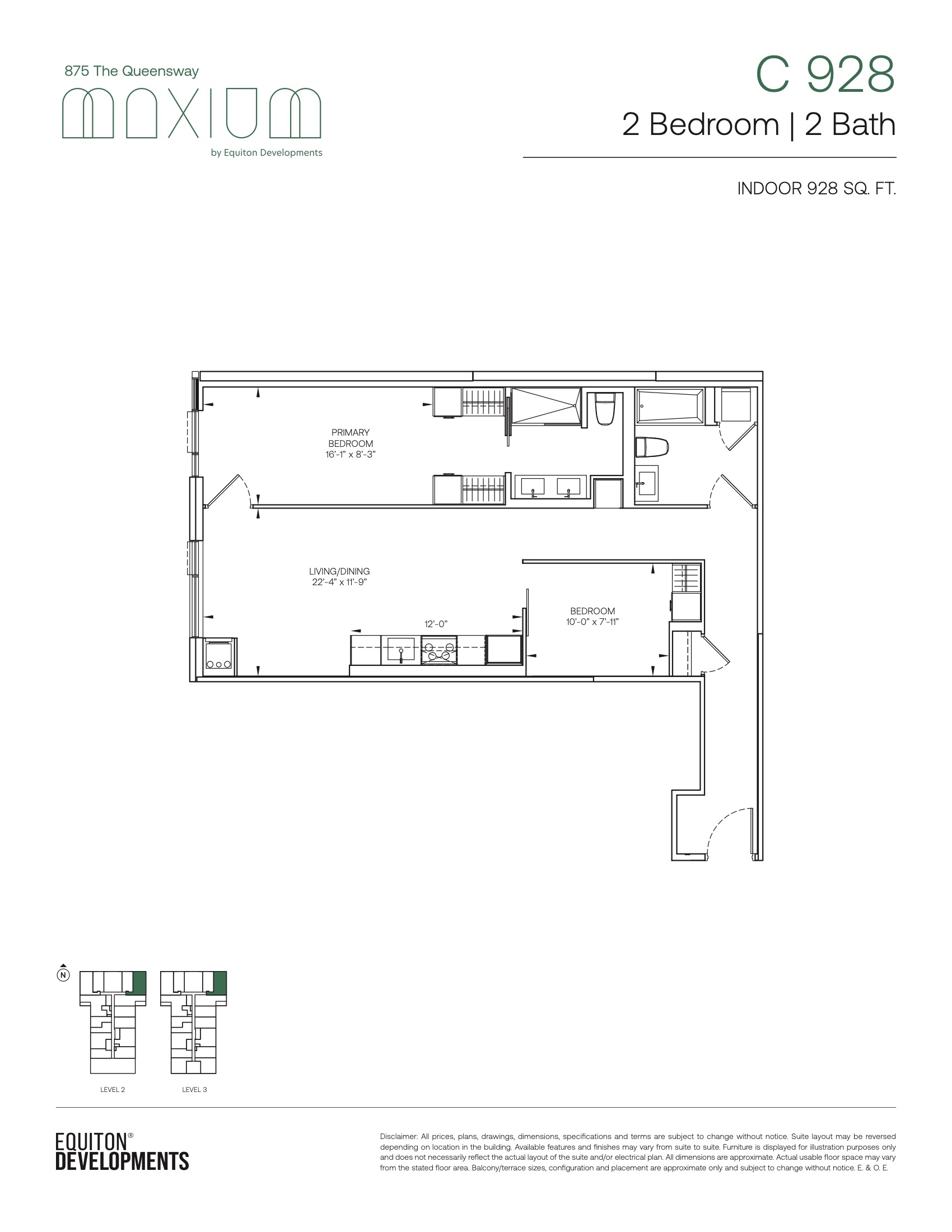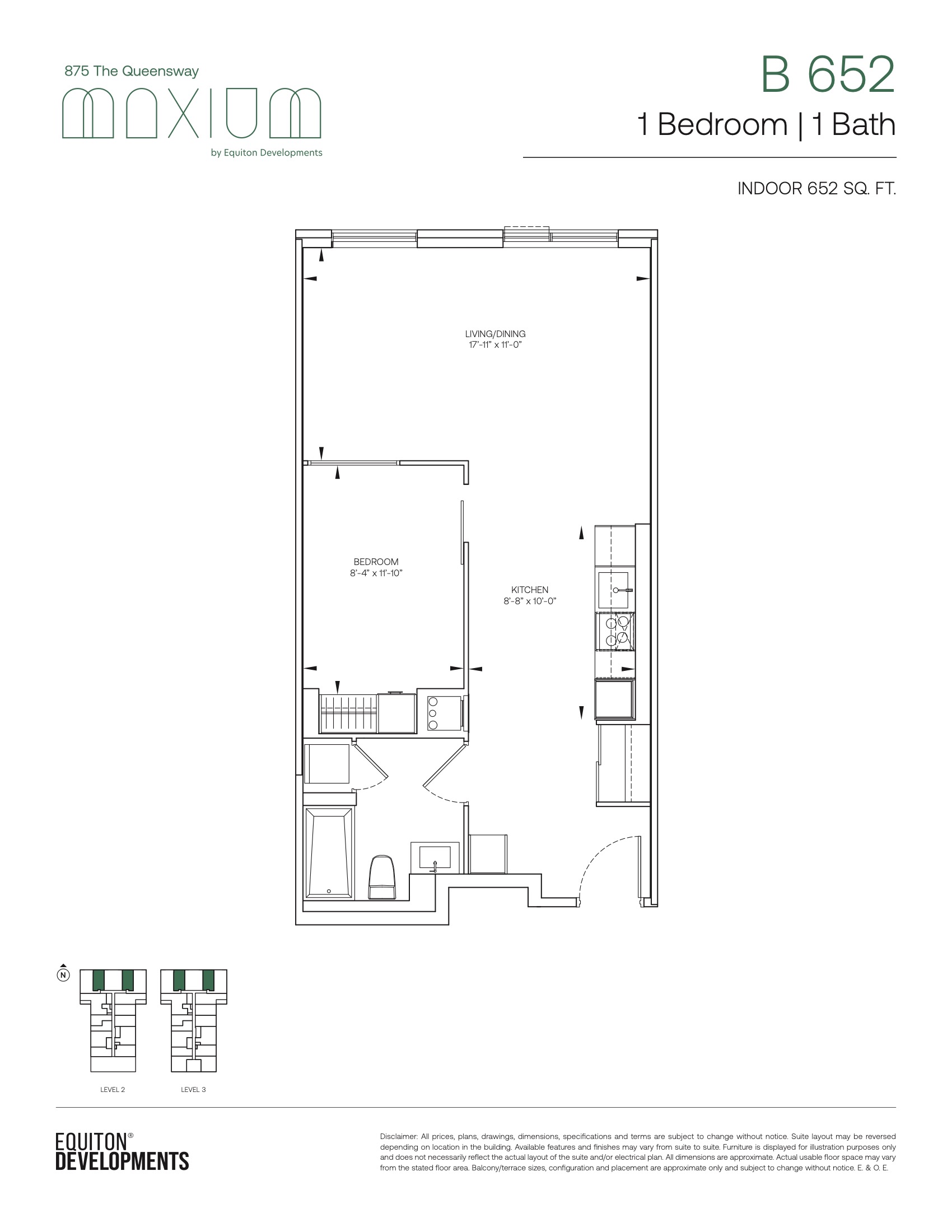 Maxium Condos is a new condominium development by Equiton currently in pre-construction located at 875 The Queensway, Toronto in the The Queensway neighbourhood with a 79/100 walk score and a 59/100 transit score. Maxium Condos is designed by KFA Architects and Planners and will feature interior design by Patton Design Studio. Development is scheduled to be completed in 2027. The project is 11 storeys tall and has a total of 152 suites ranging from 337 sq.ft to 1674 sq.ft. Maxium Condos is the #586 tallest condominium in Toronto and the #9 tallest condominium in The Queensway. Suites are priced from $479,900 to $1,294,900.