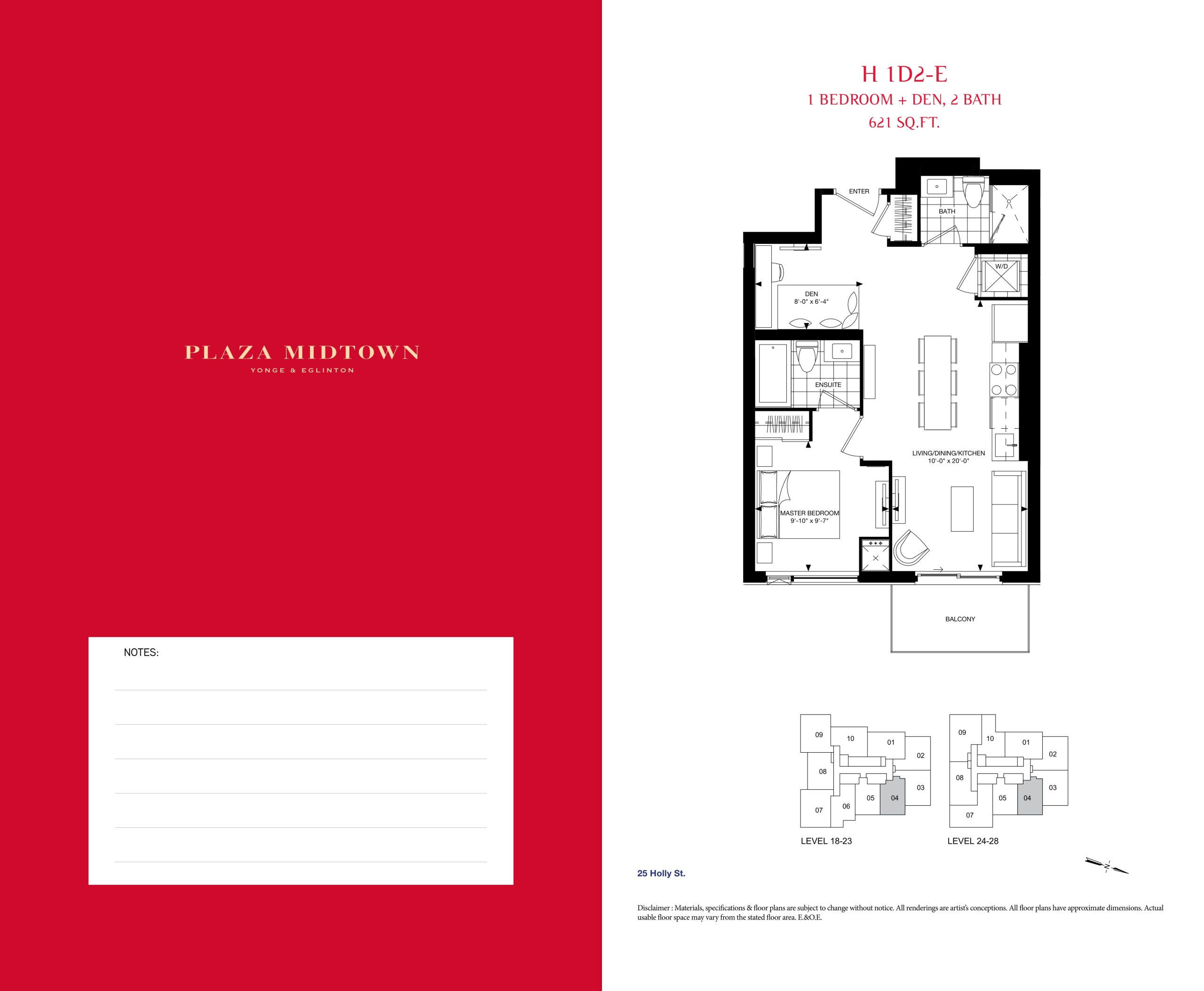 Plaza Midtown Condos is a new condominium development by Plaza that is now complete located at 25 Holly Street, Toronto in the Davisville Village neighbourhood with a 98/100 walk score and a 95/100 transit score. Plaza Midtown Condos is designed by BDP Quadrangle. Development is scheduled to be completed in 2024. The project is 34 storeys tall (106.8m, 350.4ft) and has a total of 545 suites ranging from 480 sq.ft to 1058 sq.ft. Plaza Midtown Condos is the #1399 tallest condominium in Toronto and the #28 tallest condominium in Davisville Village. Suites are priced from $915,000 to $1,542,000.
