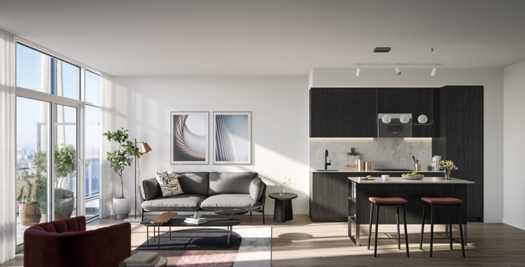 Design & Architecture: Q Tower is a 60-storey skyscraper that blends modern elegance with a classic touch. It features a dark-colored exterior palette and zigzag balconies, creating a dramatic and dynamic appearance.