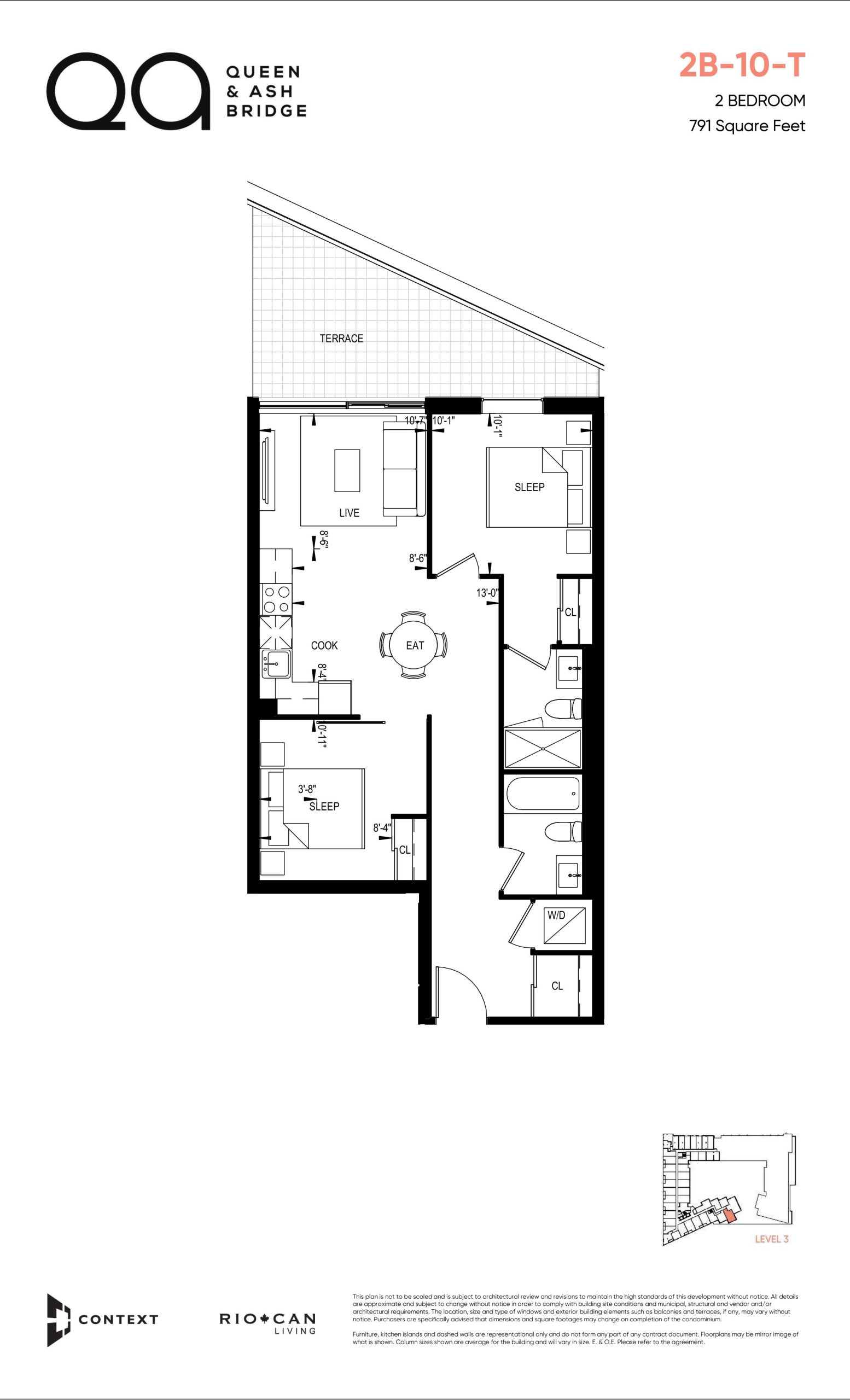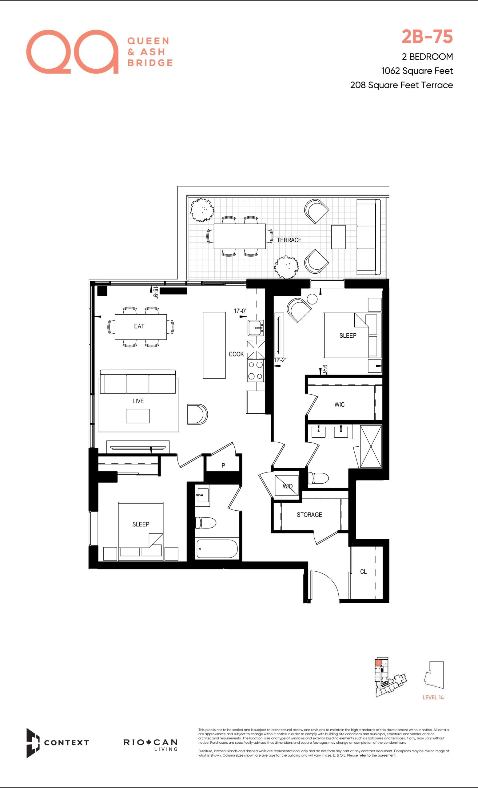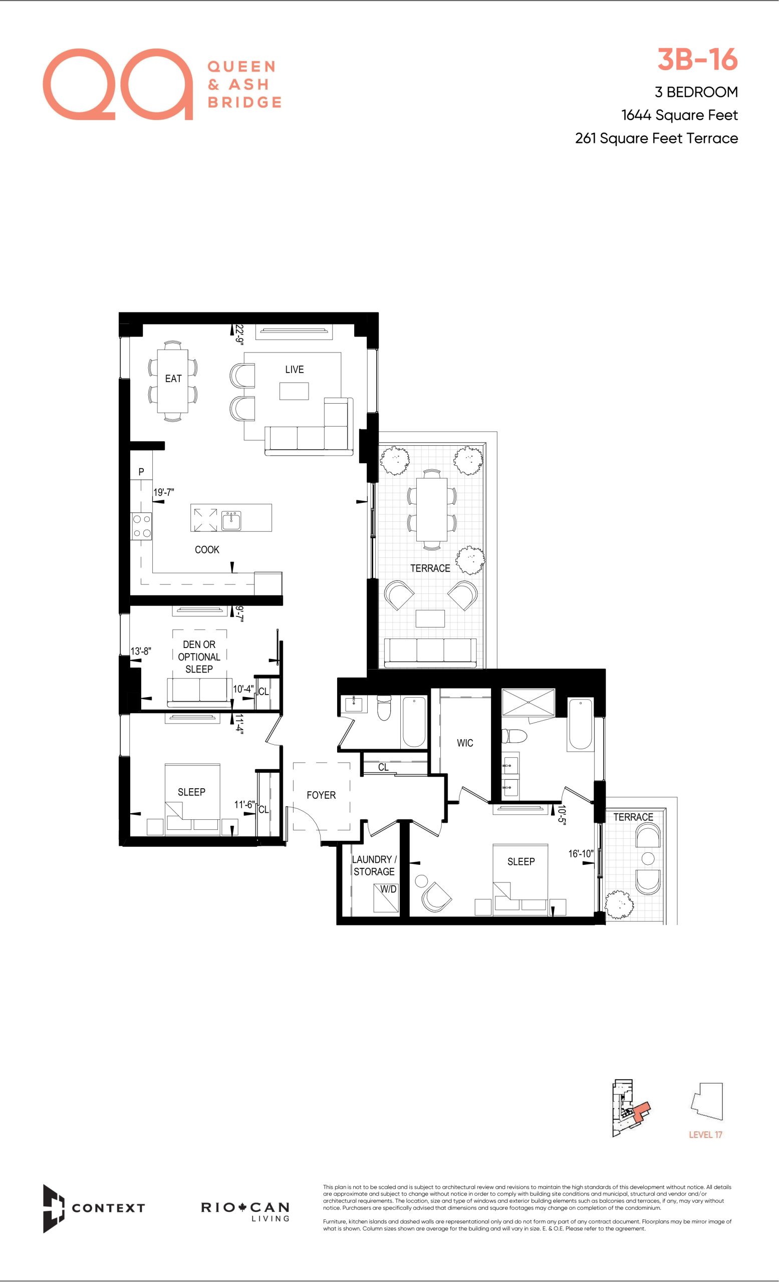 Architectural Design: The condos are designed by Teeple Architects, featuring a unique architectural style that includes a 8-storey brick-faced Queen Street wing and a cascading 17-storey pyramid-shaped tower.