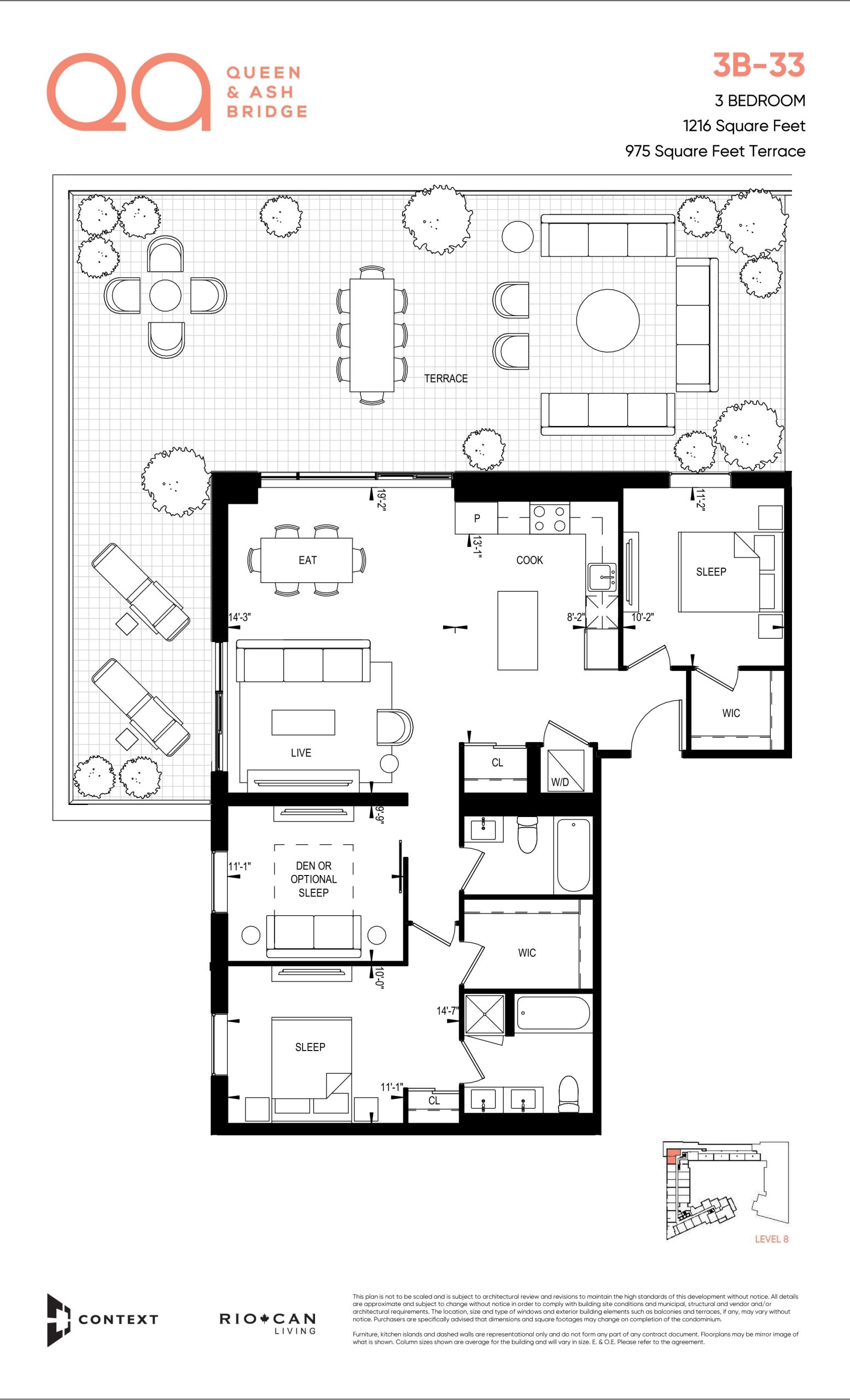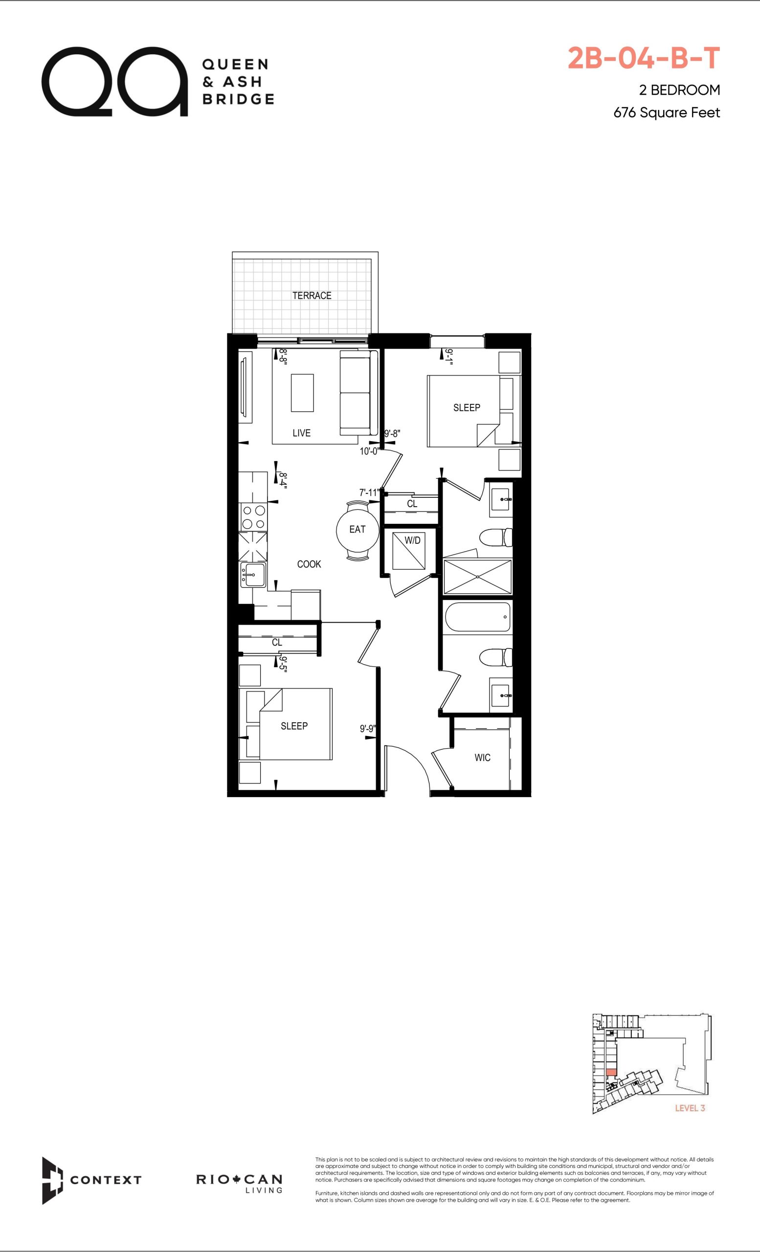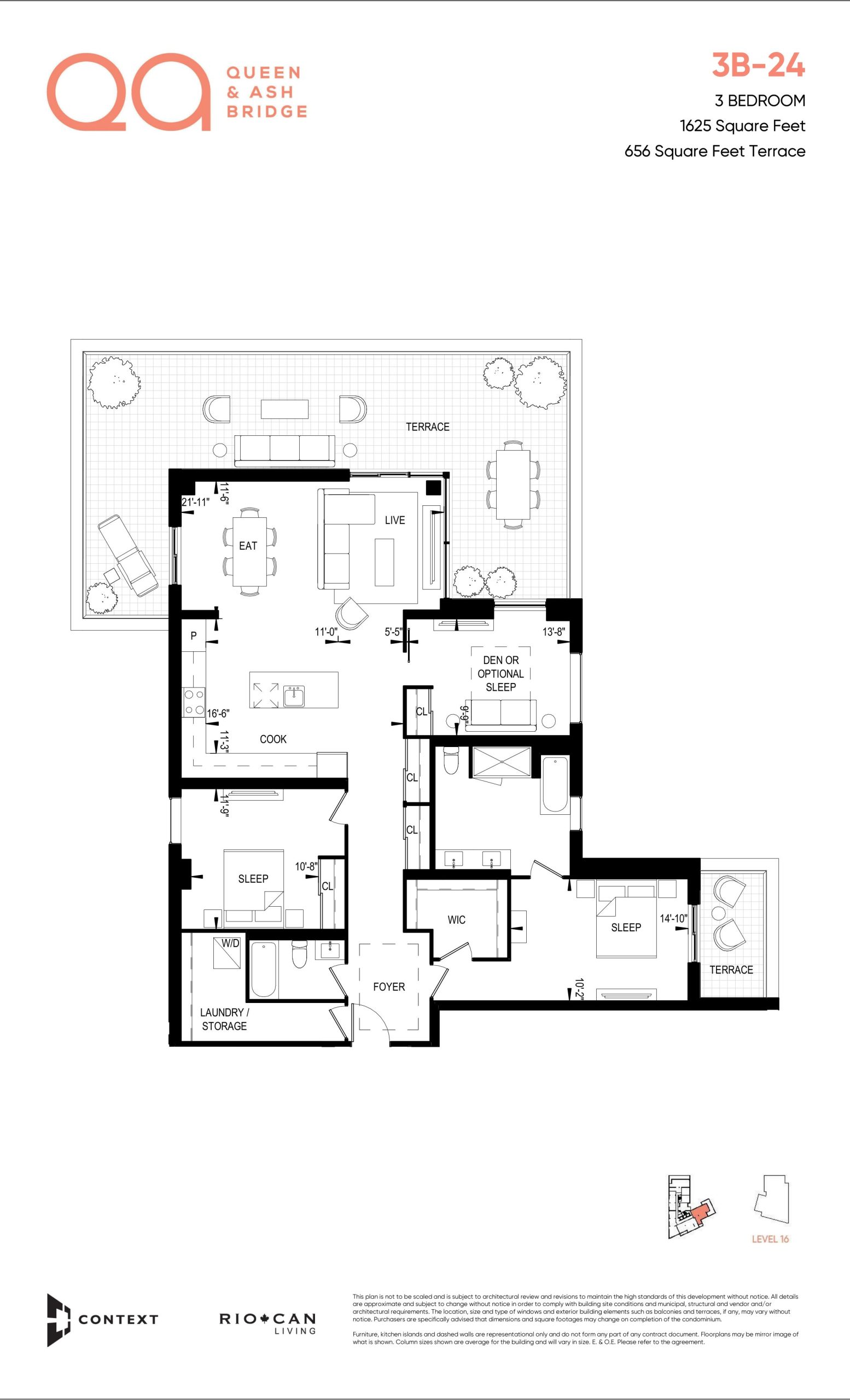 Architectural Design: The condos are designed by Teeple Architects, featuring a unique architectural style that includes a 8-storey brick-faced Queen Street wing and a cascading 17-storey pyramid-shaped tower.