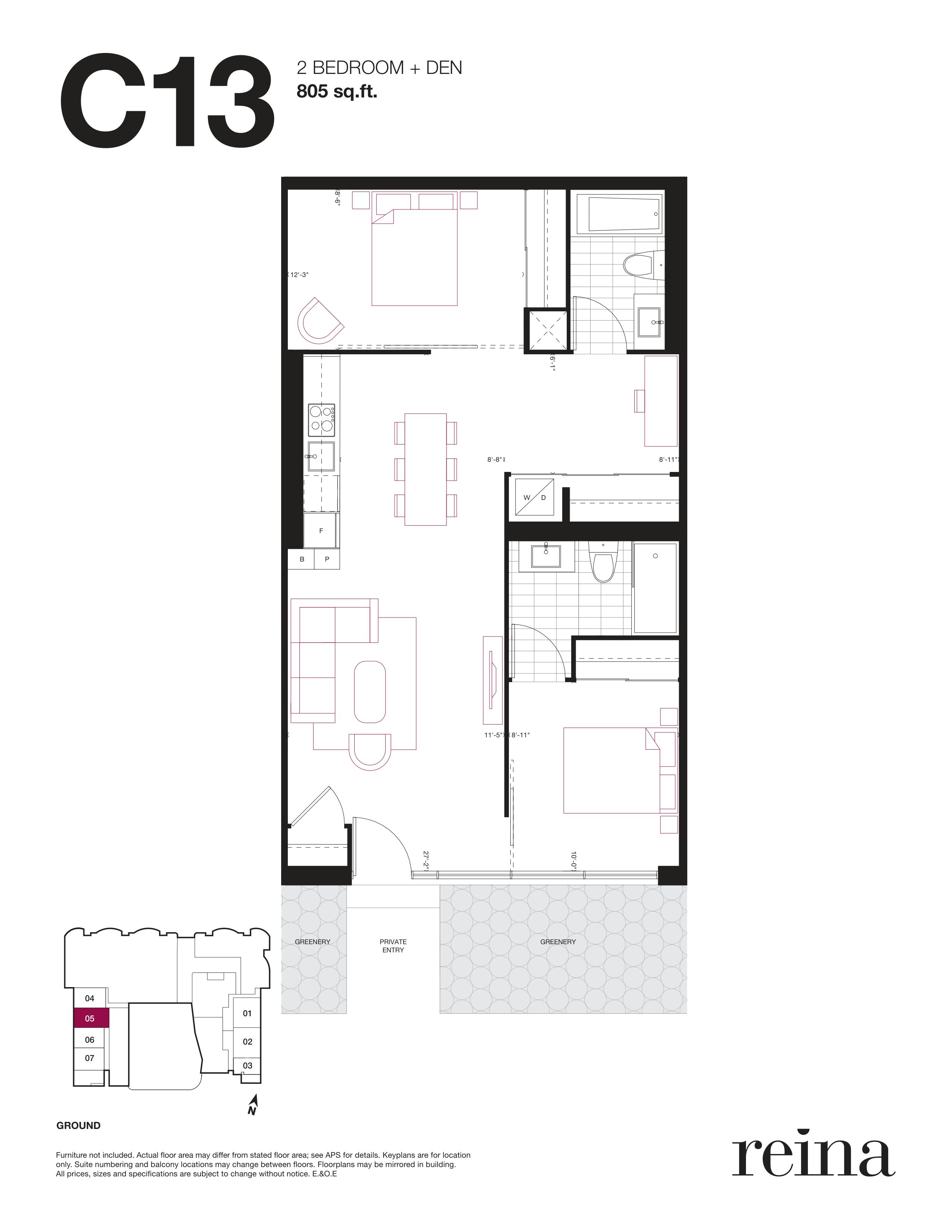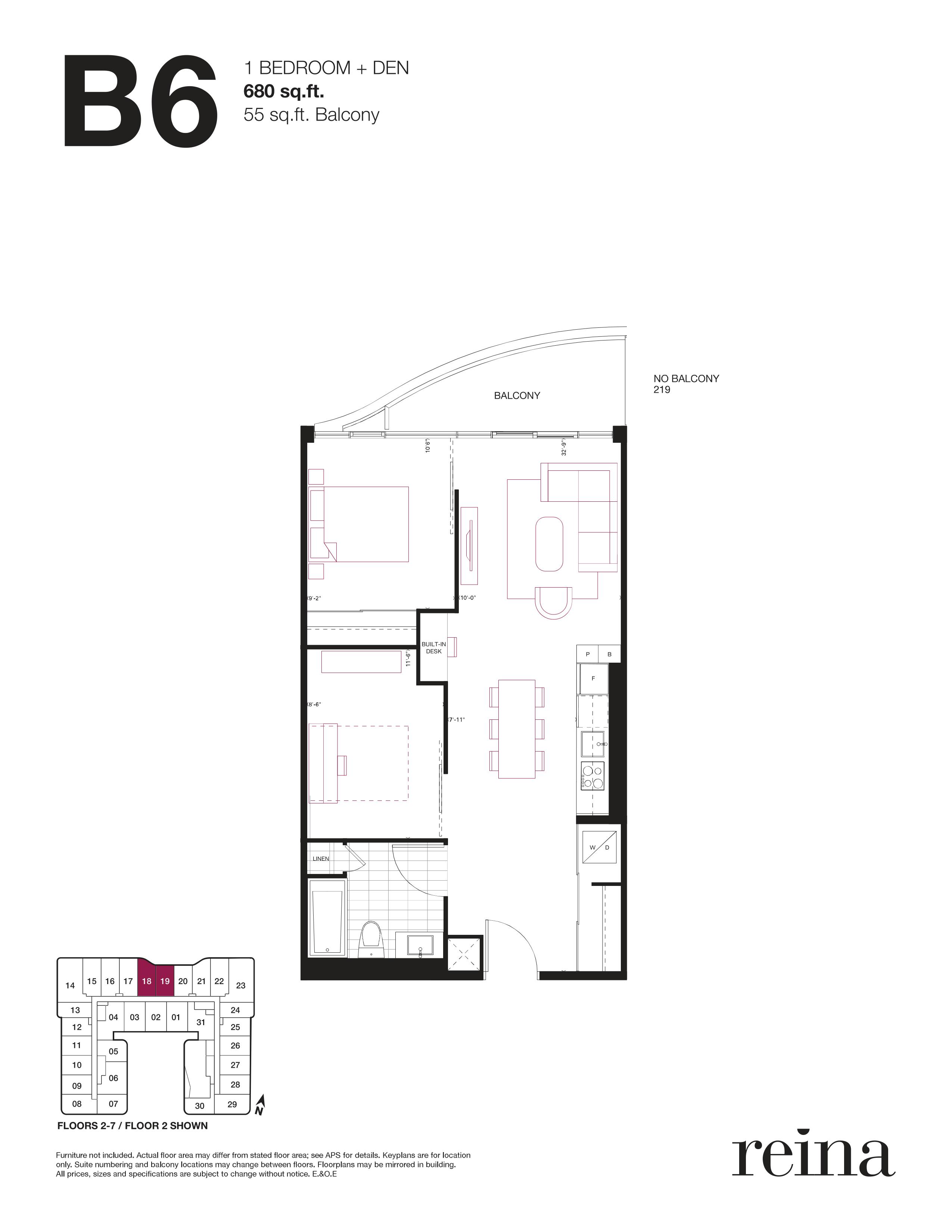 - 1 Bed + Den Change from Launch