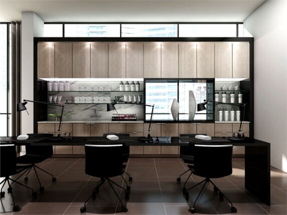 Cabinetry with cultured marble* top undermount rectangular basin complete with integrated basin