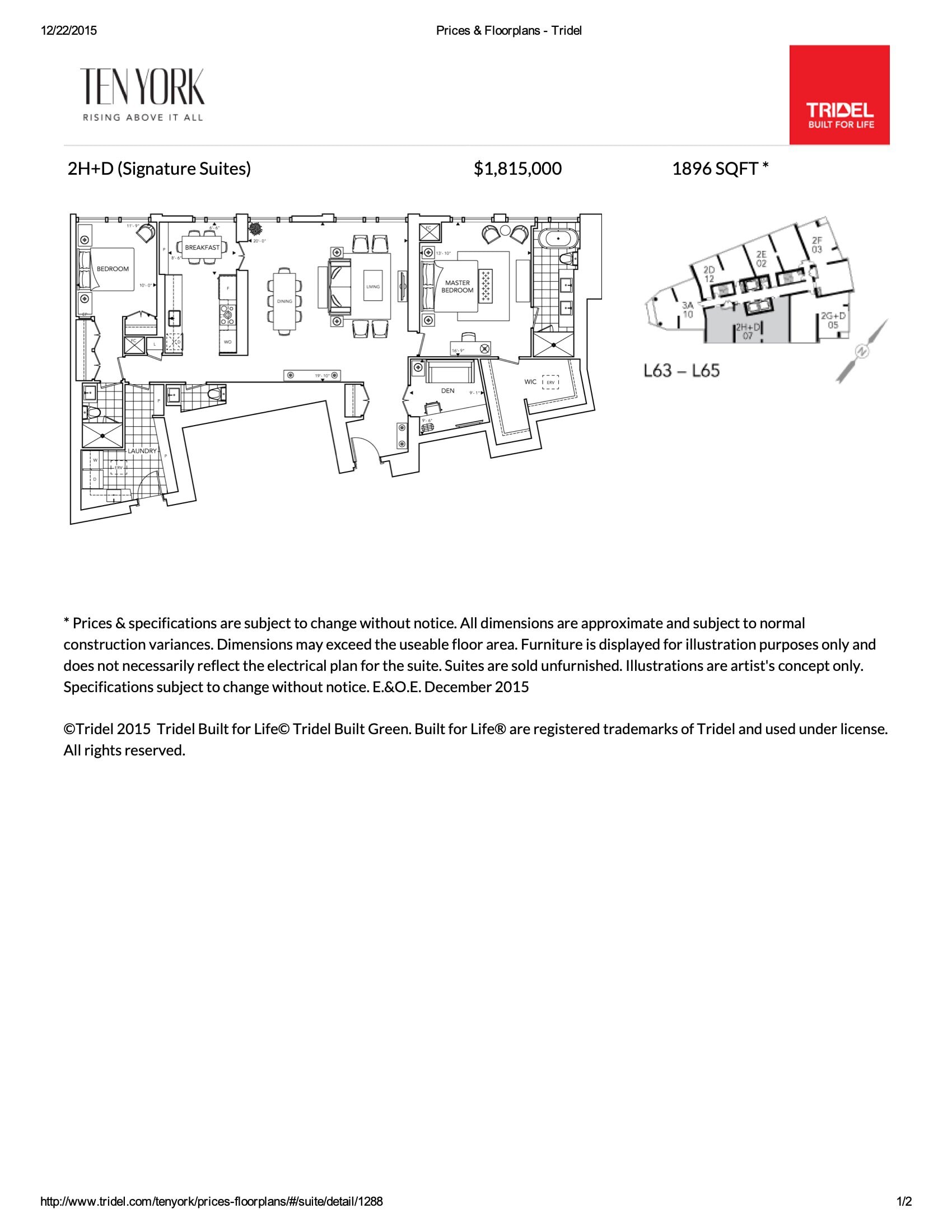 Floor Premiums apply, please speak to sales representative for further information.