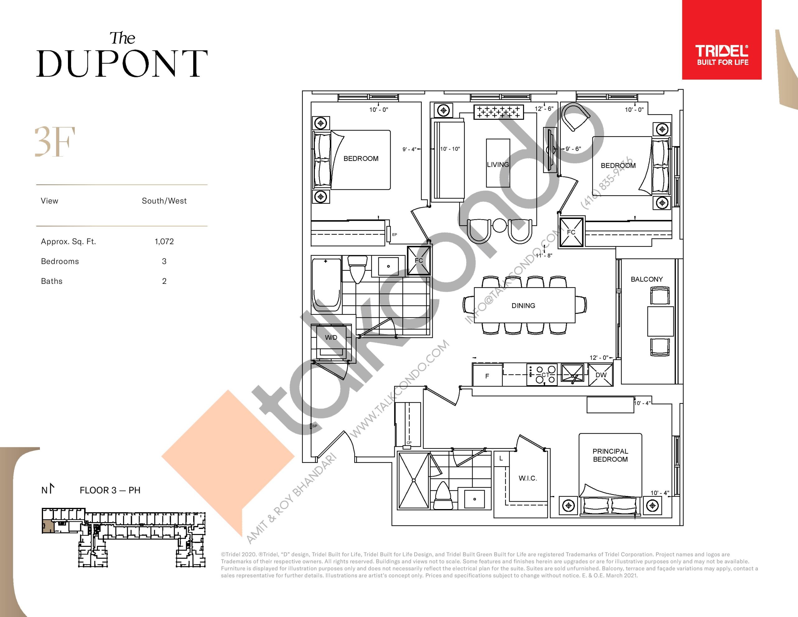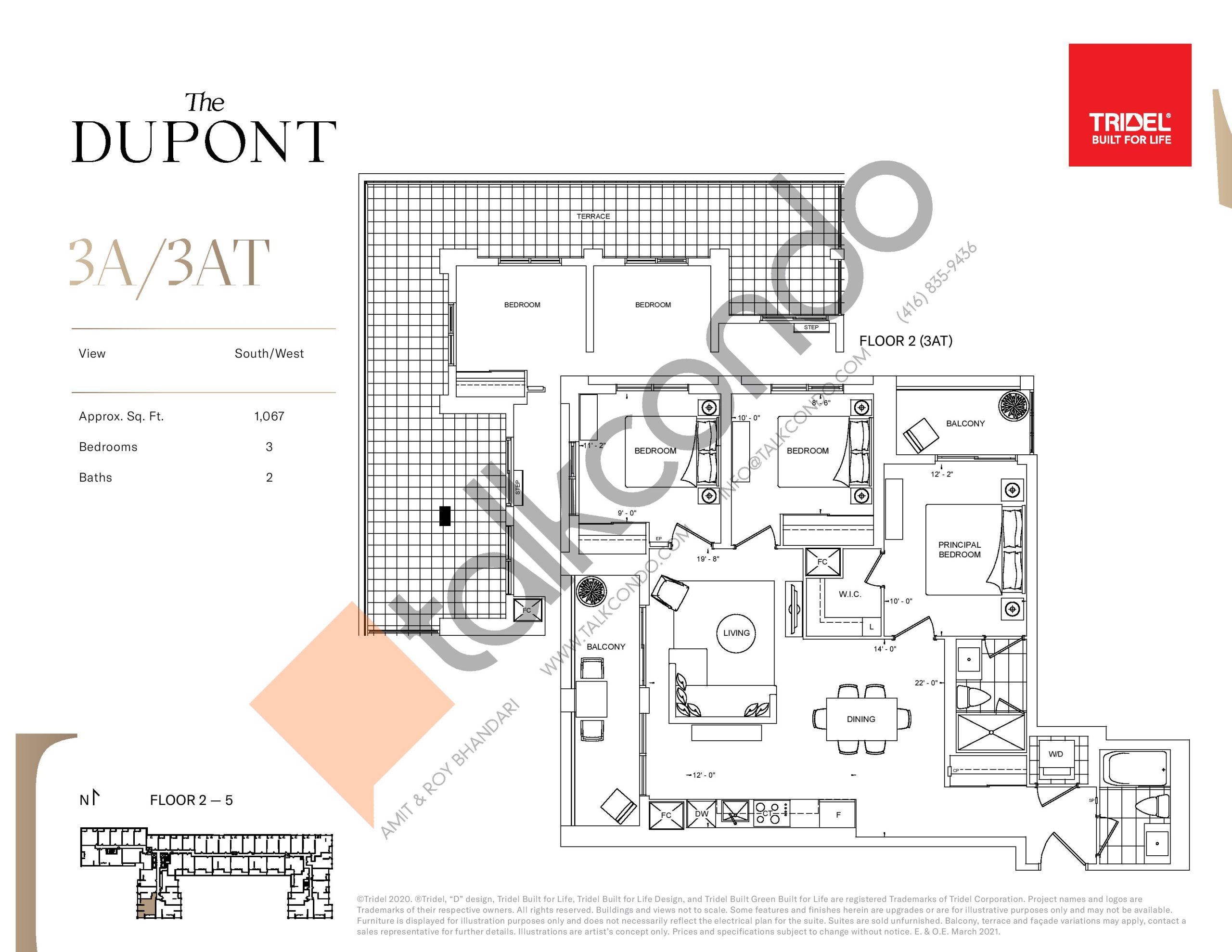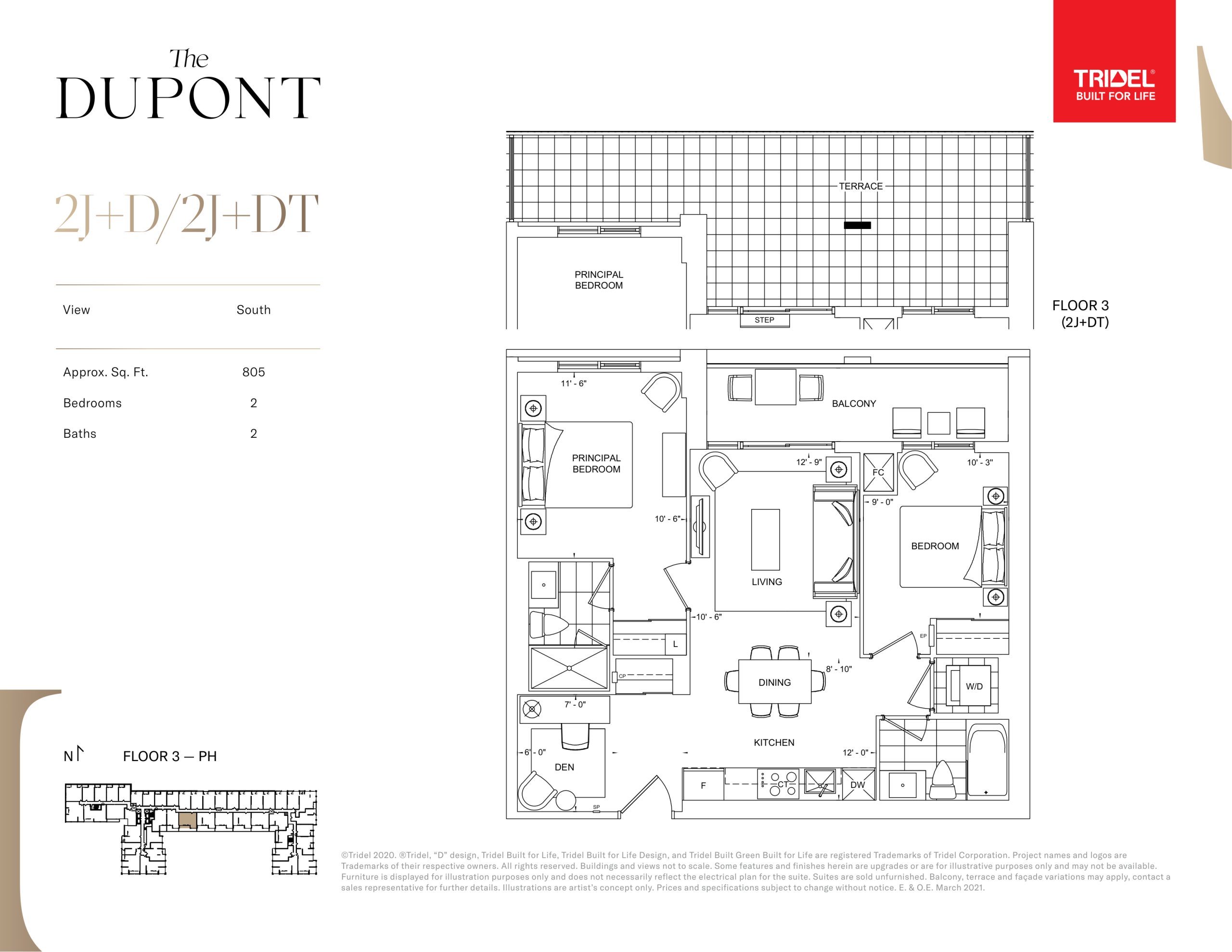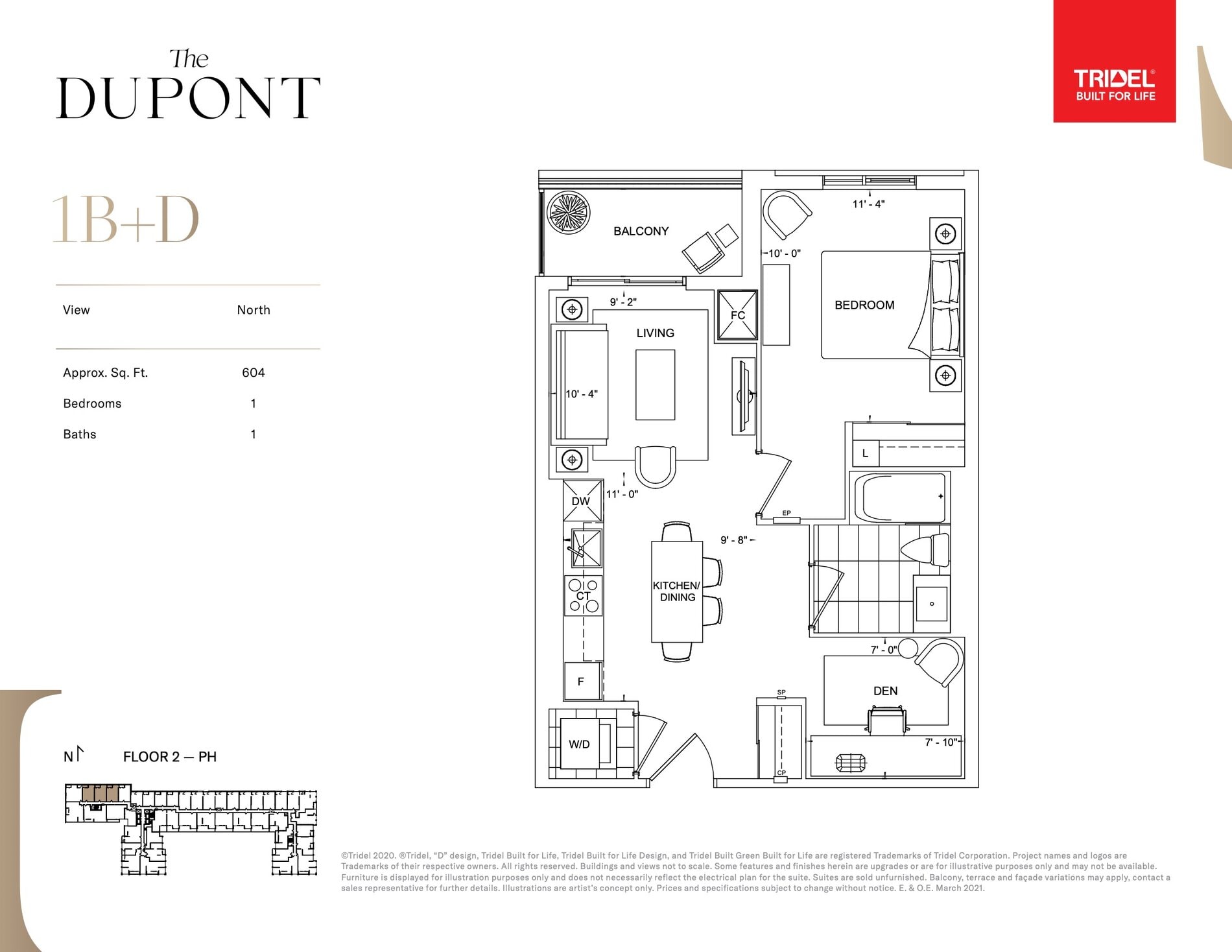 The Dupont Condos is a new condominium development by Tridel currently under construction located at 840 Dupont Street, Toronto in the Davenport-Wychwood neighbourhood with a 70/100 walk score and a 81/100 transit score. The Dupont Condos is designed by Turner Fleischer Architects and will feature interior design by U31. Development is scheduled to be completed in 2025. The project is 9 storeys tall (36.55m, 120ft) and has a total of 329 suites ranging from 532 sq.ft to 1288 sq.ft. The Dupont Condos is the # tallest condominium in . Suites are priced from $1,040,000 to $1,840,000.
