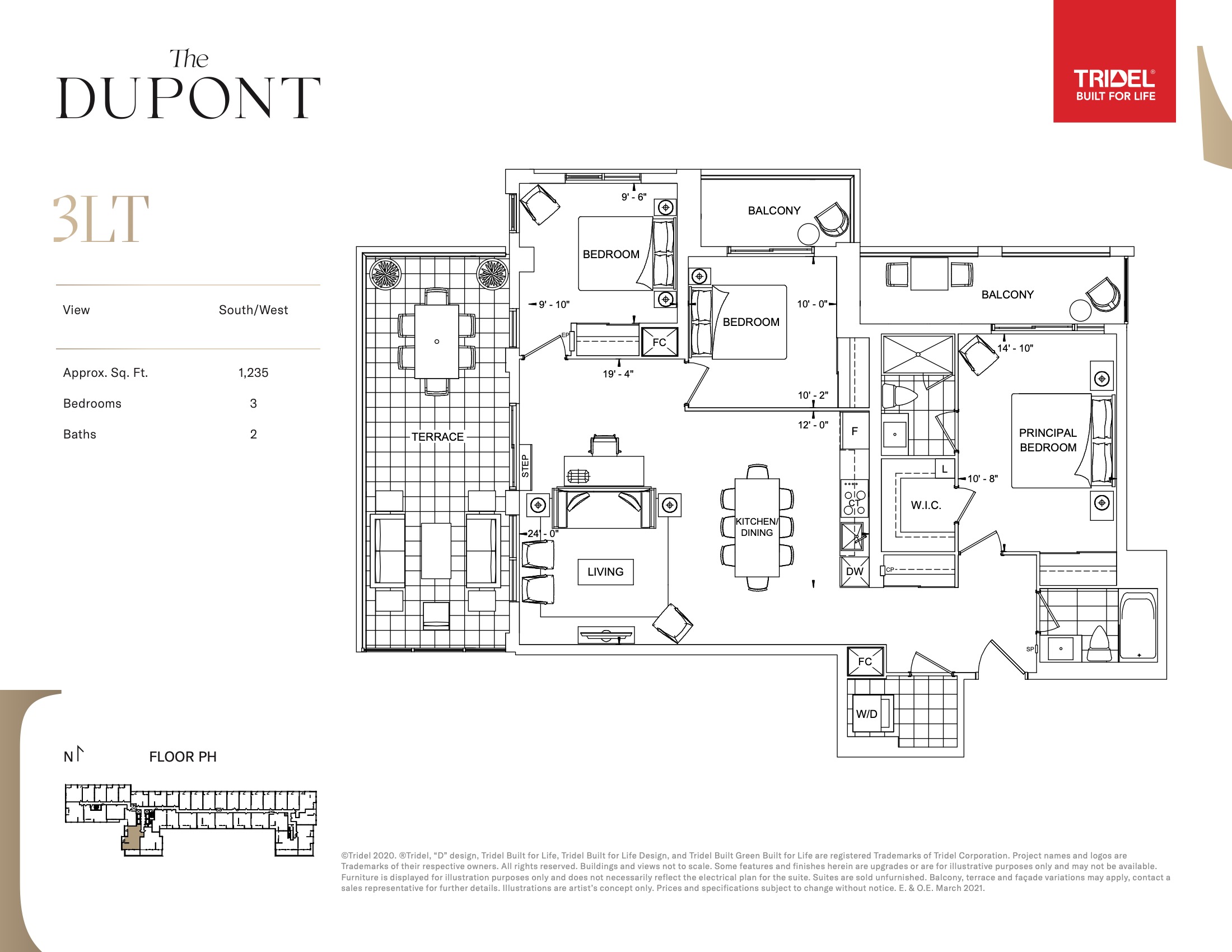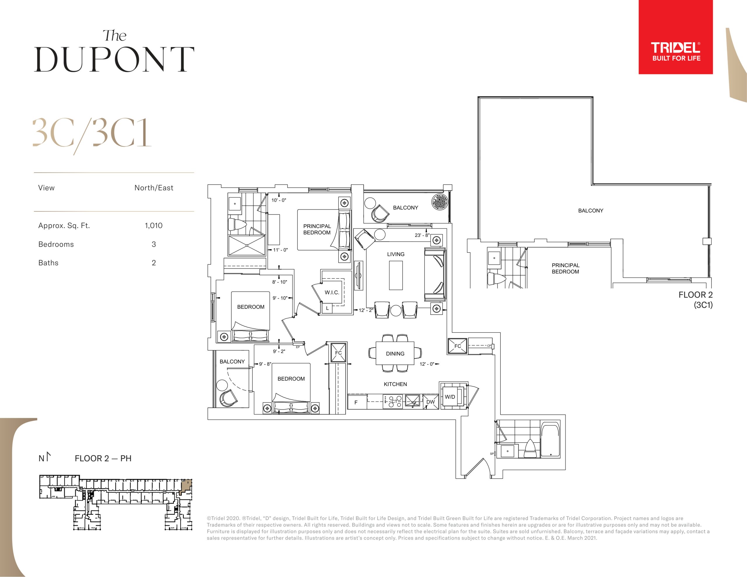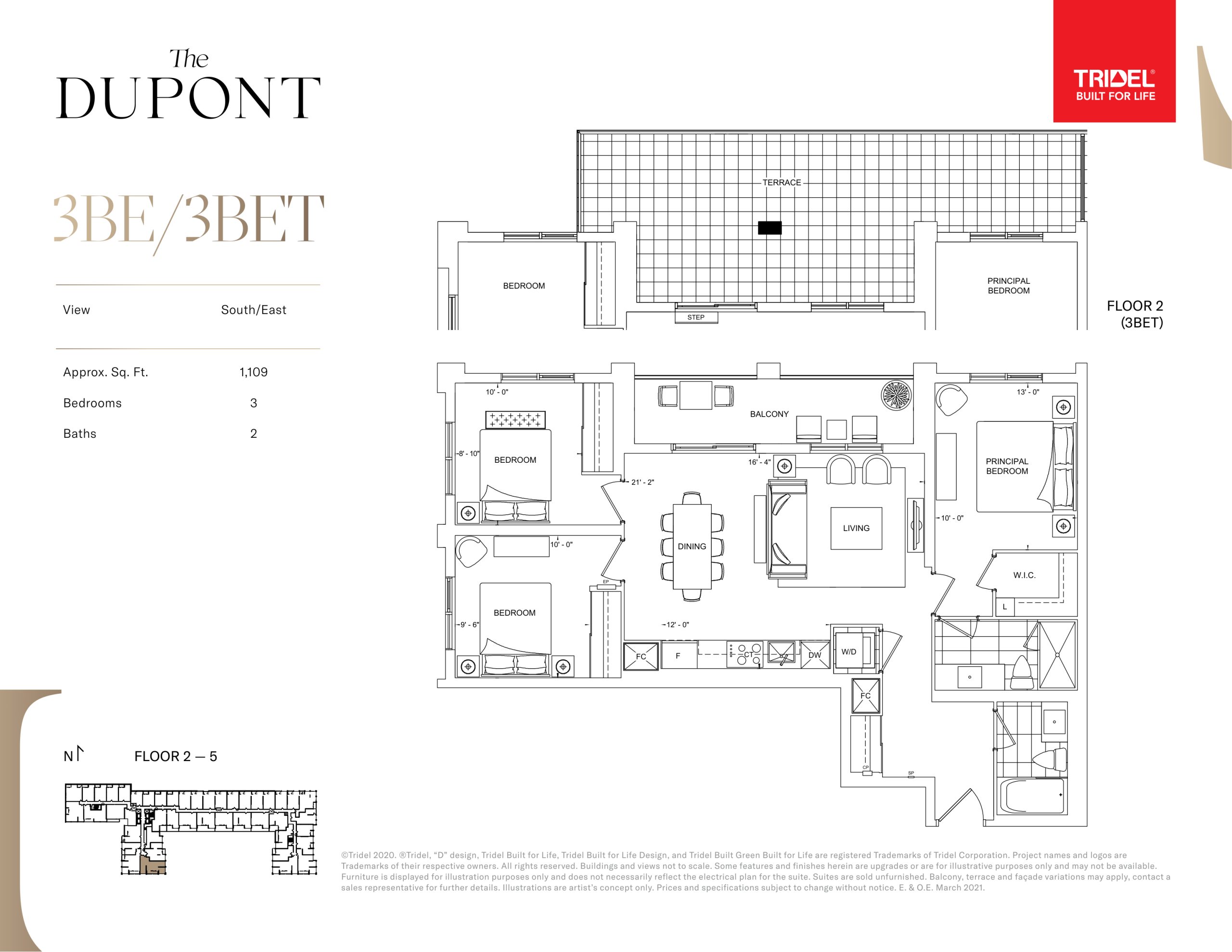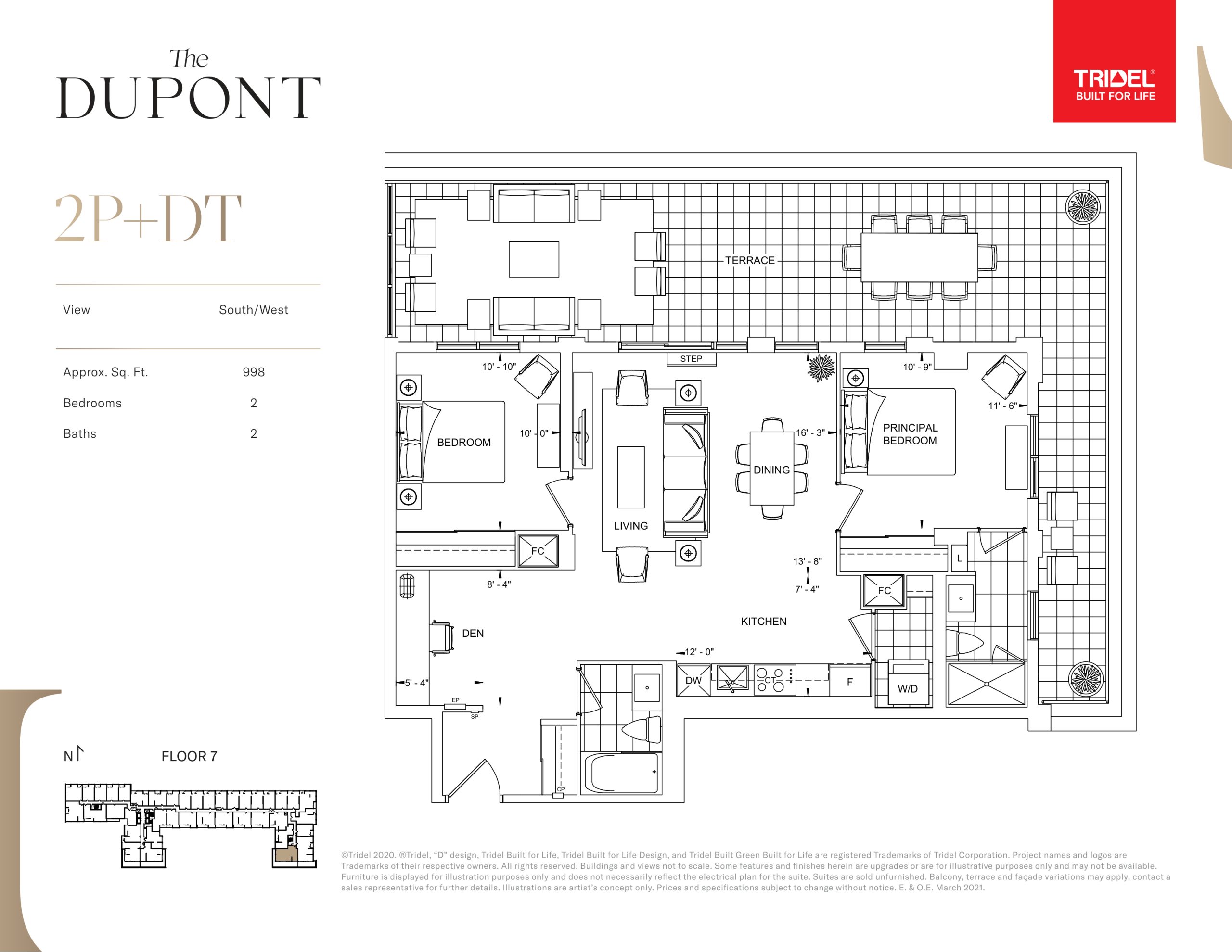 The Dupont Condos is a new condominium development by Tridel currently under construction located at 840 Dupont Street, Toronto in the Davenport-Wychwood neighbourhood with a 70/100 walk score and a 81/100 transit score. The Dupont Condos is designed by Turner Fleischer Architects and will feature interior design by U31. Development is scheduled to be completed in 2025. The project is 9 storeys tall (36.55m, 120ft) and has a total of 329 suites ranging from 532 sq.ft to 1288 sq.ft. The Dupont Condos is the # tallest condominium in . Suites are priced from $1,040,000 to $1,840,000.