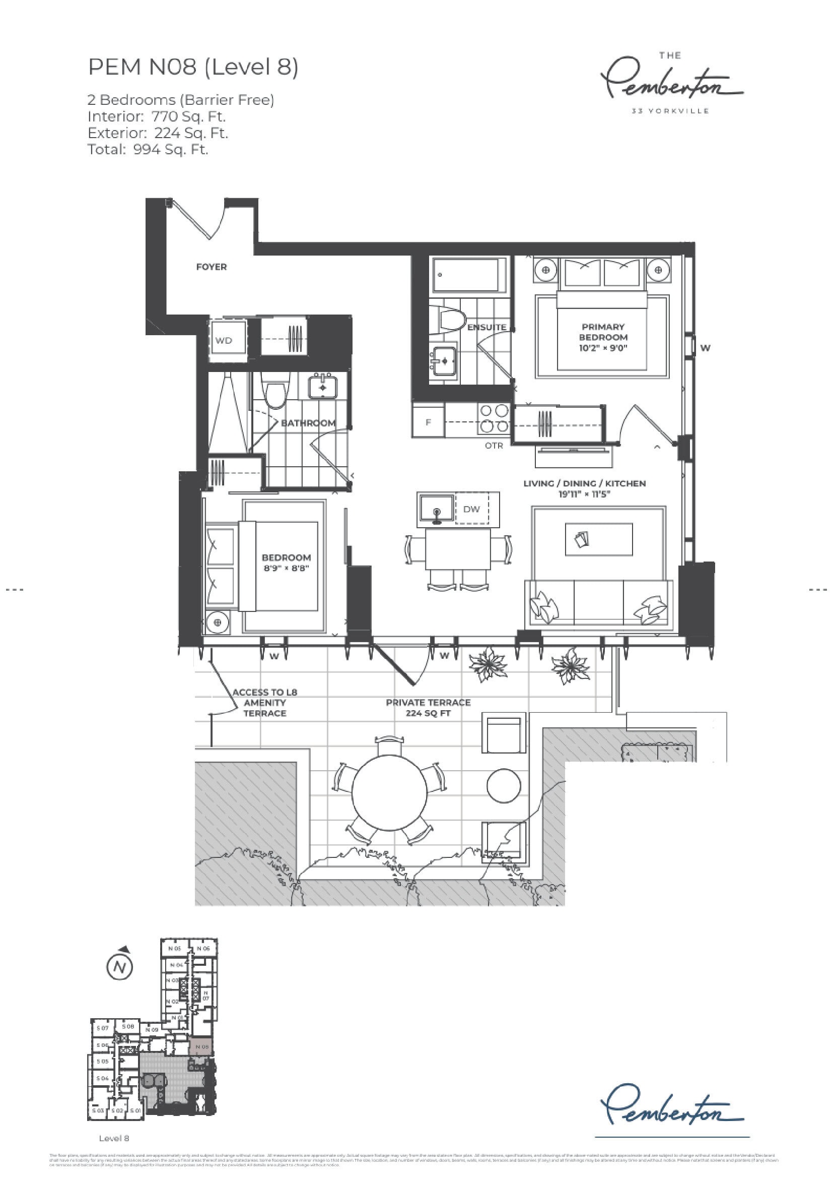 Excellent Walk and Transit Scores: The Pemberton boasts a walking/transit score of 98, offering unrivaled transit connectivity with access to multiple subway lines and major thoroughfares, making it one of Toronto's most accessible addresses.