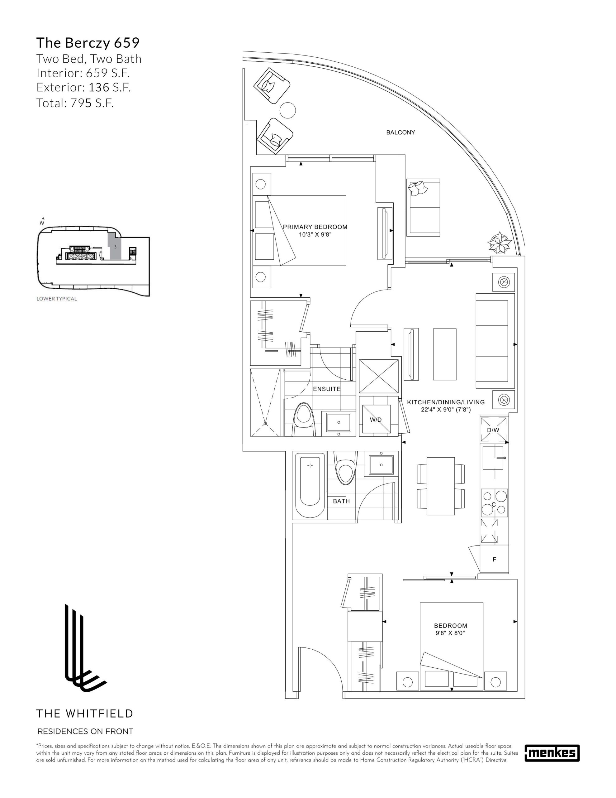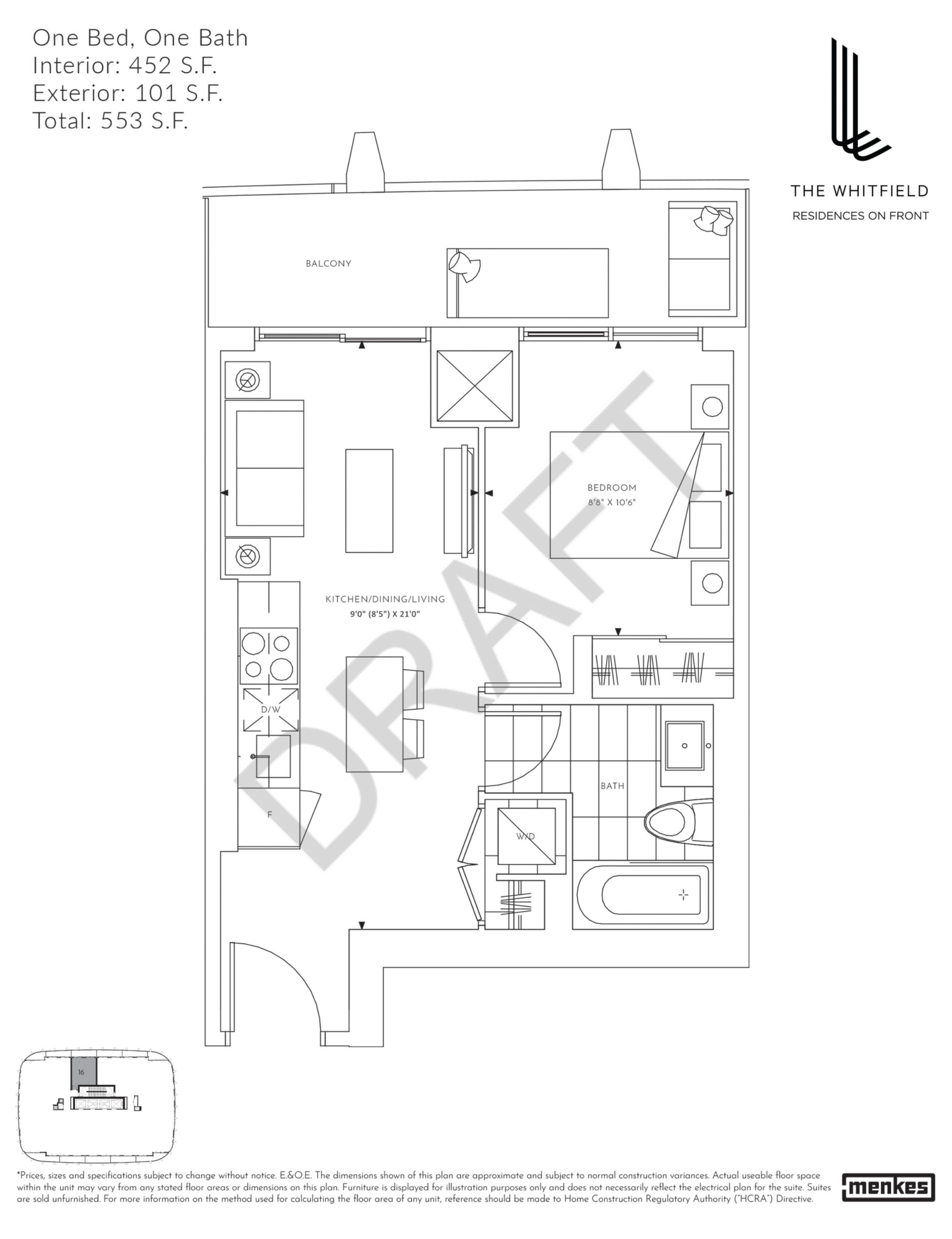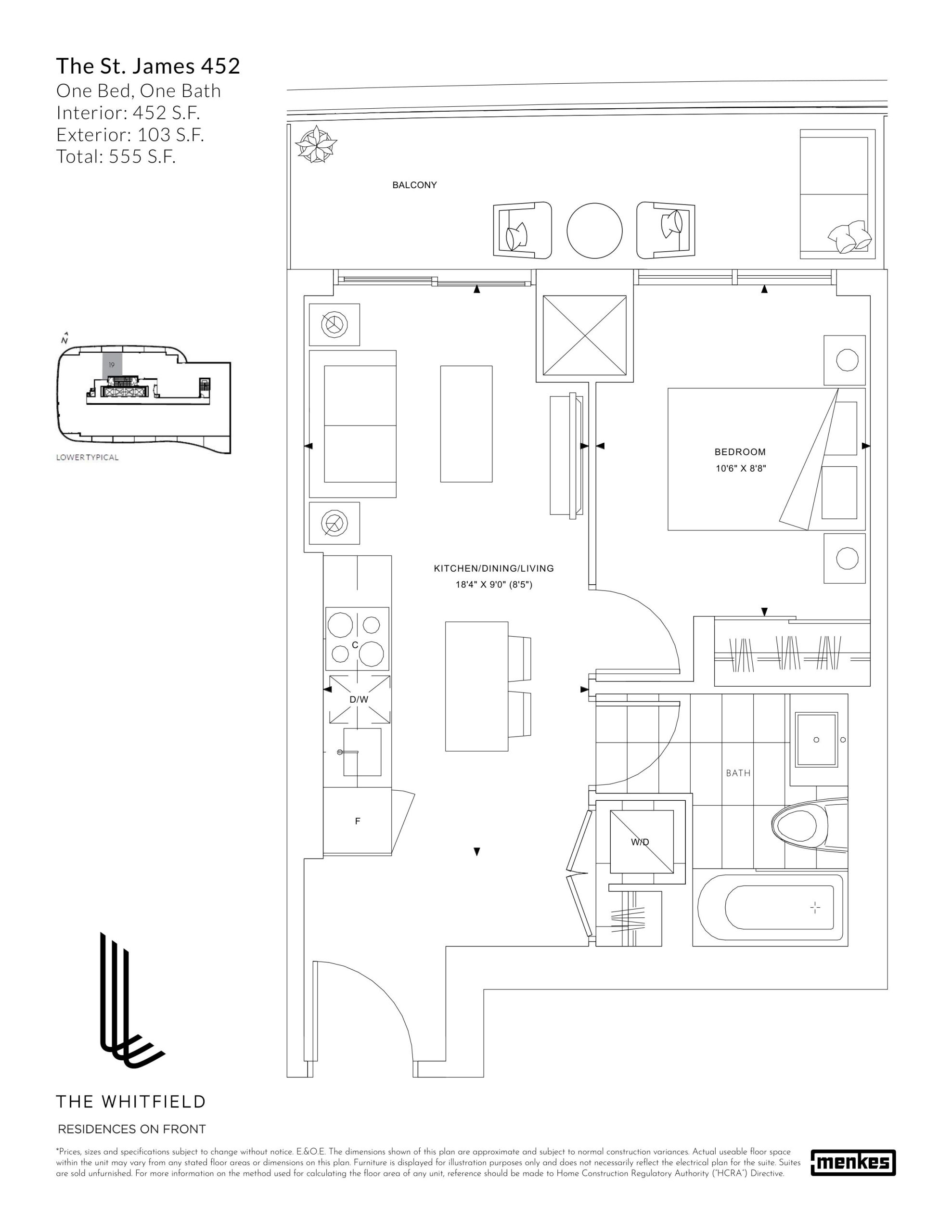 The Whitfield Condos is a new condominium development by Core Development Group & Menkes Developments Ltd. currently under construction located at 178 Front Street East, Toronto in the St. Lawrence Market neighbourhood with a 96/100 walk score and a 100/100 transit score. The Whitfield Condos is designed by Giannone Petricone Associates and will feature interior design by Figure3. Development is scheduled to be completed in 2025. The project is 39 storeys tall and has a total of 484 suites ranging from 392 sq.ft to 841 sq.ft. The Whitfield Condos is the #1539 tallest condominium in Toronto and the #33 tallest condominium in St. Lawrence Market.