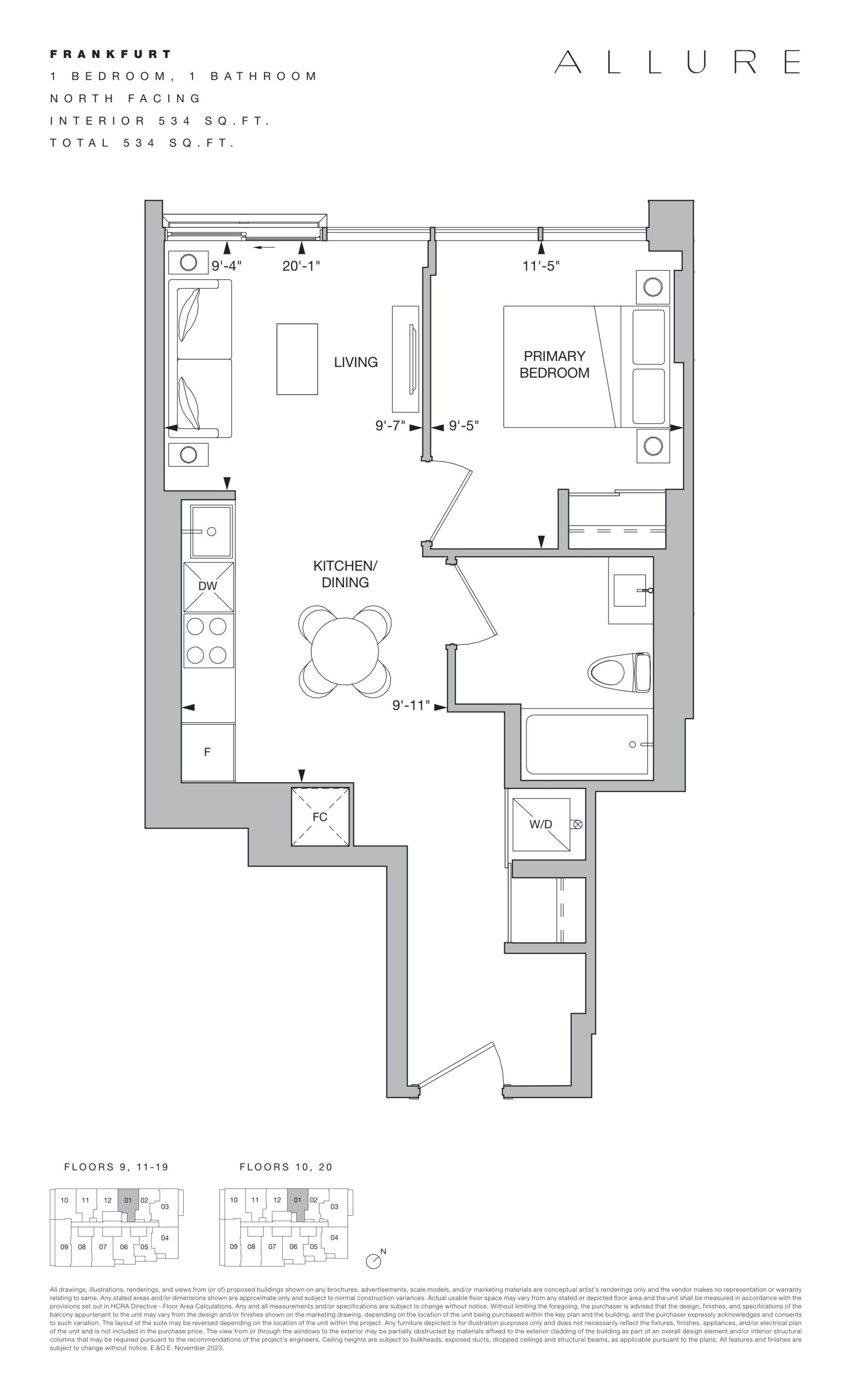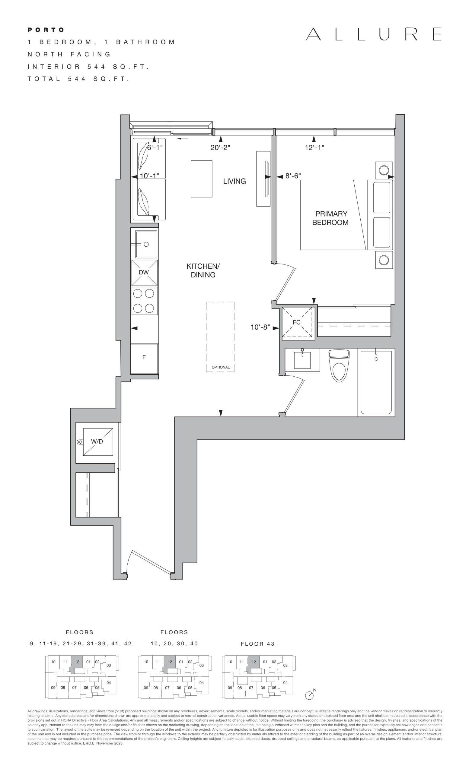 Floor Plan 607 S.F. Price History | The Whitfield Condos
