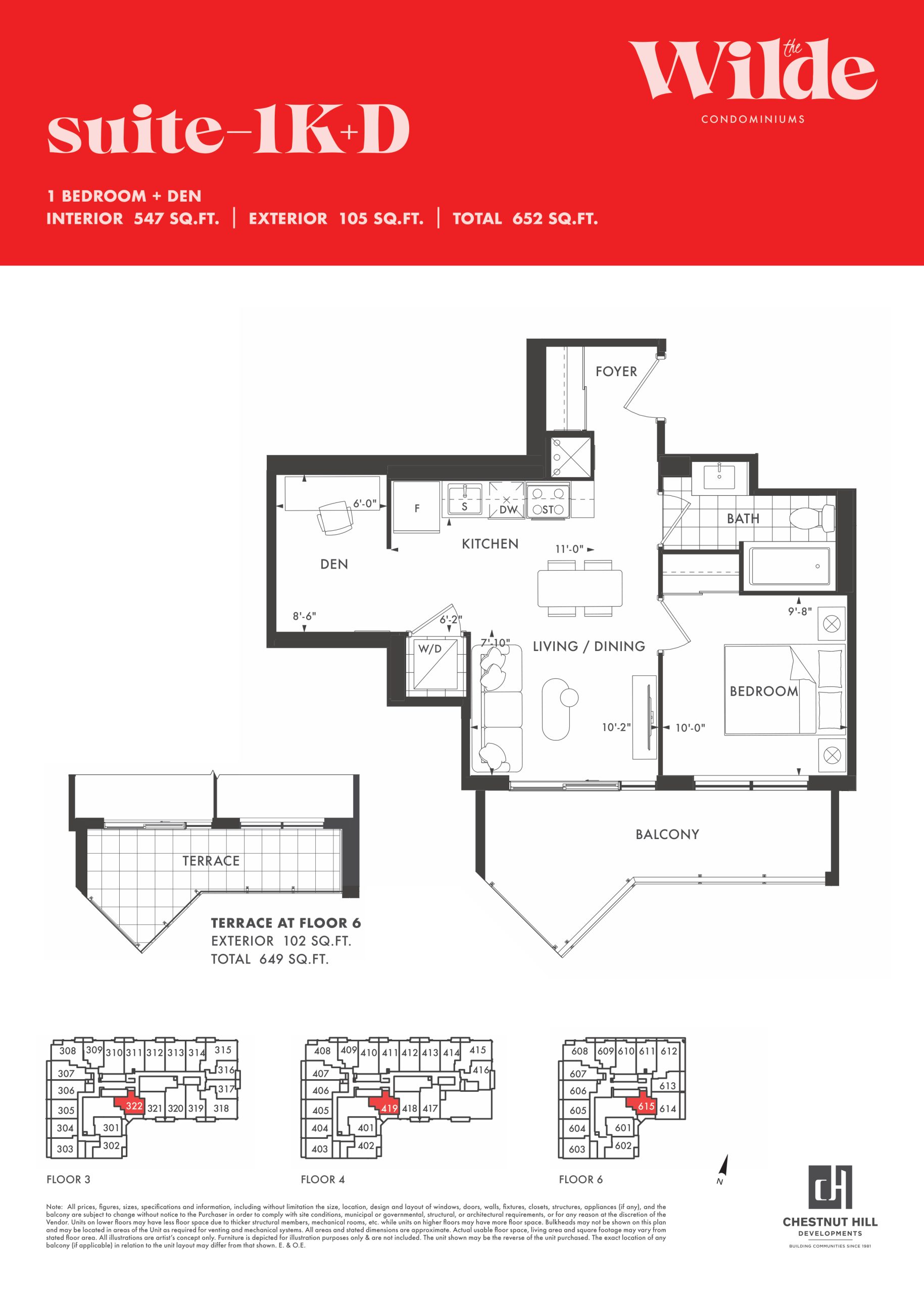 - 1 Bed + Den Price