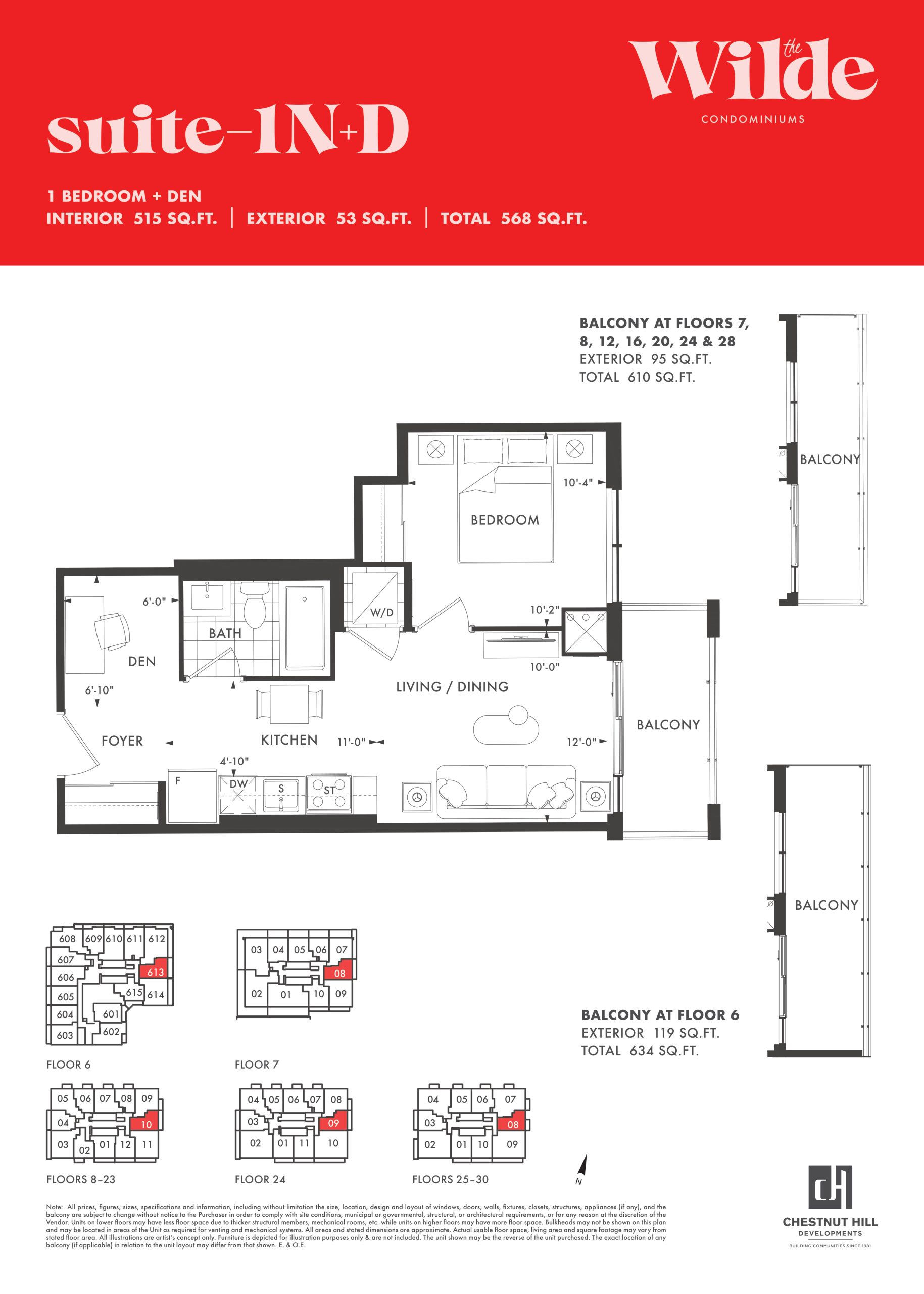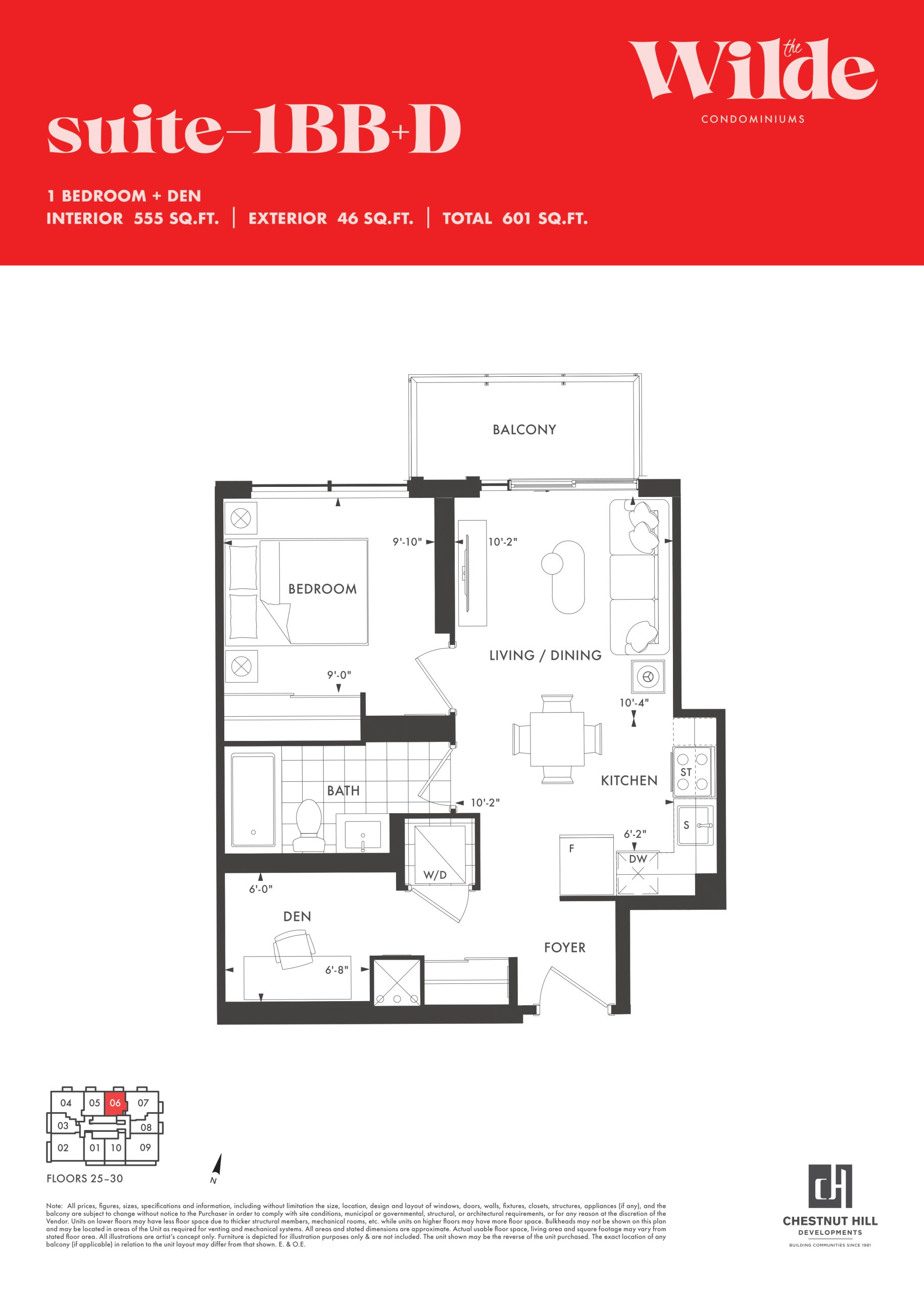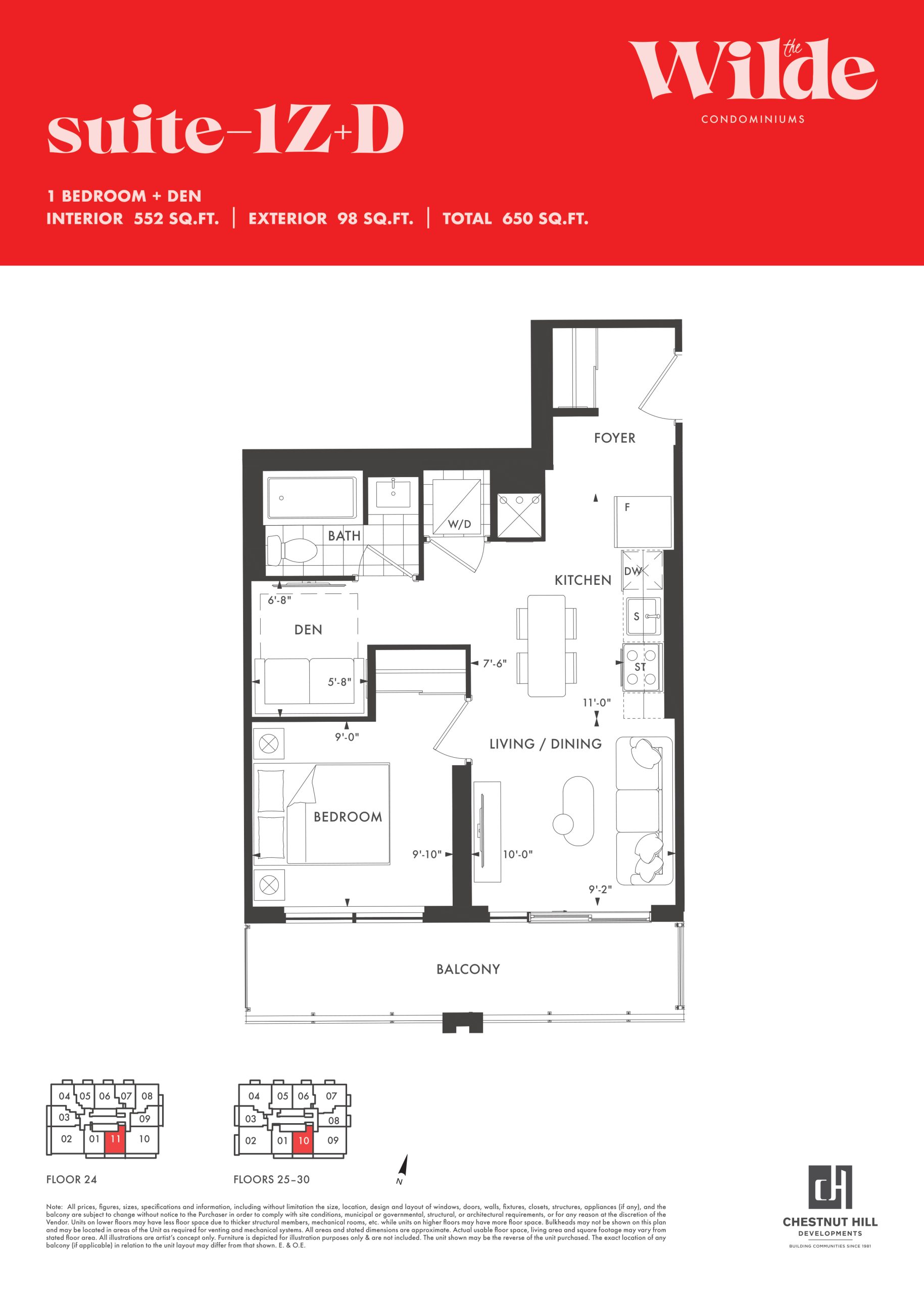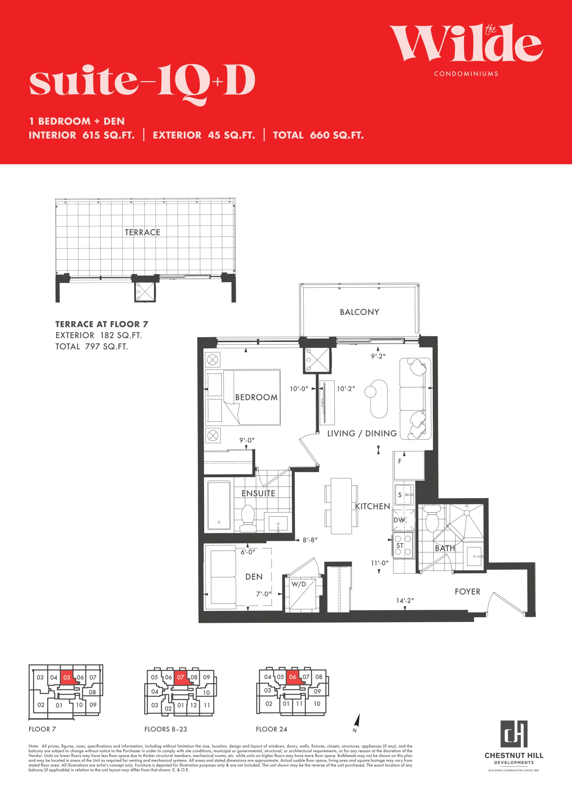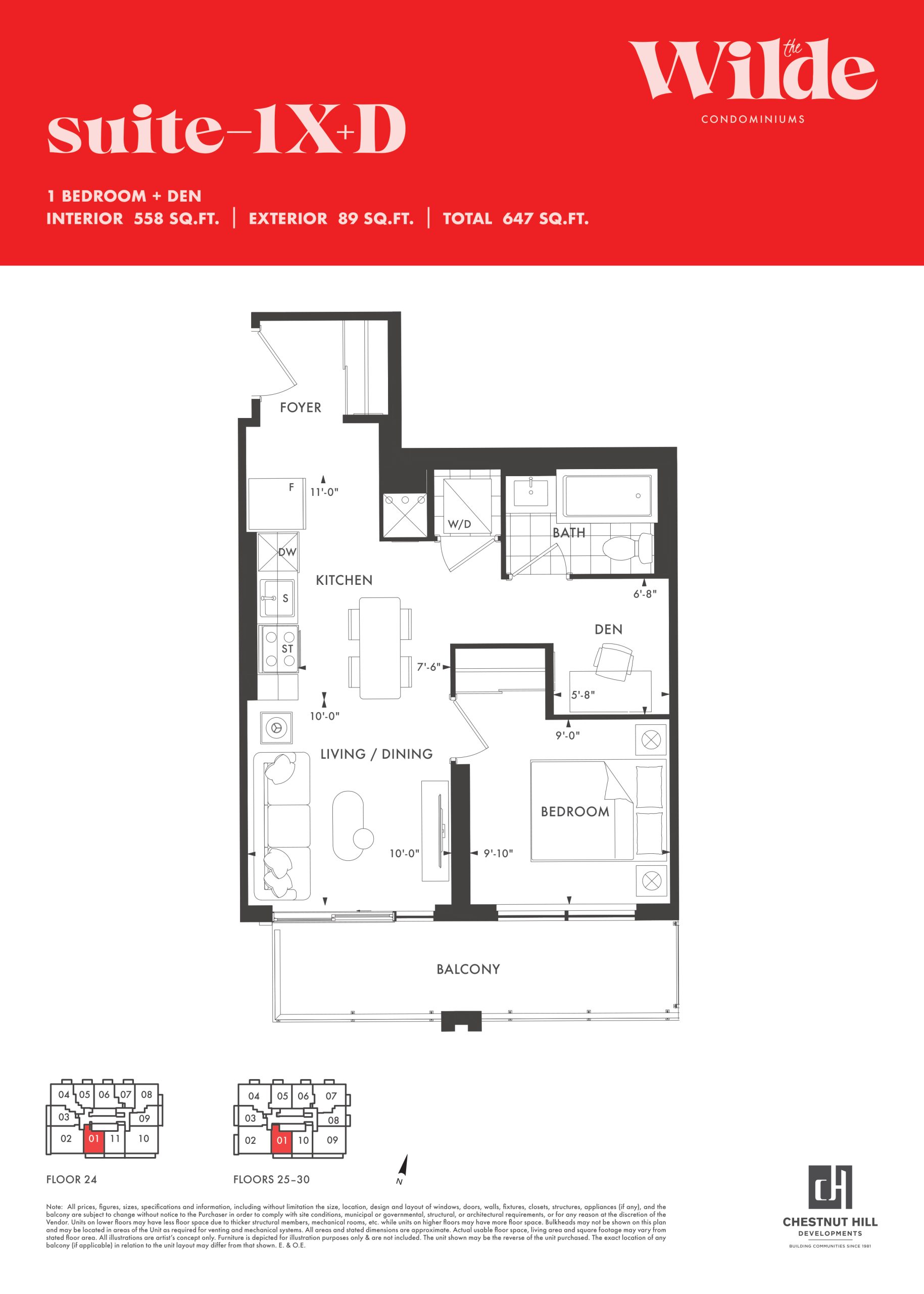 - 1 Bed + Den Change from Launch