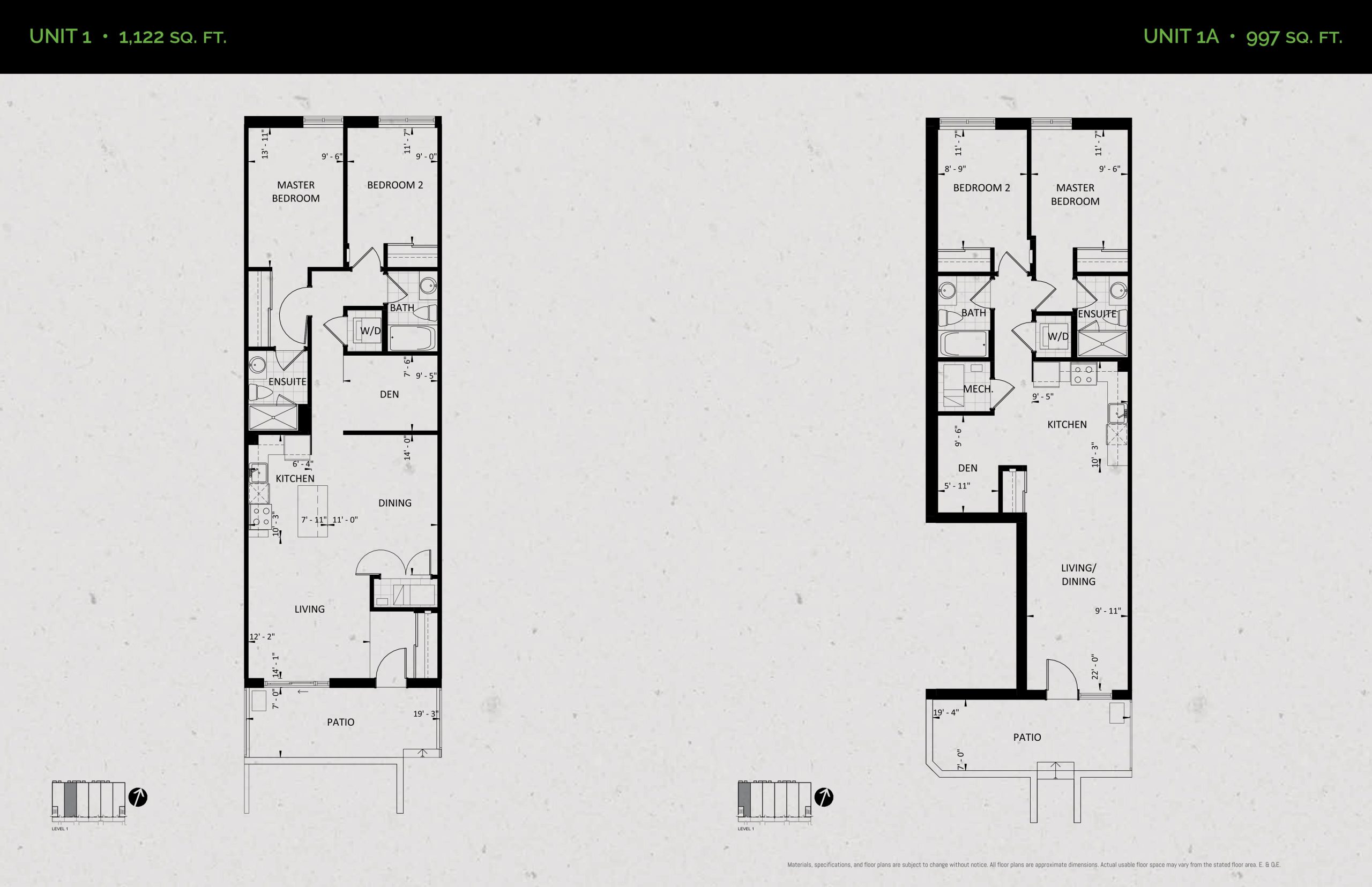 Unit 1A (Garden Collection) Floor Plan at Towns at Rouge Valley - 997 sq.ft