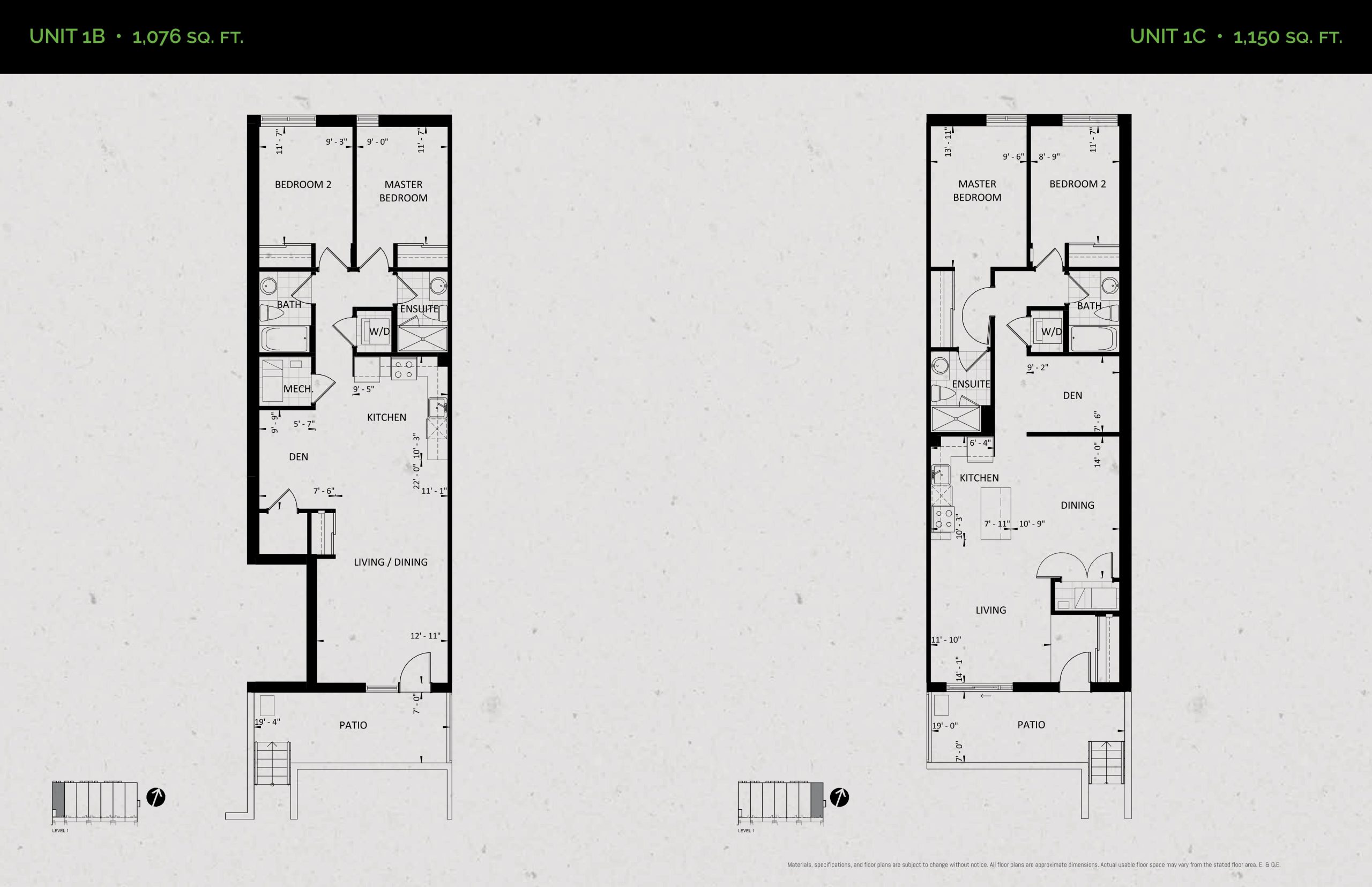 Unit 1B (Garden Collection) Floor Plan at Towns at Rouge Valley - 1076 sq.ft