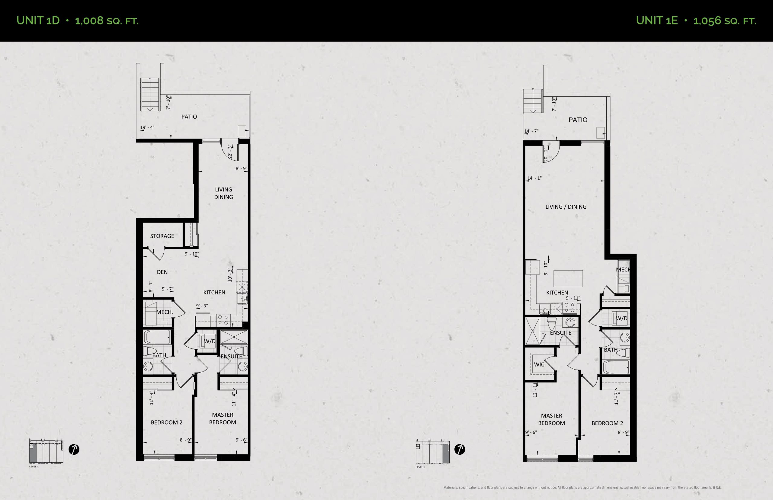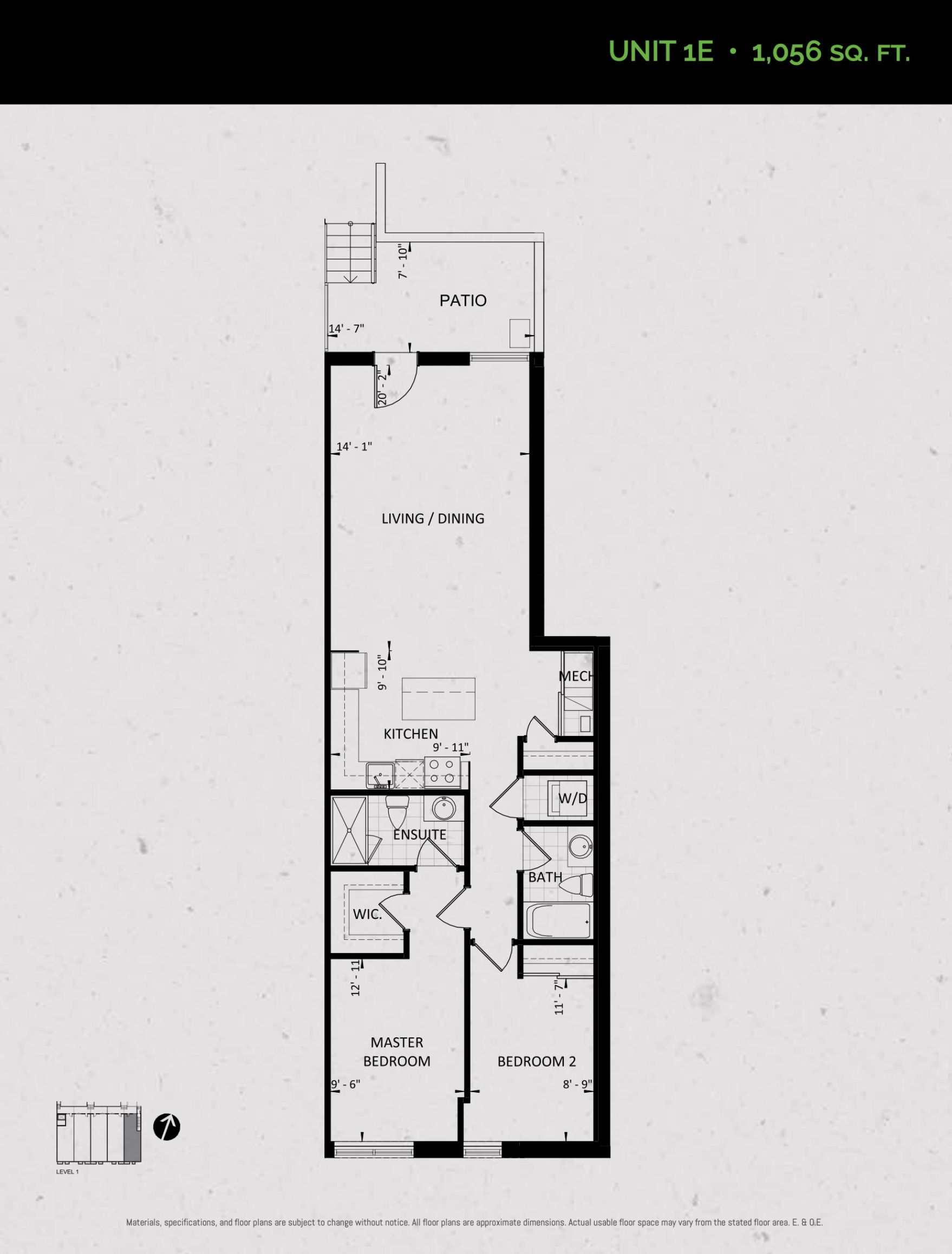 Unit 1E (Garden Collection) Floor Plan at Towns at Rouge Valley - 1056 sq.ft