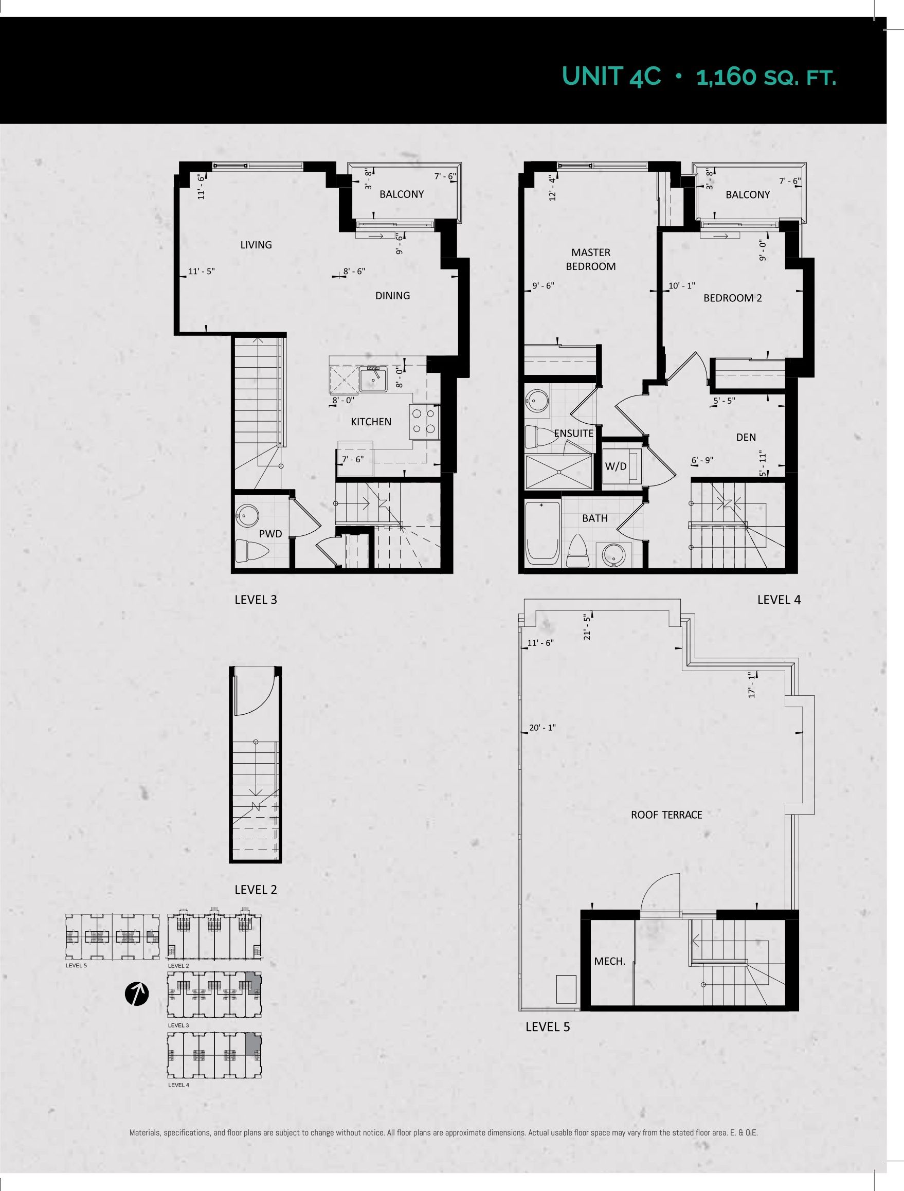 Unit 4C (Terrace Collection) Floor Plan at Towns at Rouge Valley - 1160 sq.ft