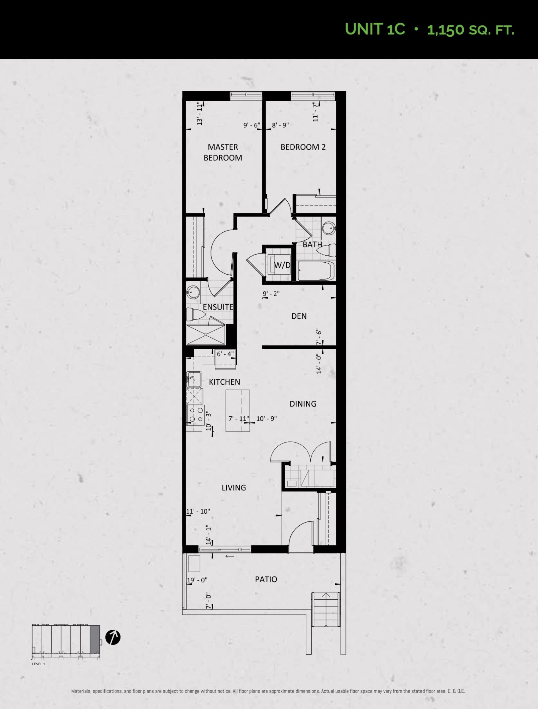Unit 1C (Garden Collection) Floor Plan at Towns at Rouge Valley - 1150 sq.ft