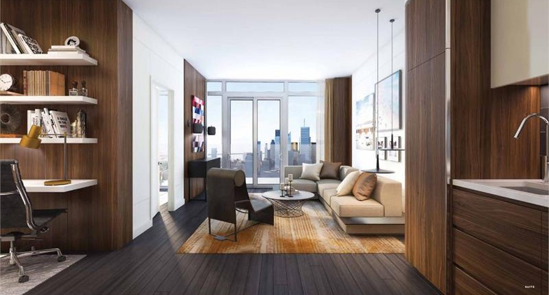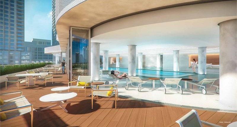 The tower sits on a mixed use podium that will house retail stores, offices and the amenities for the building.