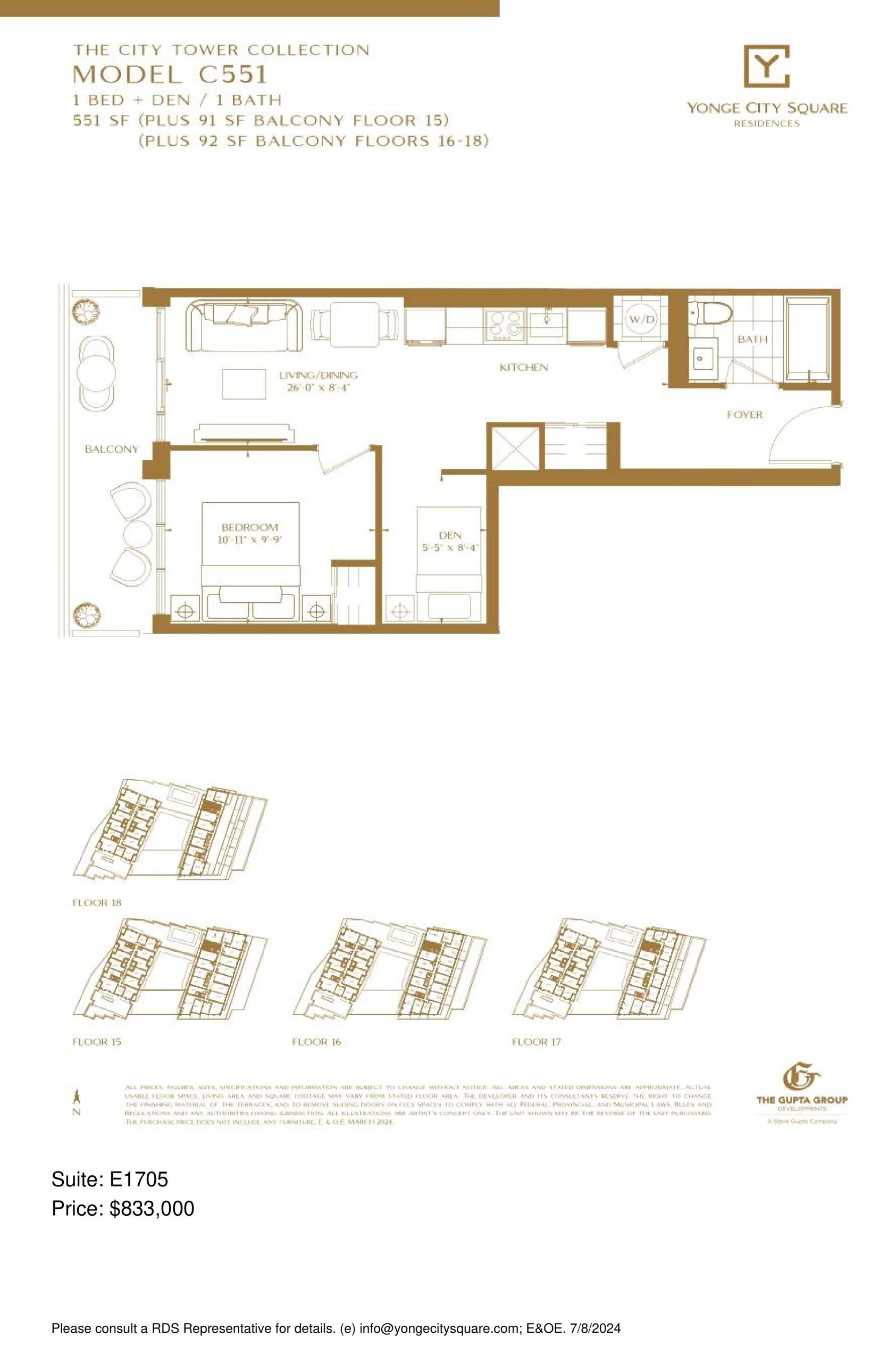 Model C551 (The City Tower Collection) E1705 Price History | Yonge City Square Condos