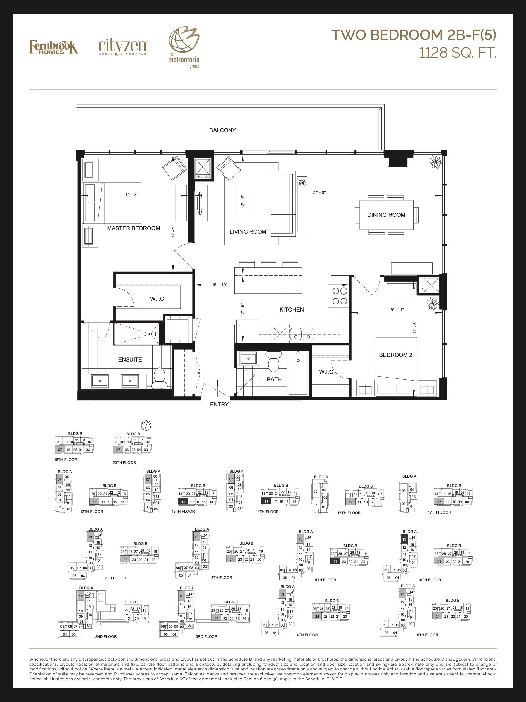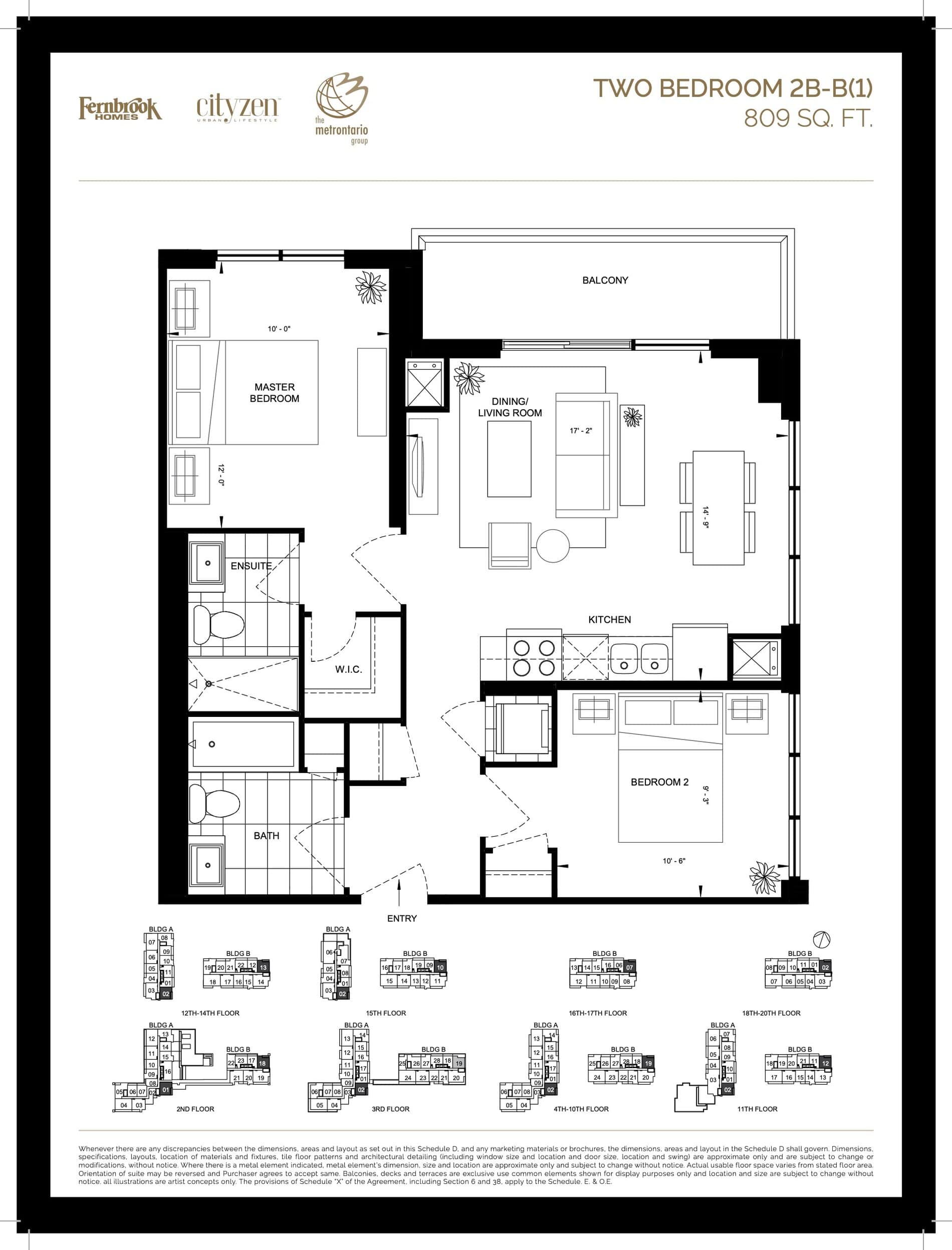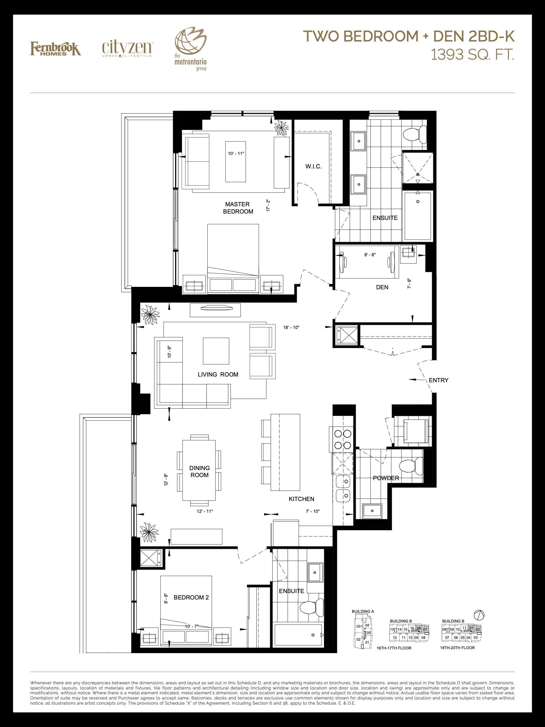 - 10ft. ceiling heights in principal rooms as per plan, on ground floors, floors 15, 16 and 17 of building A and on floor 20 of building B