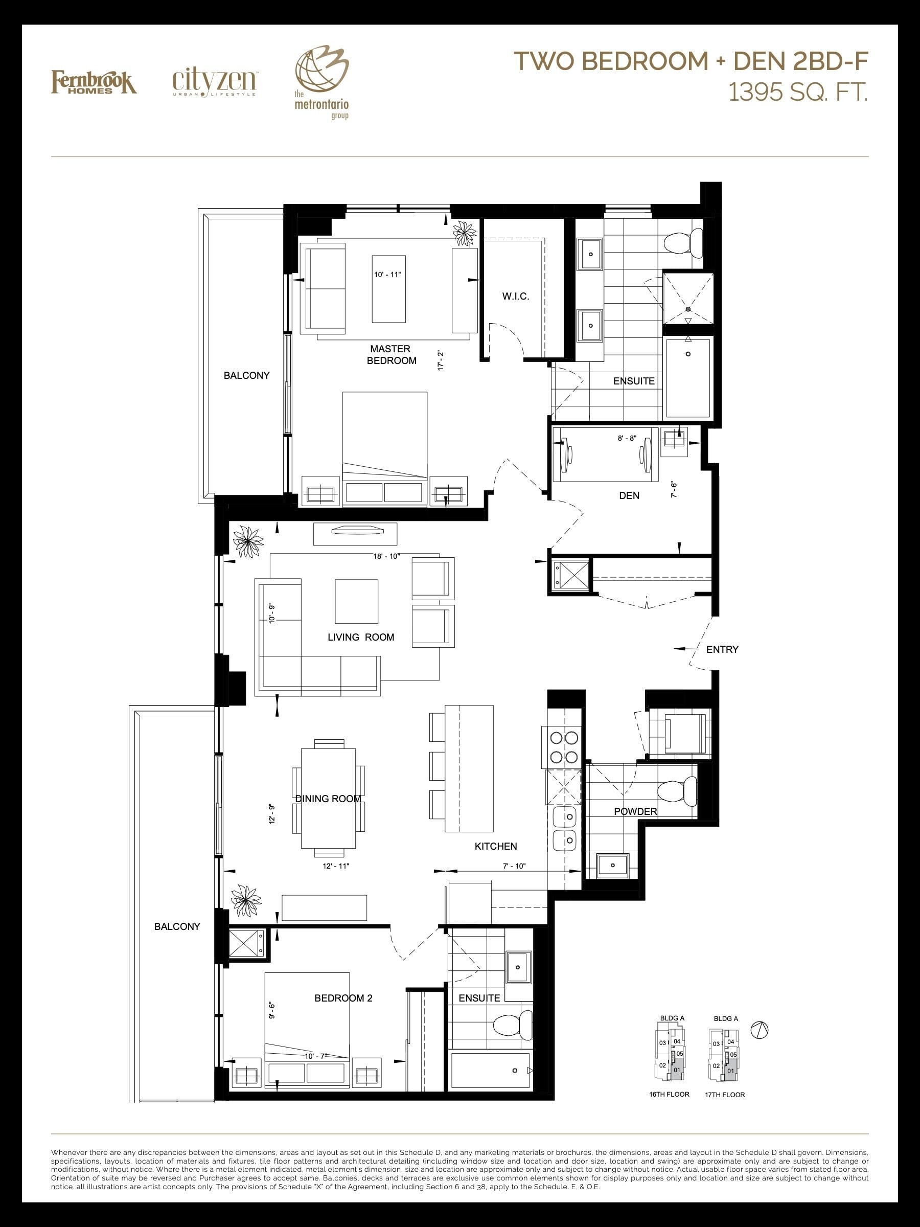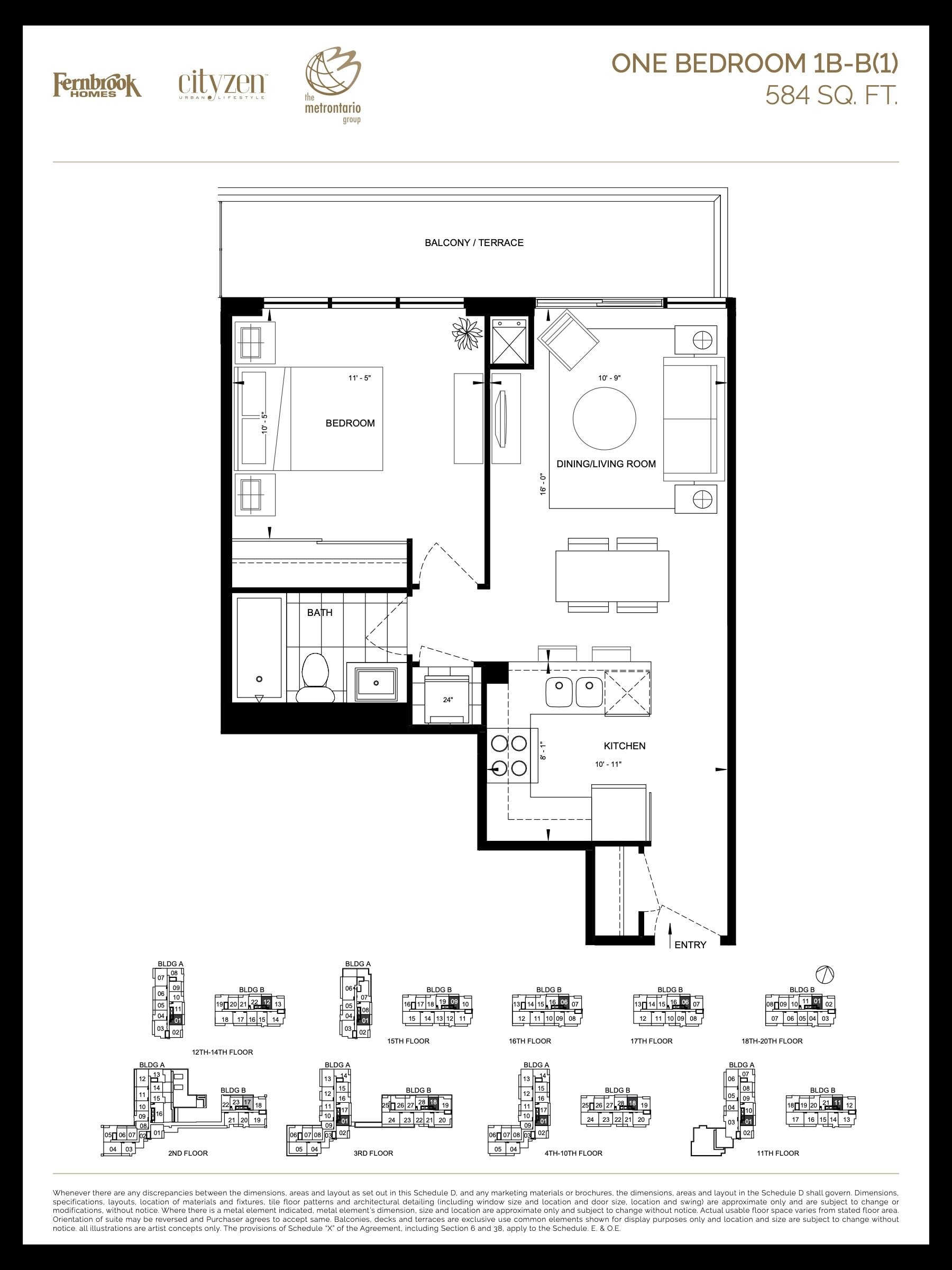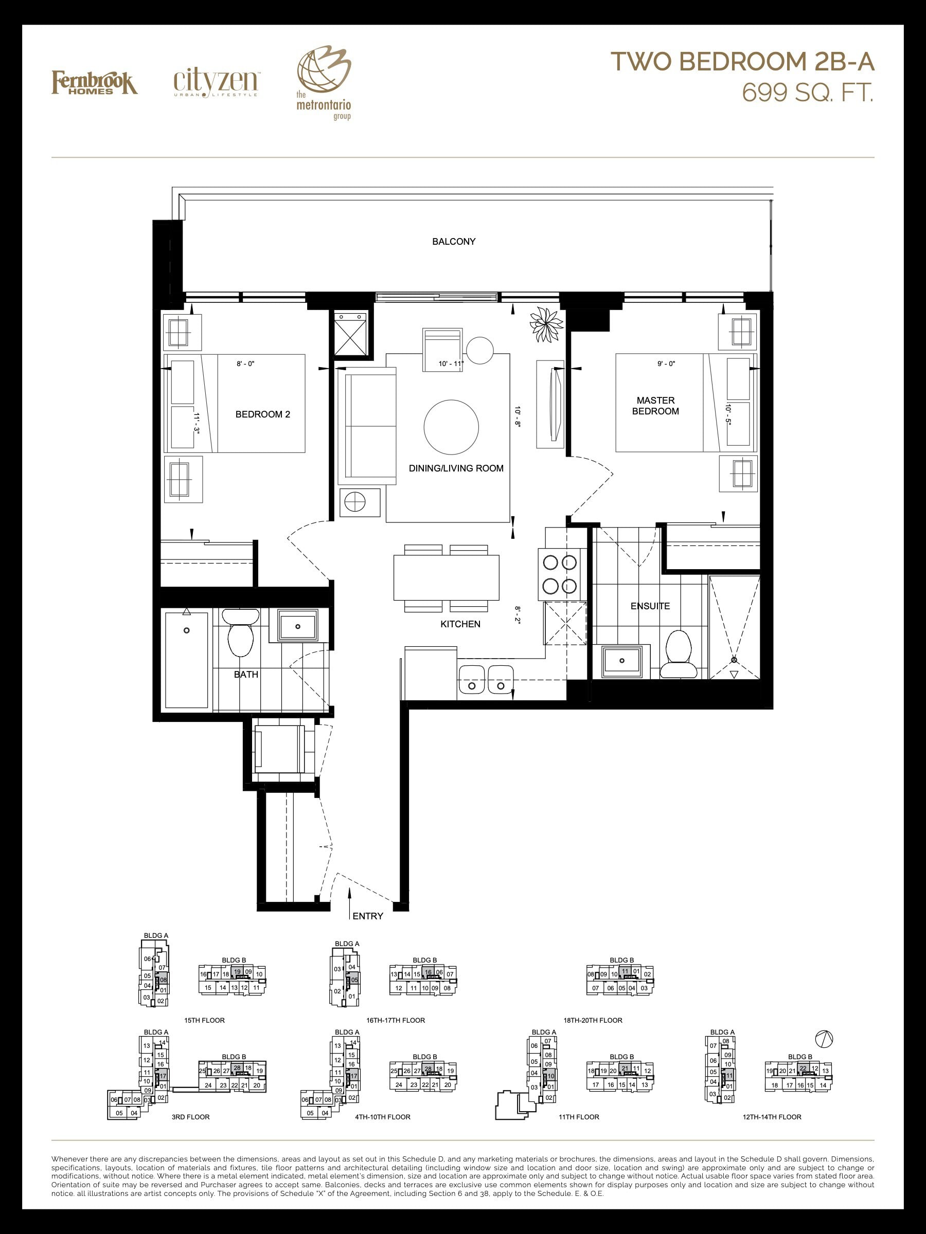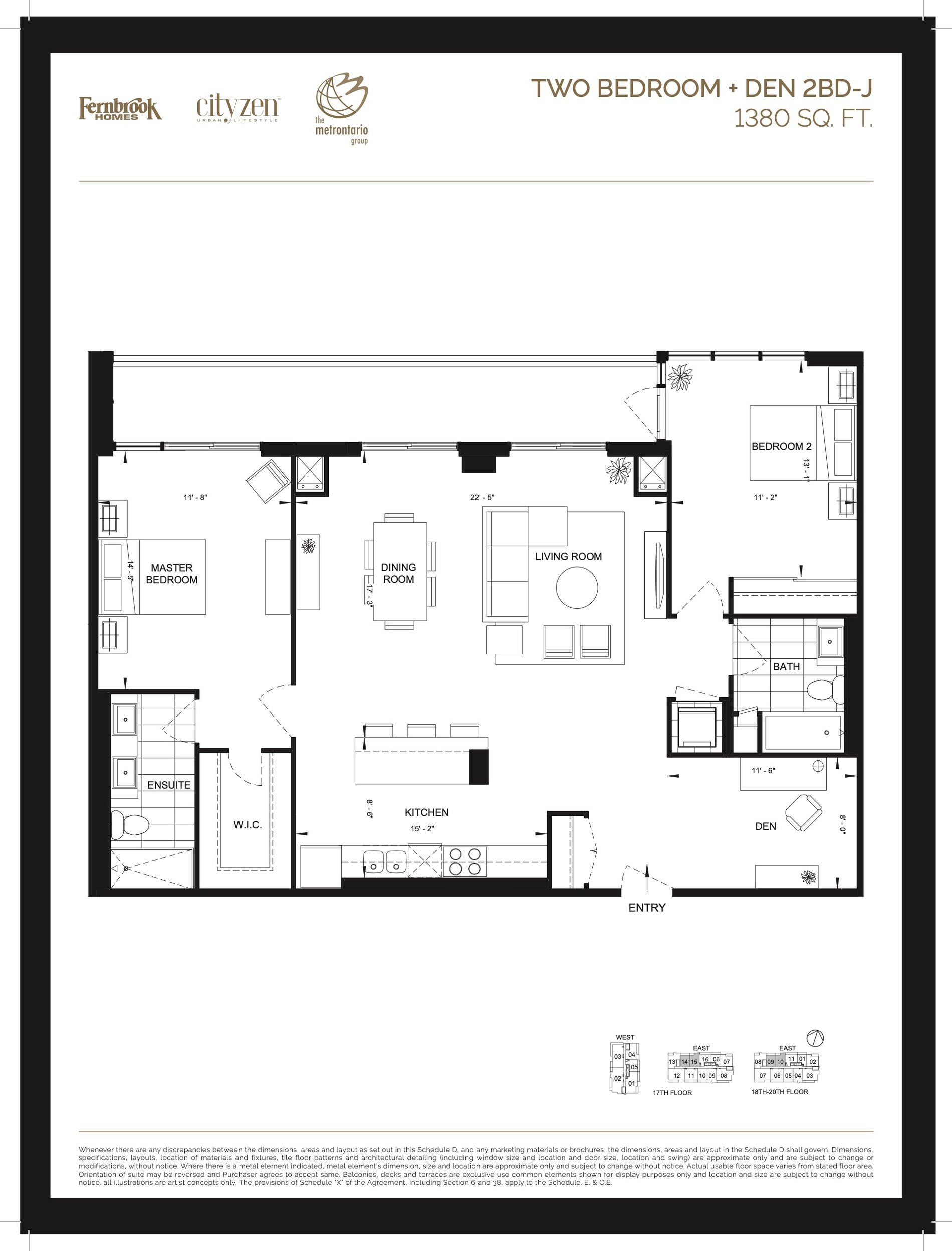 - 10ft. ceiling heights in principal rooms as per plan, on ground floors, floors 15, 16 and 17 of building A and on floor 20 of building B