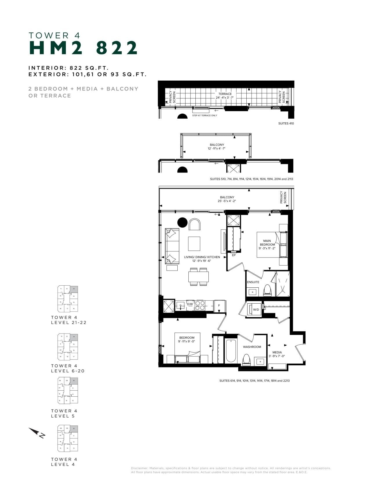 - 1 Bed + Den Change from Launch