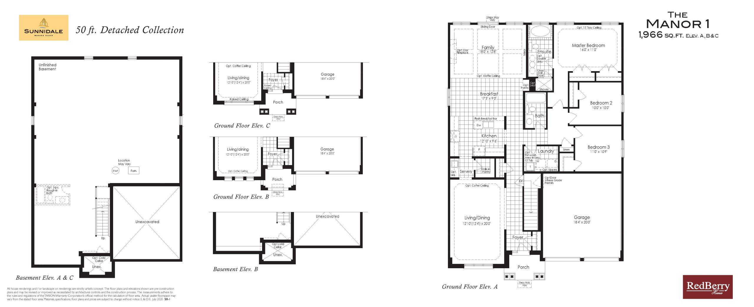 • Where a Walk-out lot has been designated, the Vendor will provide a sliding patio door or garden door in basement with larger rear basement window(s), as per applicable plan. A railing only will be installed at the door on the Main level. Premium charge due to grade may apply